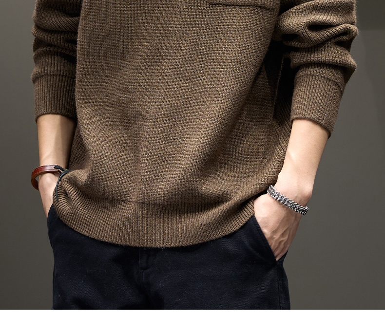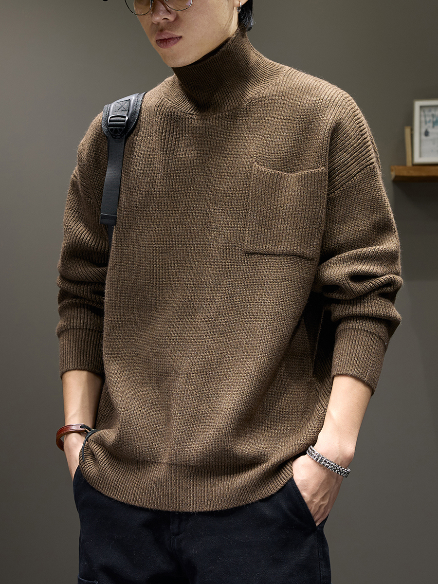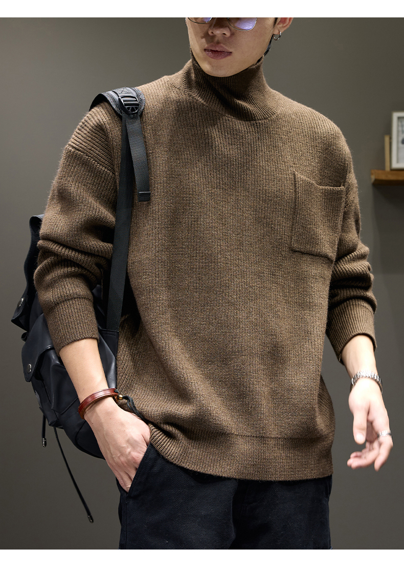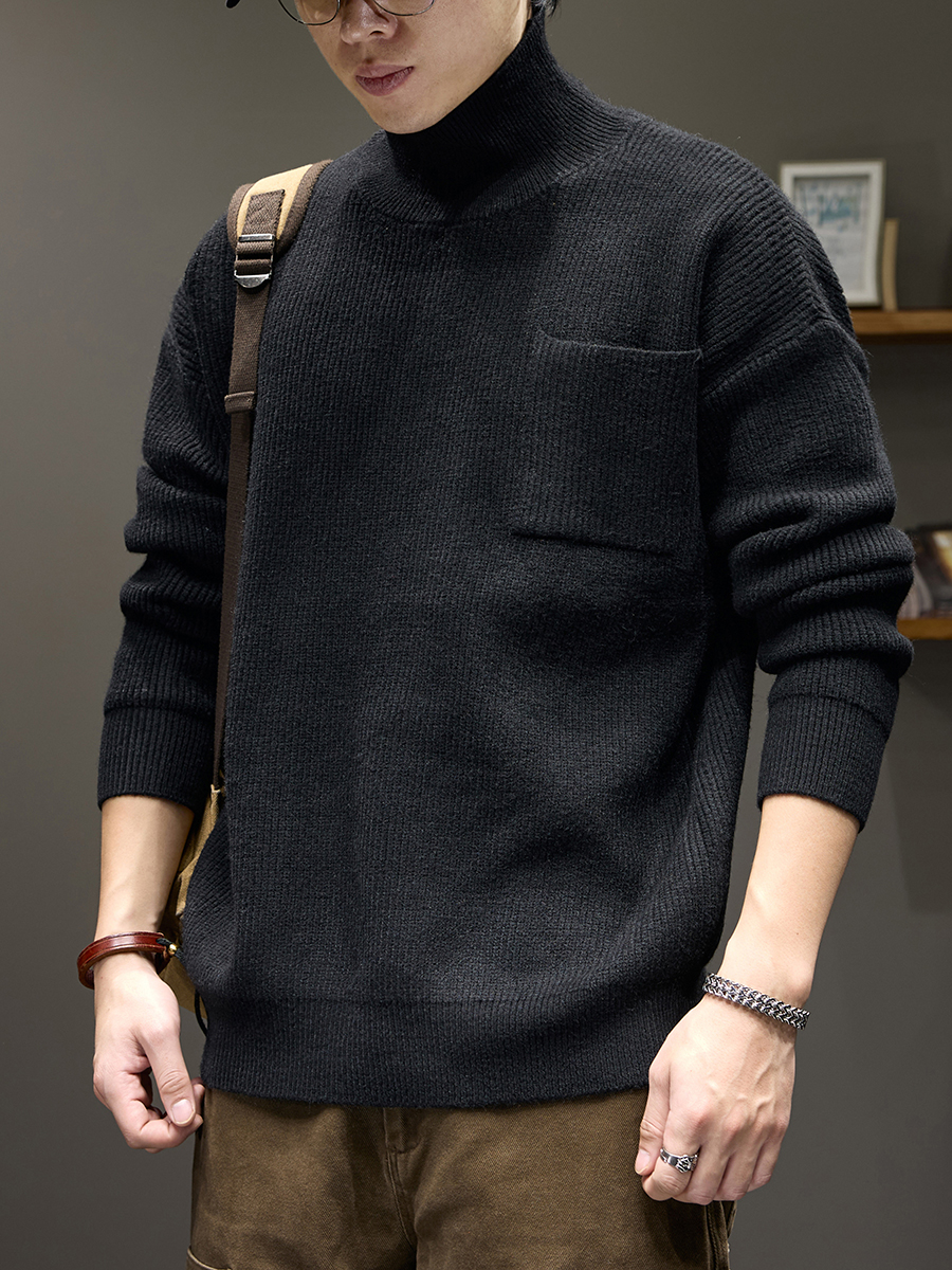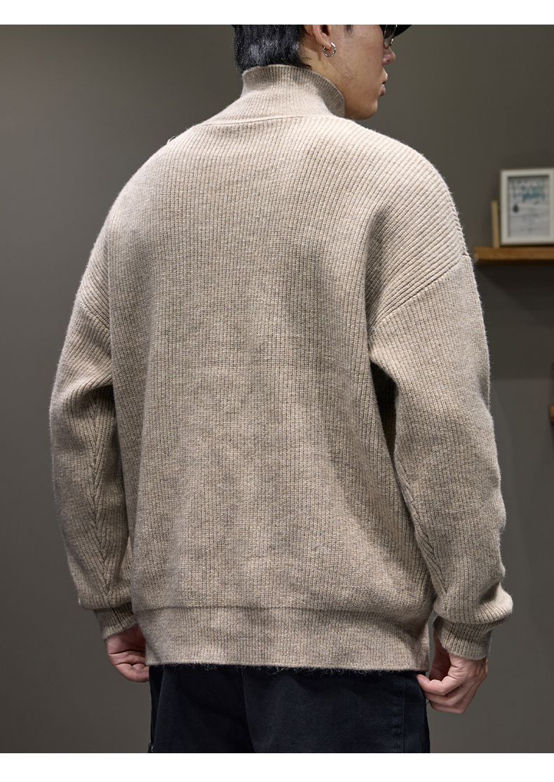 아메리칸 스타일 트렌디 브랜드 하프 터틀넥 스웨터 남성용 루즈 캐주얼 니트 스웨터 가을과 겨울 솔리드 컬러 간단한 올매치 베이스 셔츠