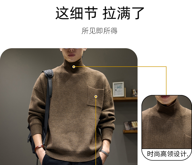 아메리칸 스타일 트렌디 브랜드 하프 터틀넥 스웨터 남성용 루즈 캐주얼 니트 스웨터 가을과 겨울 솔리드 컬러 간단한 올매치 베이스 셔츠스토어 가기