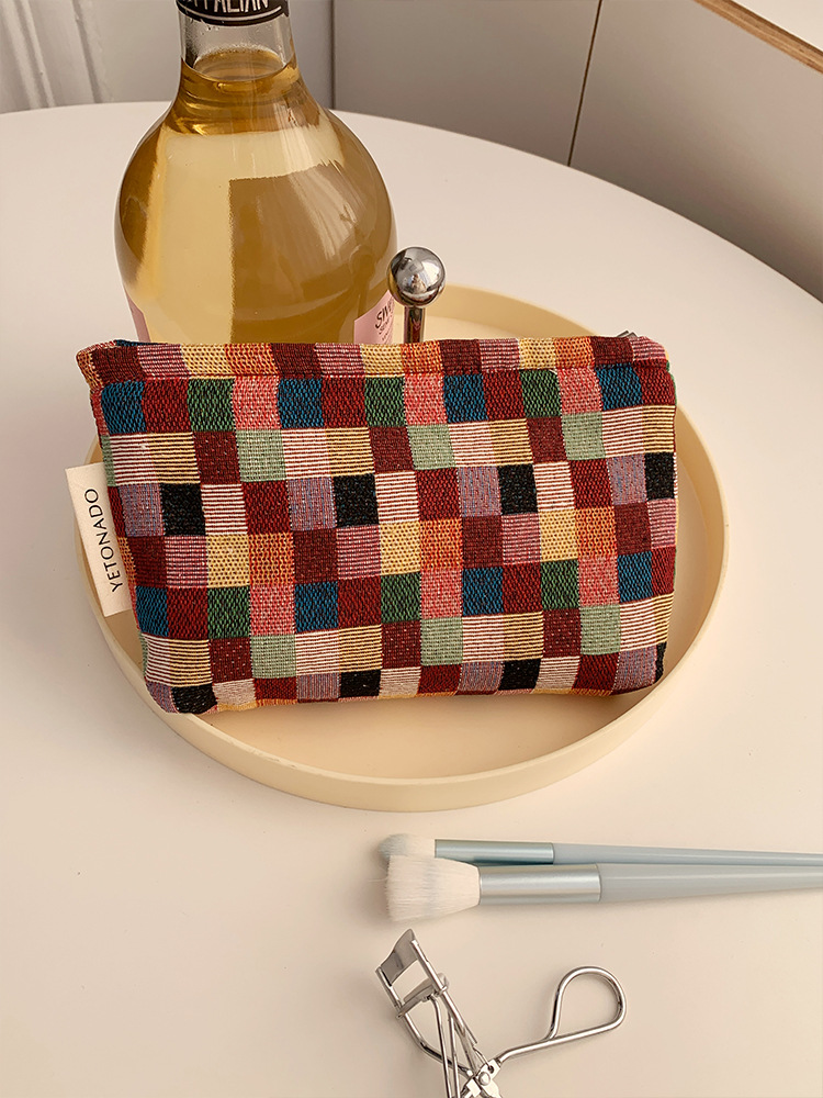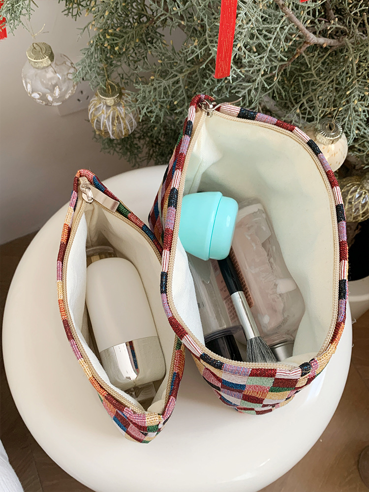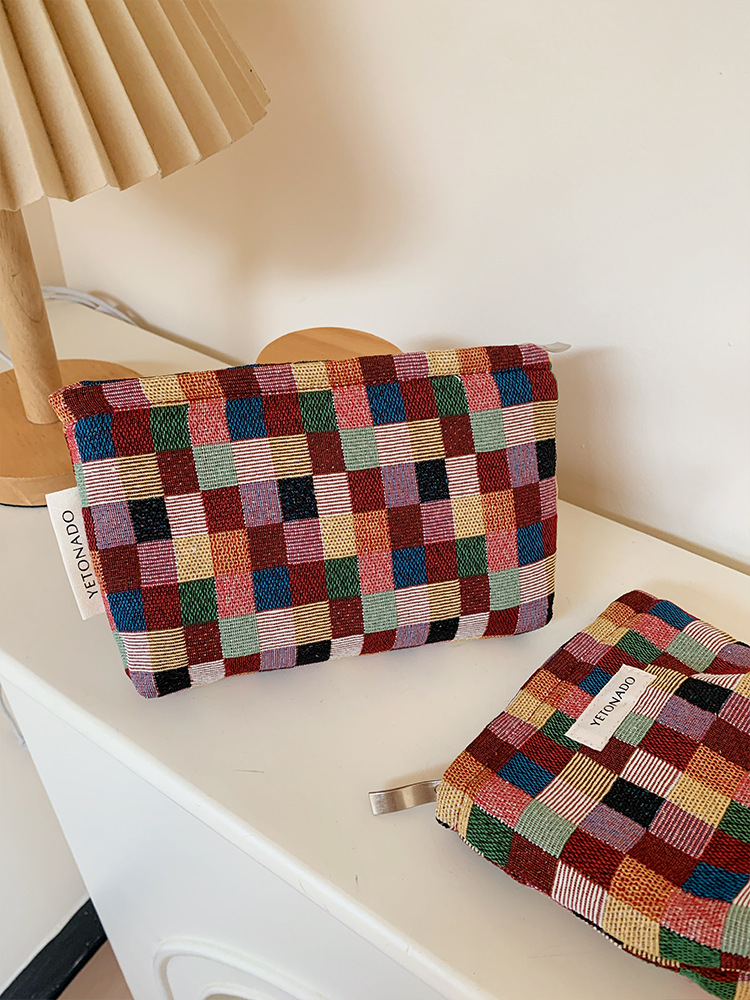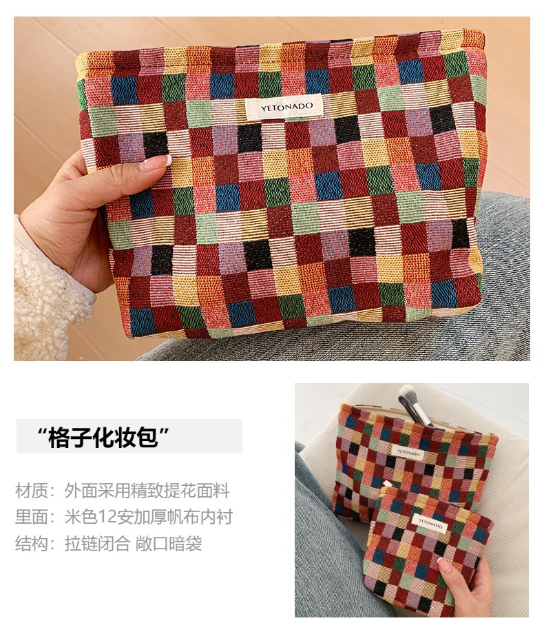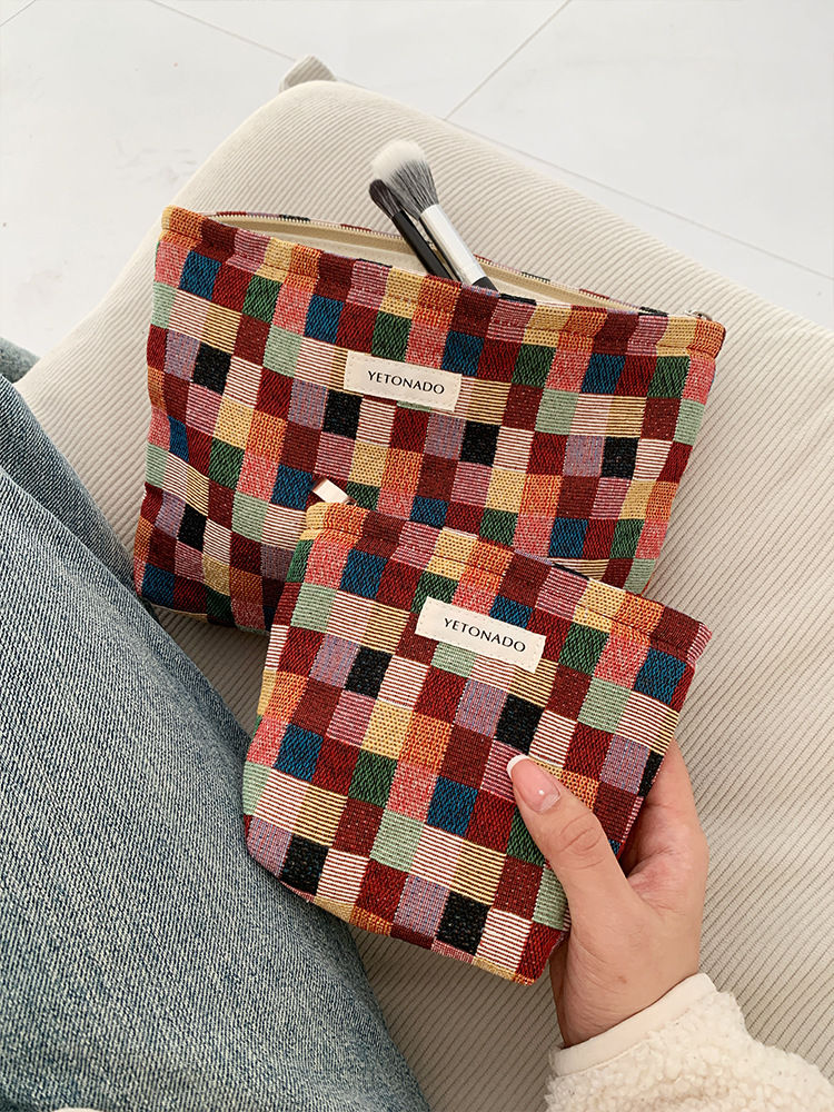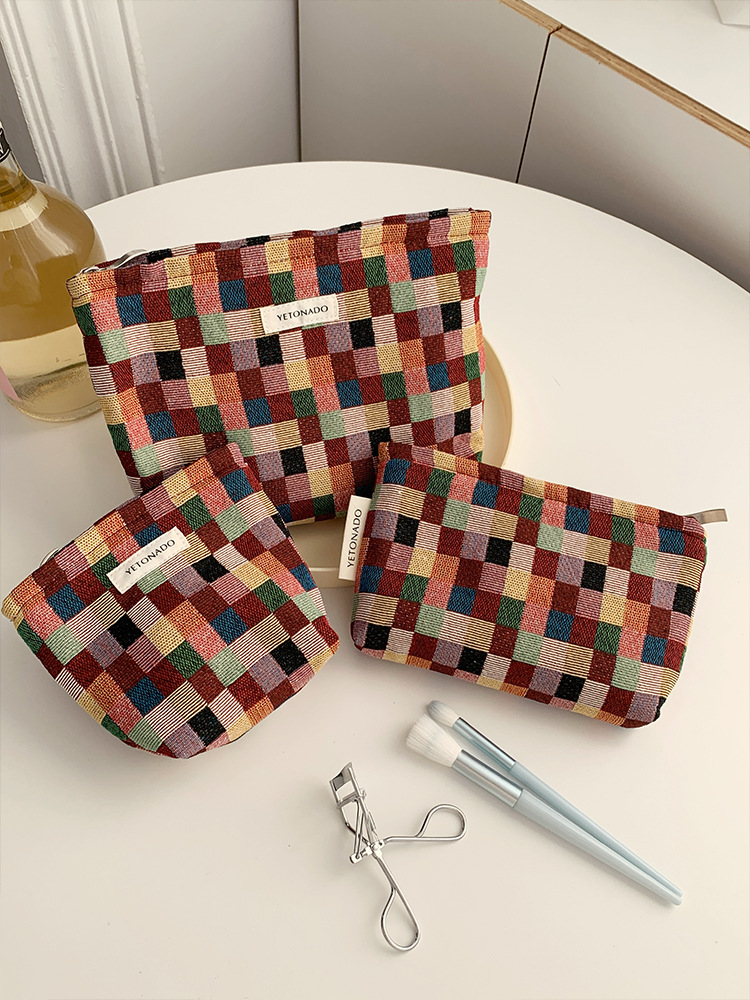 2024 새로운 스몰 사이즈 여행 화장품 가방 여성 이모 수건 보관 가방 립스틱 내부 가방 휴대용 화장실 가방 체크 무늬