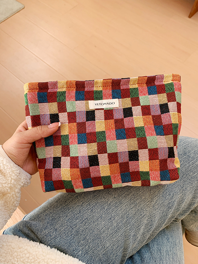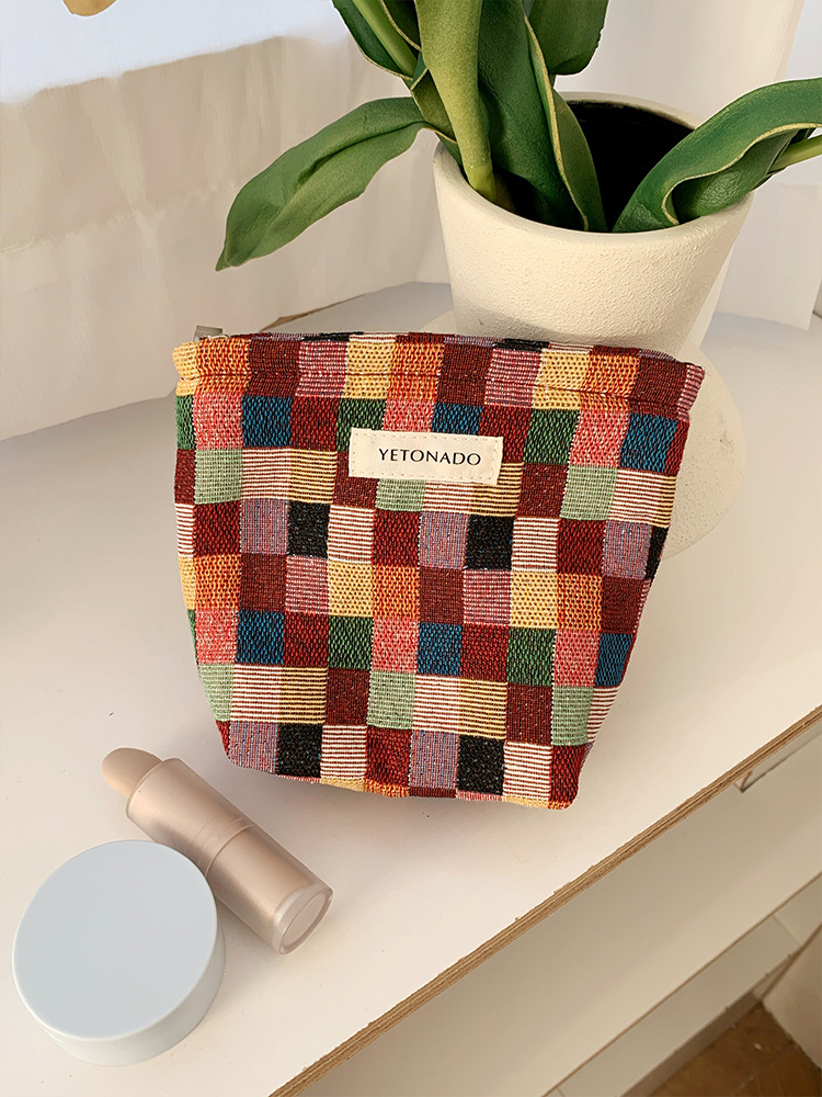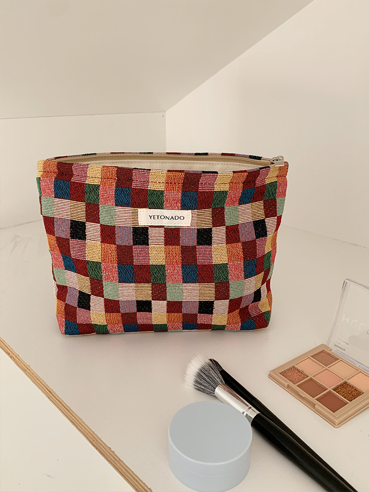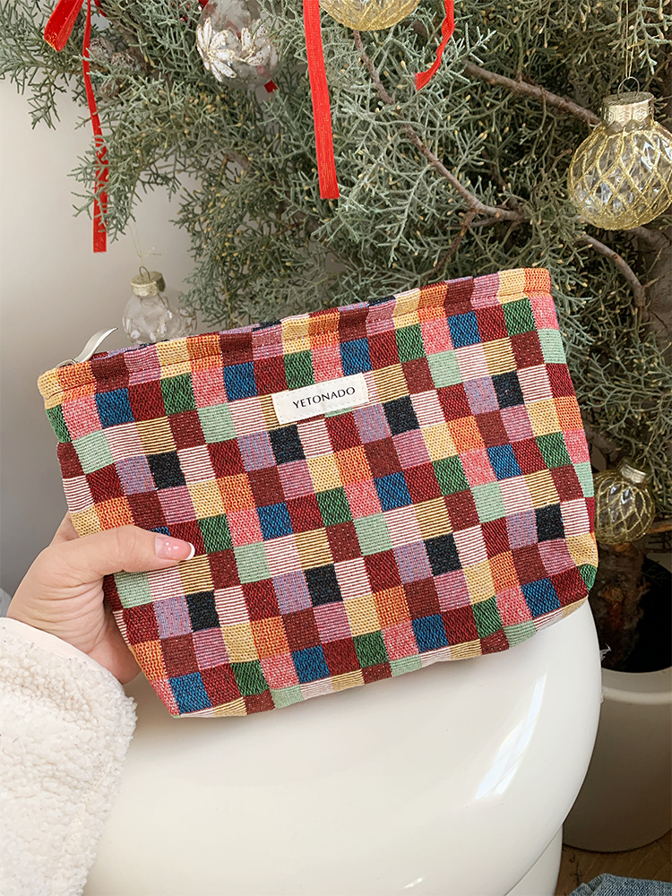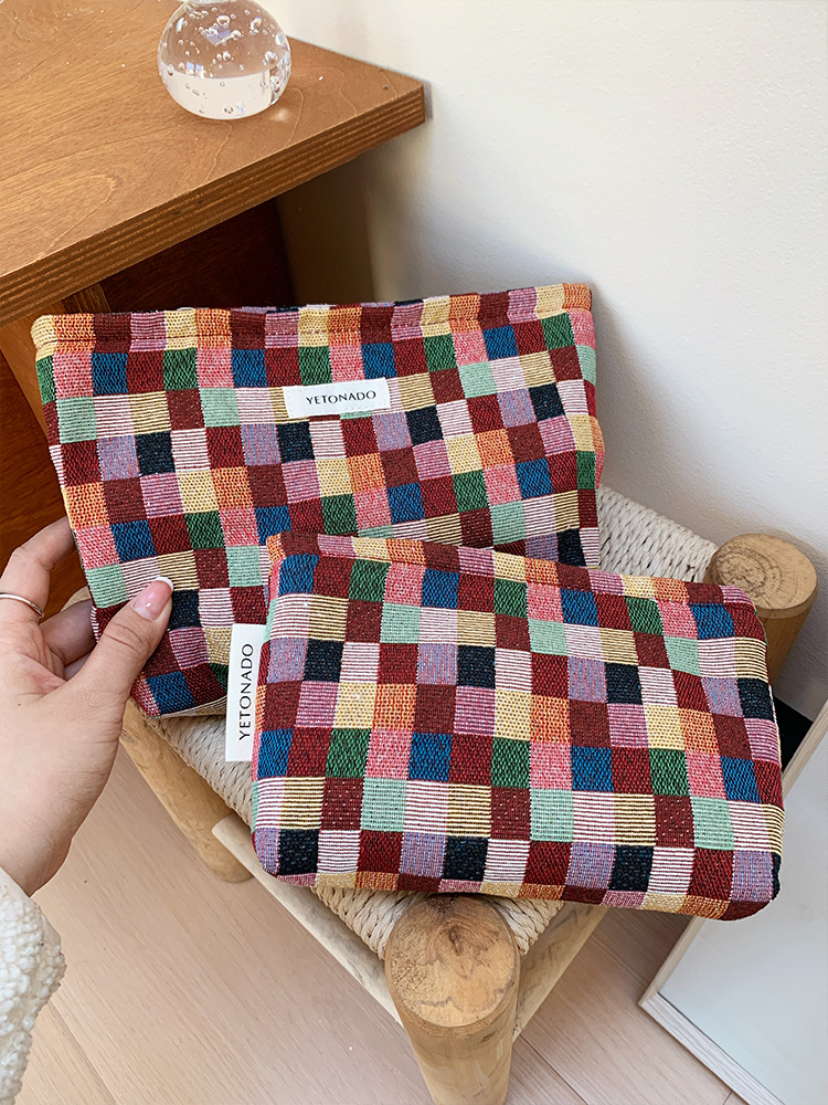 2024 새로운 스몰 사이즈 여행 화장품 가방 여성 이모 수건 보관 가방 립스틱 내부 가방 휴대용 화장실 가방 체크 무늬