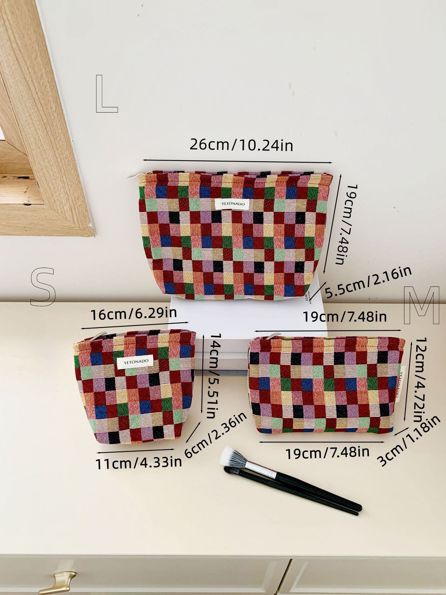 2024 새로운 스몰 사이즈 여행 화장품 가방 여성 이모 수건 보관 가방 립스틱 내부 가방 휴대용 화장실 가방 체크 무늬스토어 가기