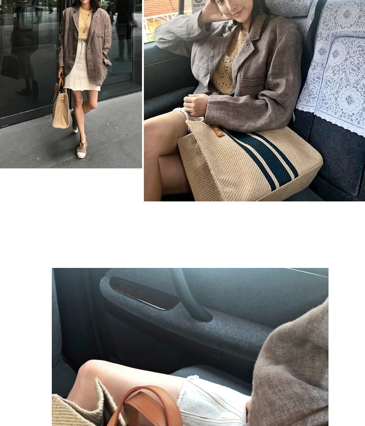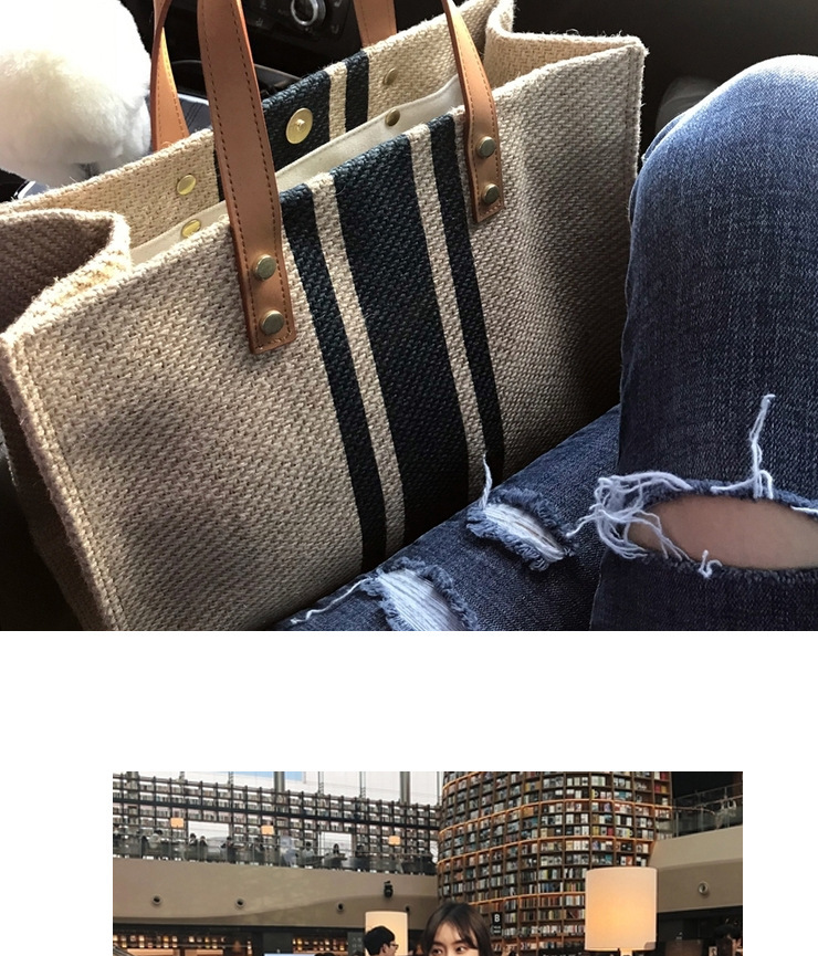 한국식 여성용 휴대용 서류 가방 OL 전문 비즈니스 통근 줄무늬 심플 스퀘어 캔버스 대형 가방 싱글 어깨 여성