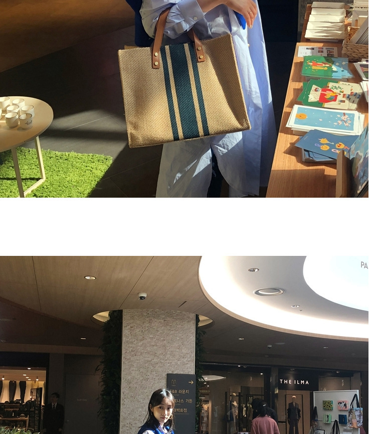 한국식 여성용 휴대용 서류 가방 OL 전문 비즈니스 통근 줄무늬 심플 스퀘어 캔버스 대형 가방 싱글 어깨 여성스토어 가기