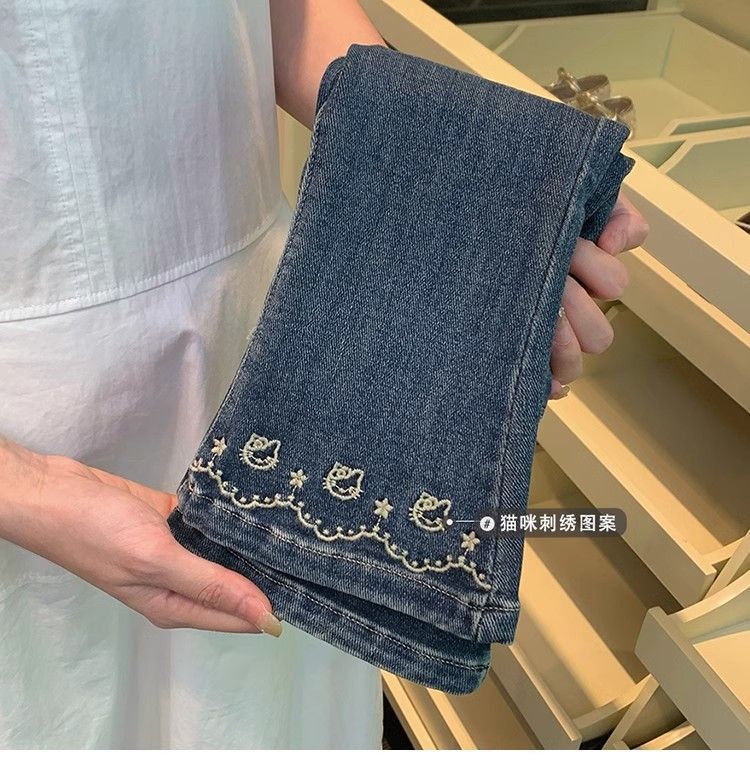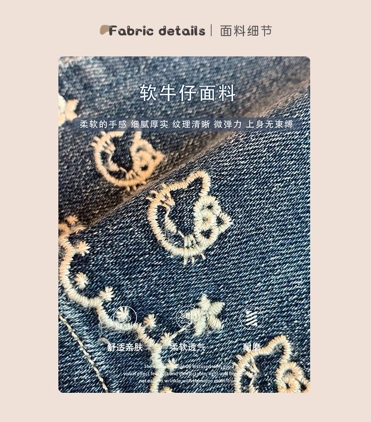 소녀 데님 꽃 바지 봄과 가을 2024 새로운 어린이 아기 소녀 가을과 겨울 고양이 자수 바지 올 매치 공주스토어 가기