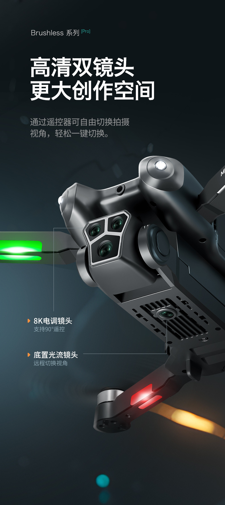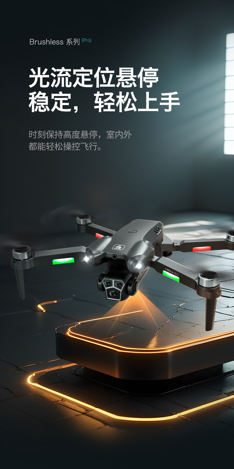 • 미니 블랙 - 브러시리스 광학 흐름 장애물 회피 ESC 서보 스크린 제어 드론