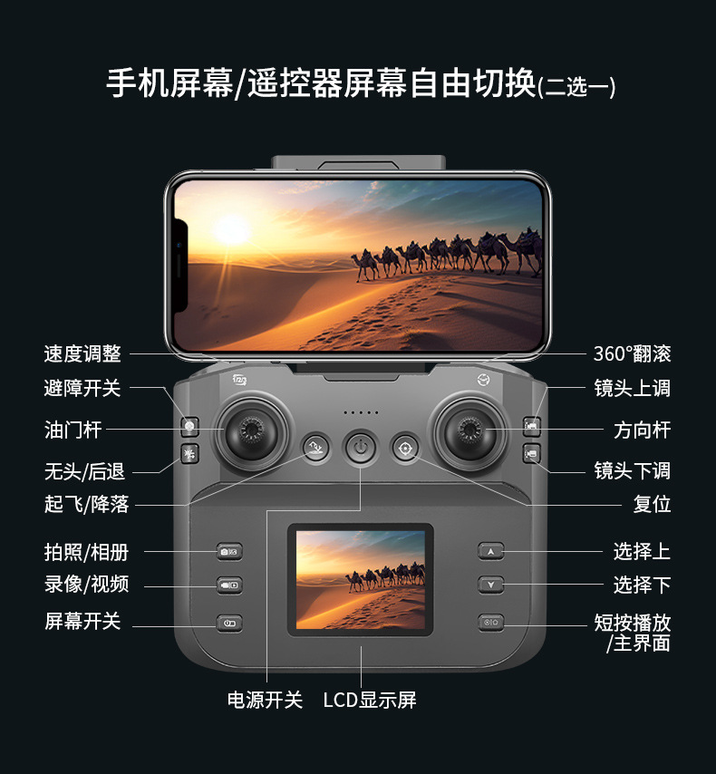 디스플레이 화면이 있는 브러시리스 드론, 항공 사진 촬영용 4축 드론, 국경을 넘는 2025년 신형 원격 조종 항공기스토어 가기