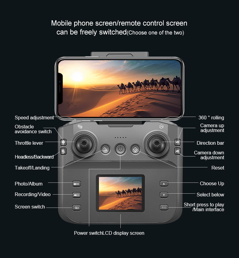 디스플레이 화면이 있는 브러시리스 드론, 항공 사진 촬영용 4축 드론, 국경을 넘는 2025년 신형 원격 조종 항공기