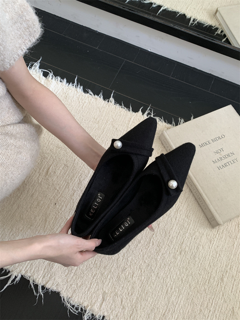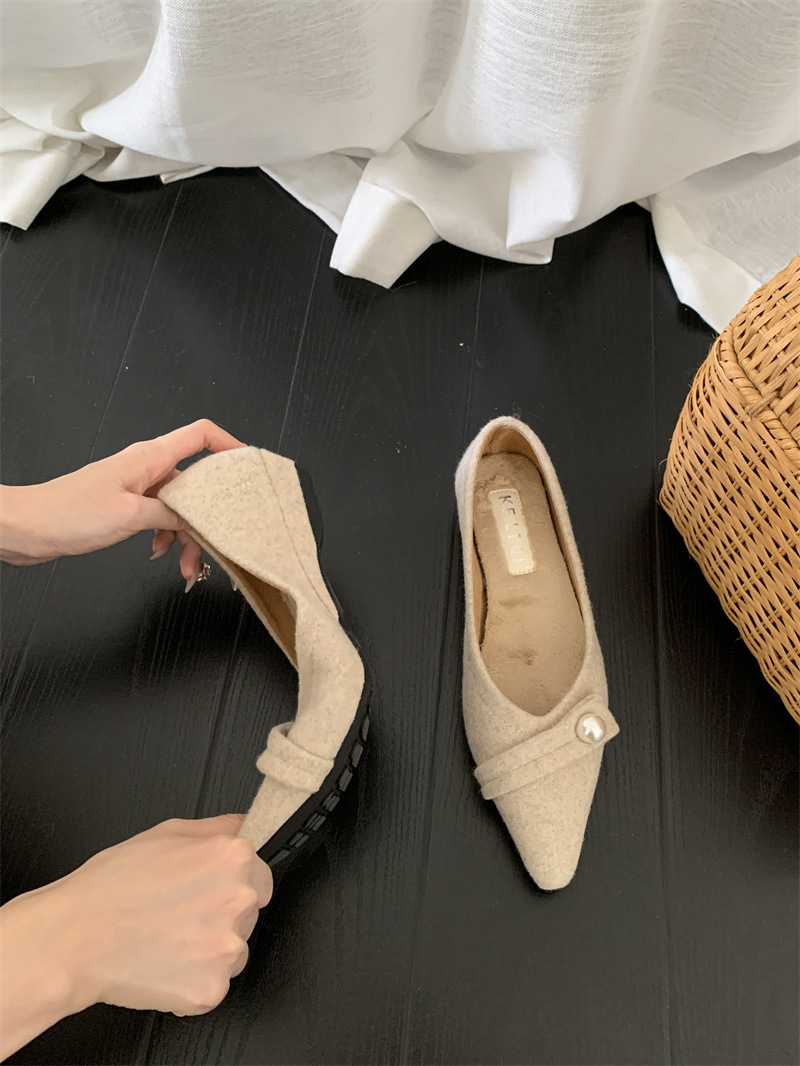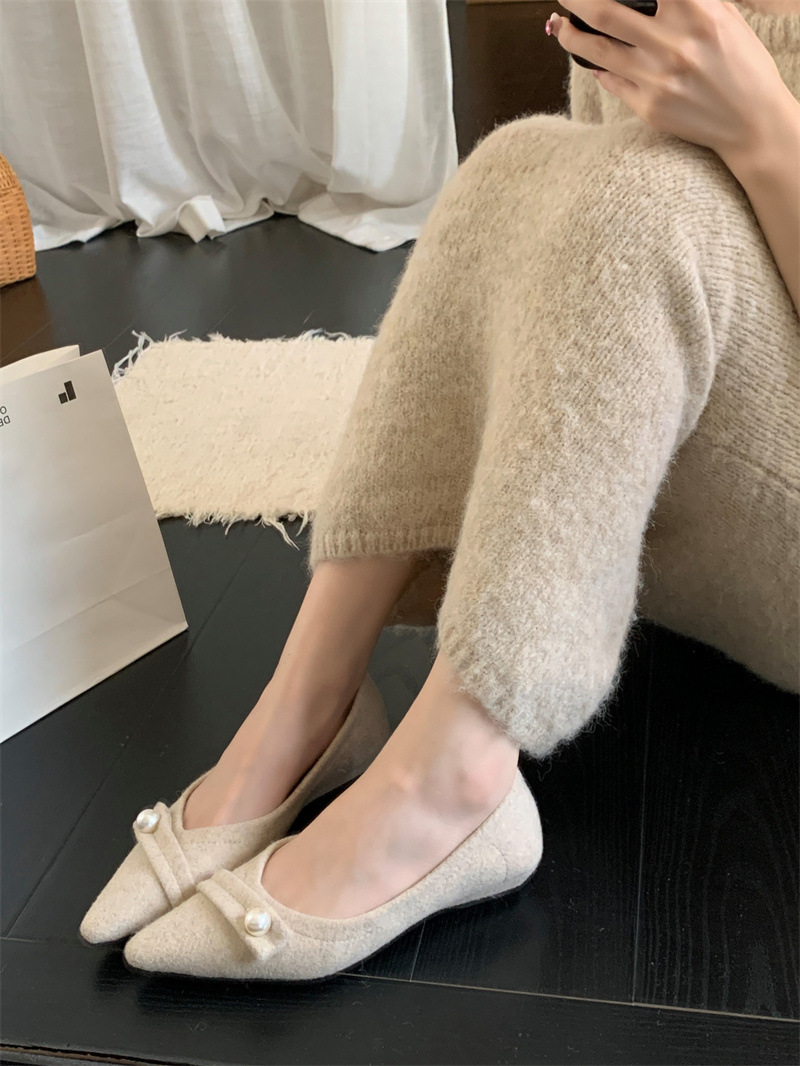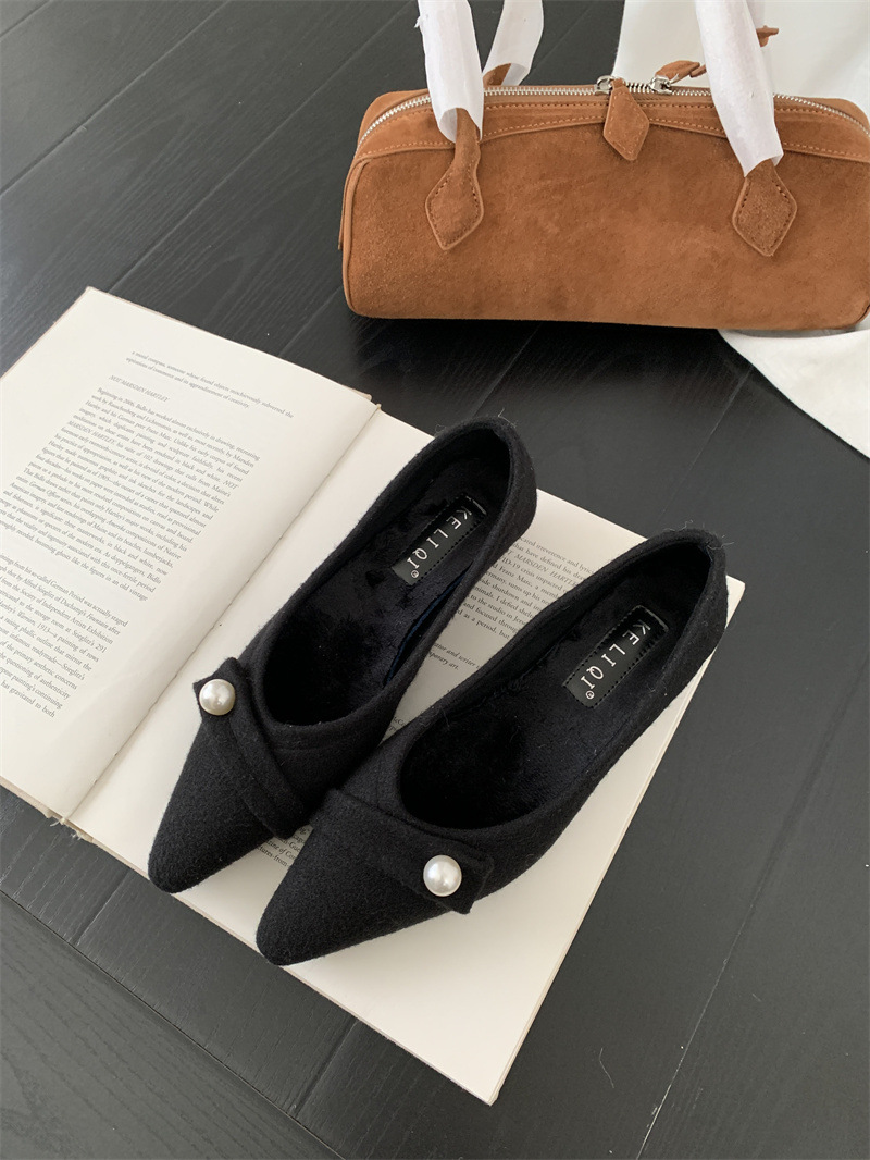 2024 가을과 겨울 새로운 부드러운 가죽 부드러운 우유 신발 요정 저녁 스타일 플랫 콩 신발 샤넬 스타일 얕은 입 신발스토어 가기