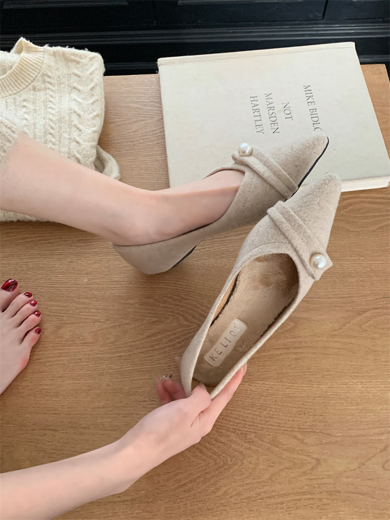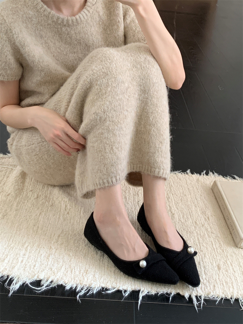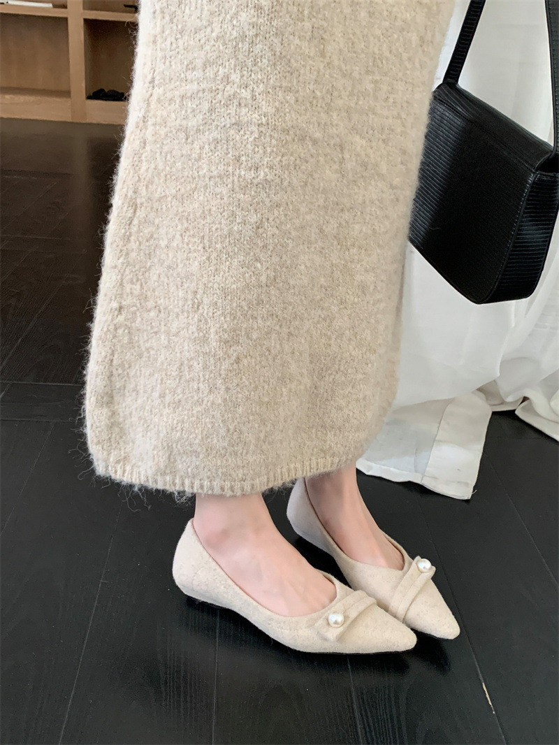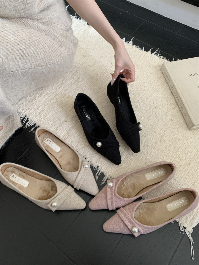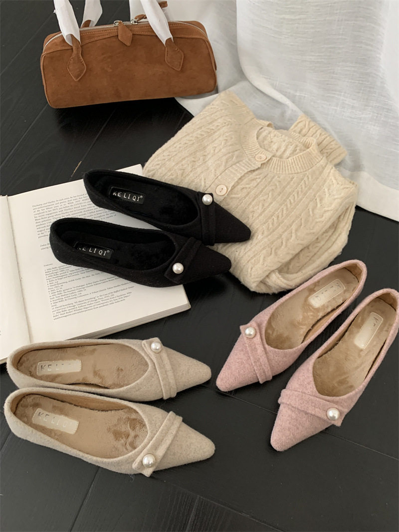 2024 가을과 겨울 새로운 부드러운 가죽 부드러운 우유 신발 요정 저녁 스타일 플랫 콩 신발 샤넬 스타일 얕은 입 신발스토어 가기