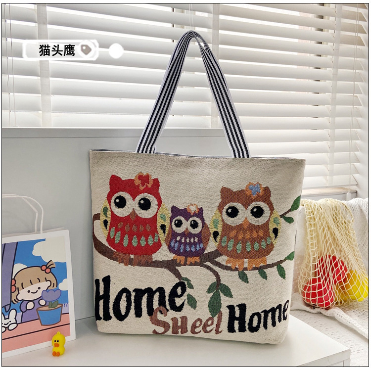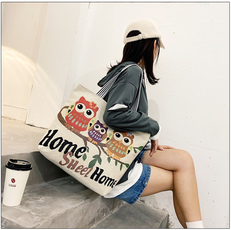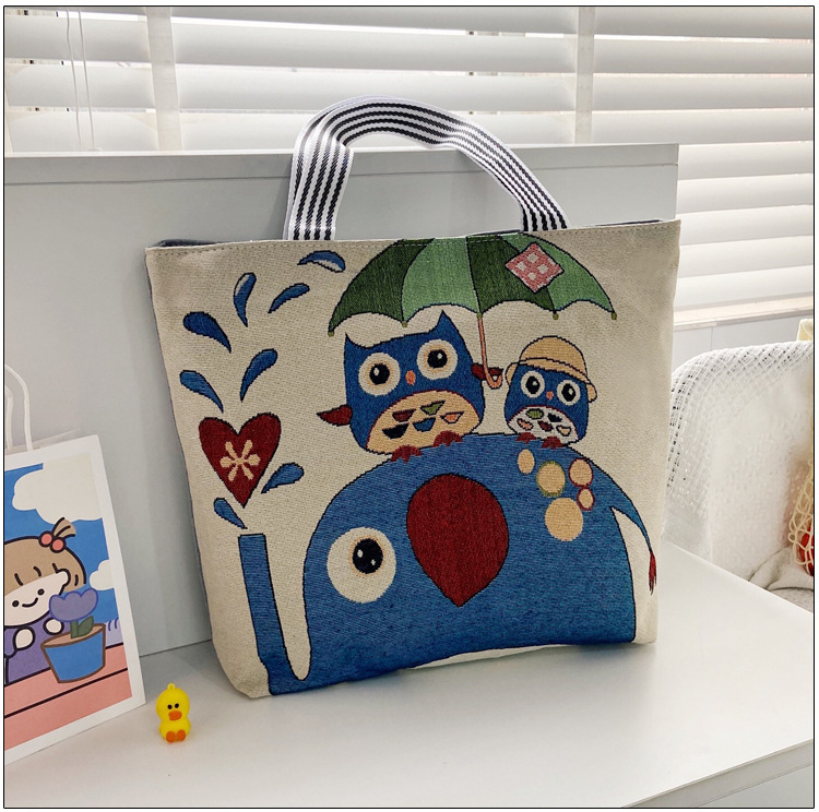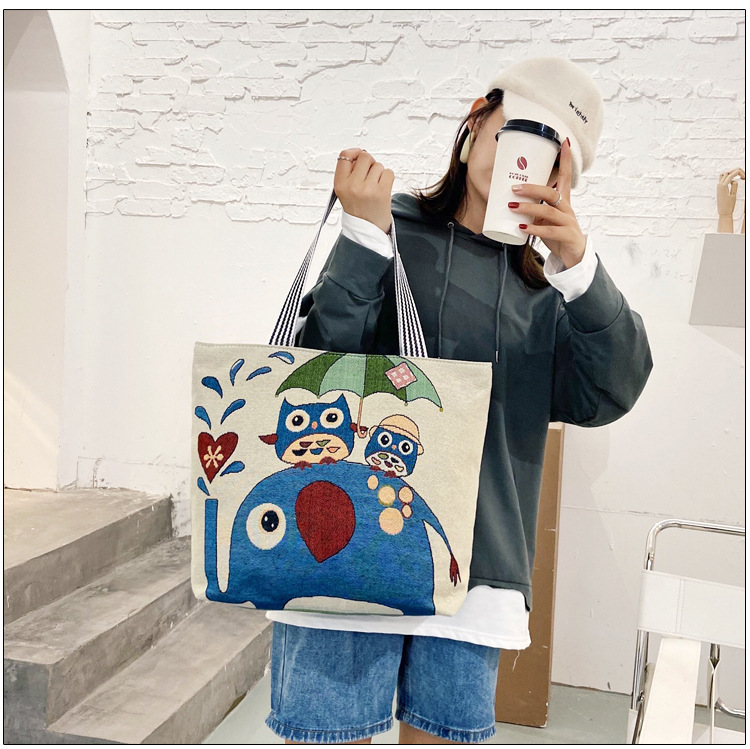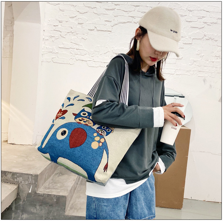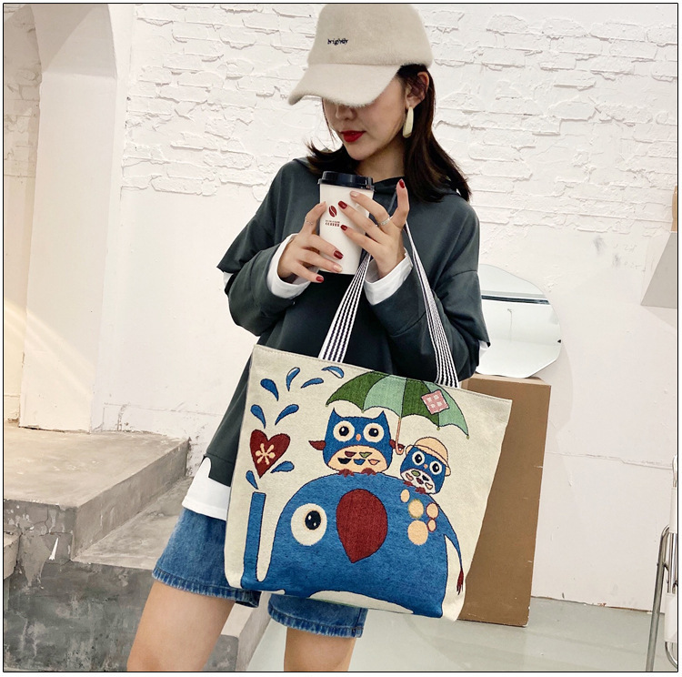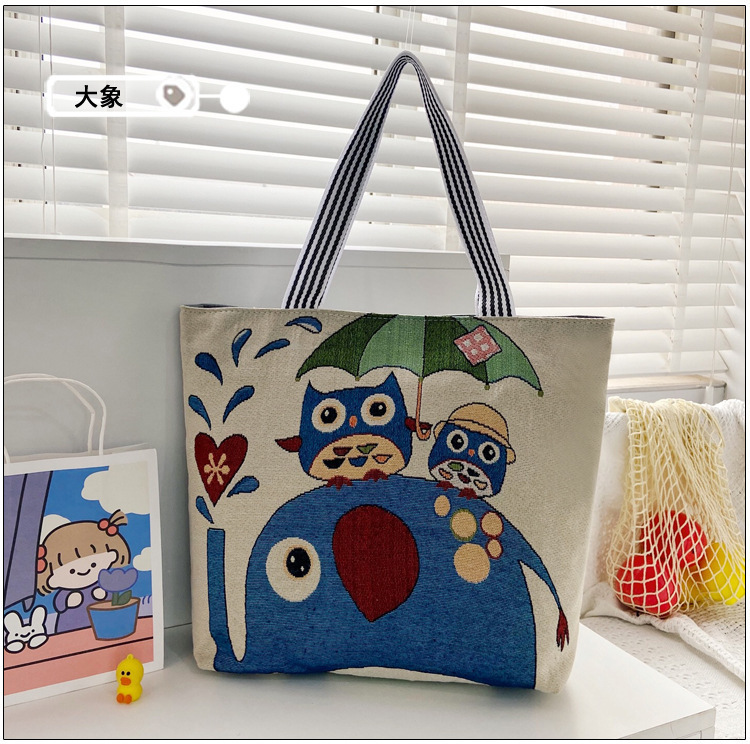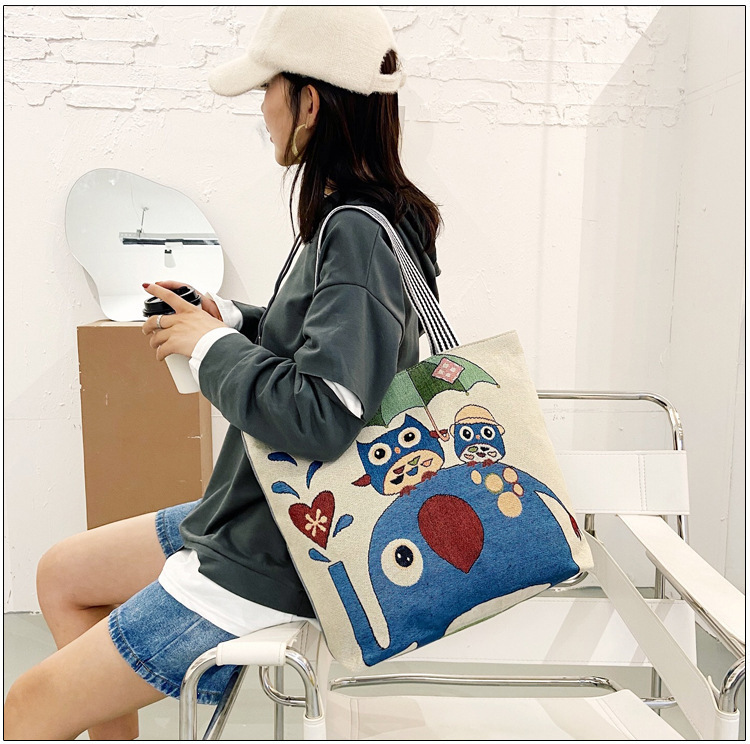 국경을 넘는 새로운 만화 토끼 패션 여성 숄더백 엄마용 휴대용 자수 천 가방 대용량 숄더 쇼핑백
