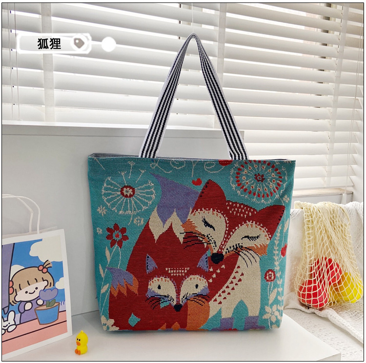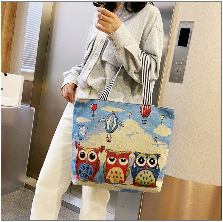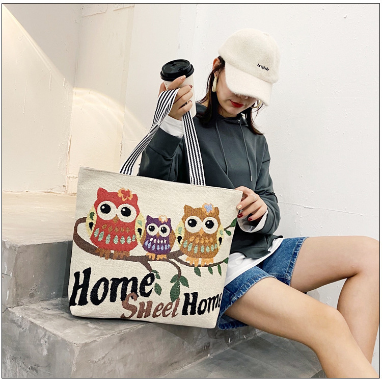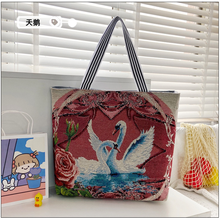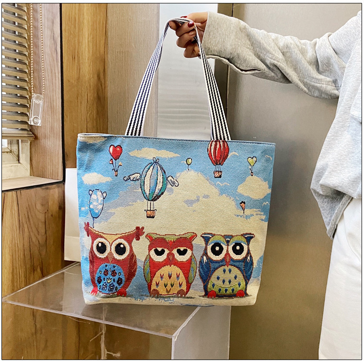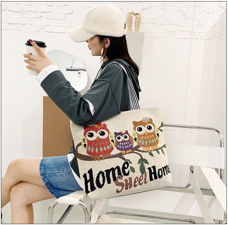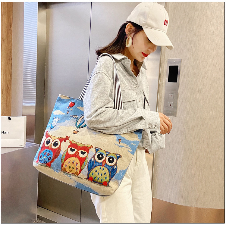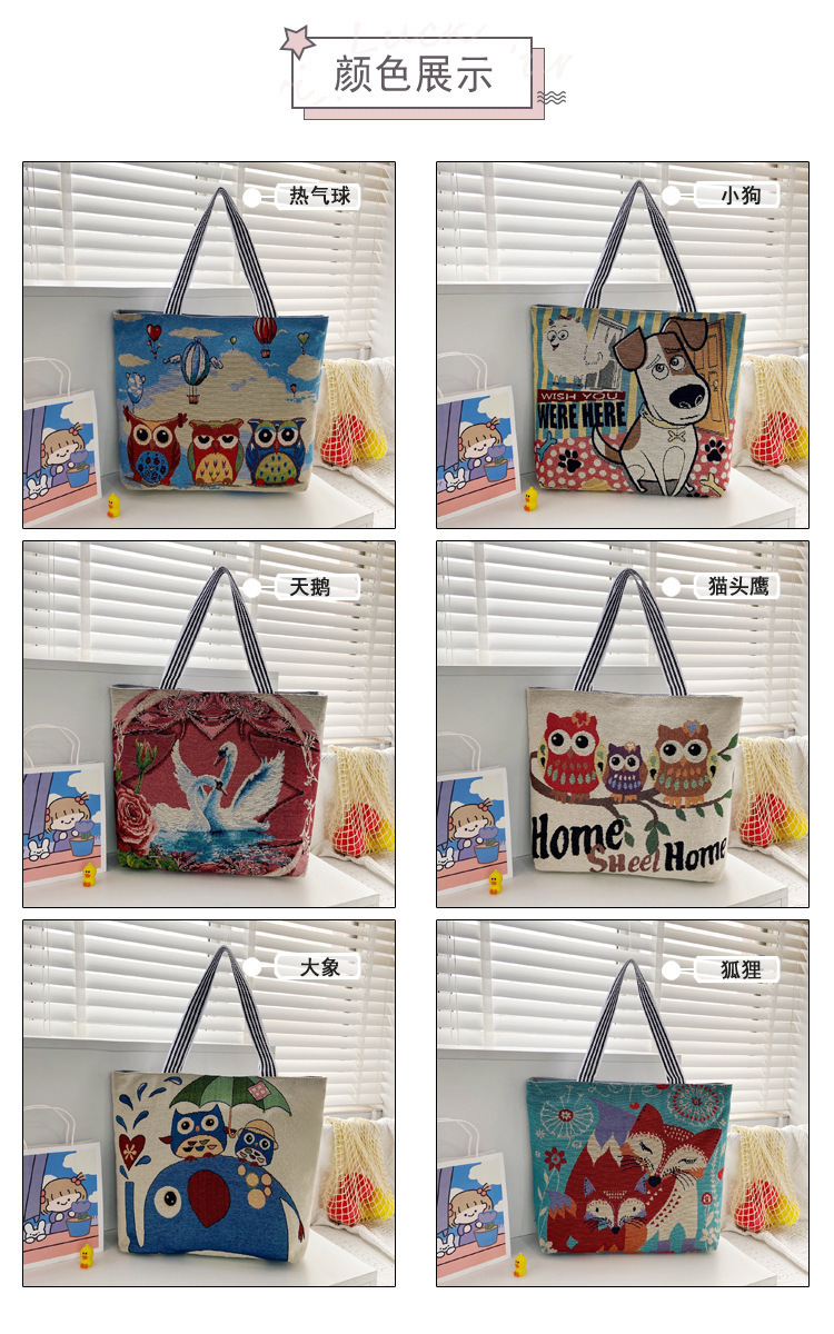 국경을 넘는 새로운 만화 토끼 패션 여성 숄더백 엄마용 휴대용 자수 천 가방 대용량 숄더 쇼핑백
