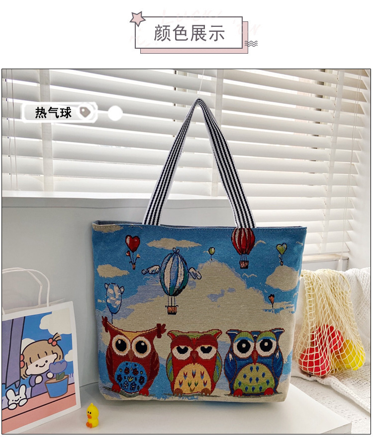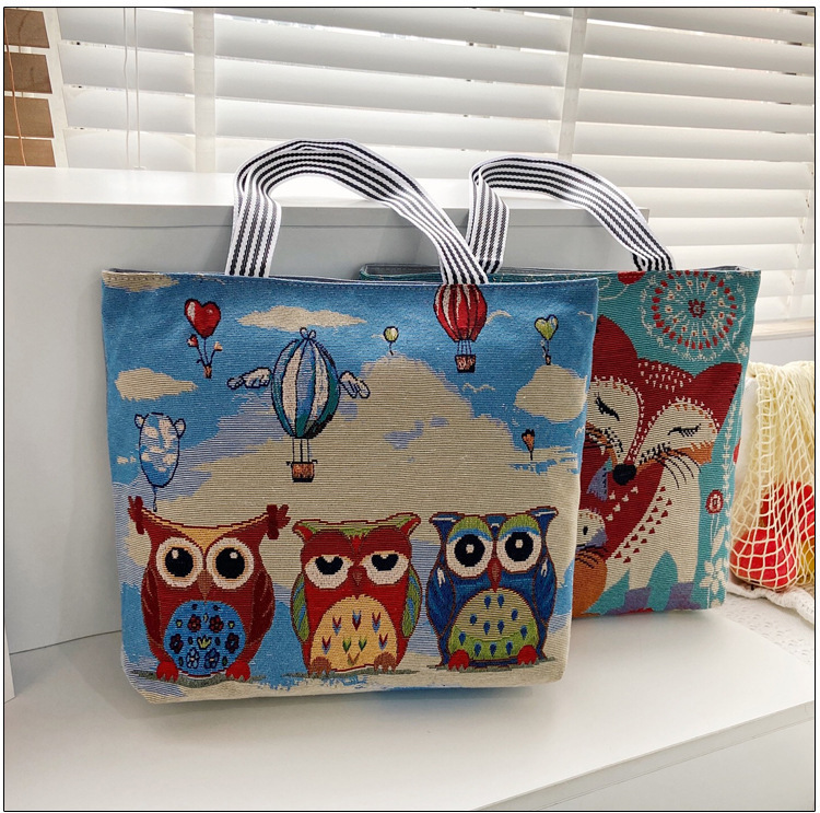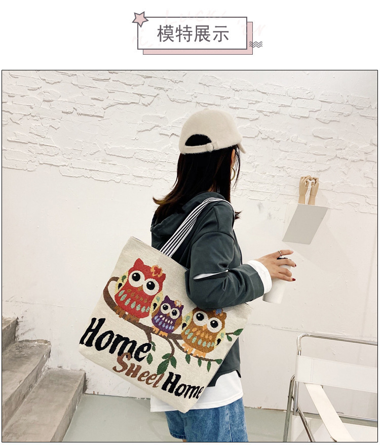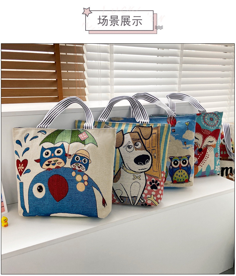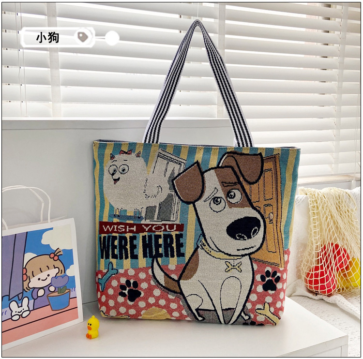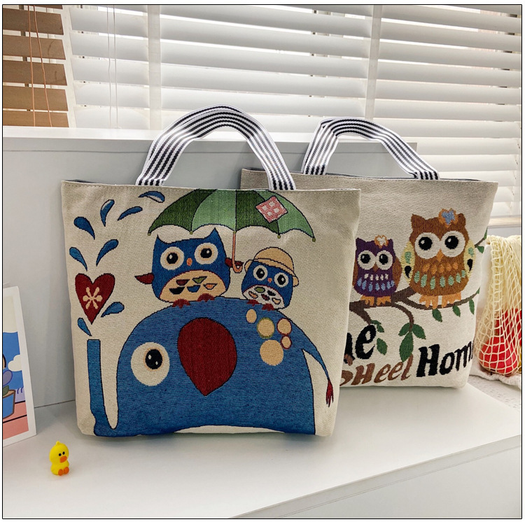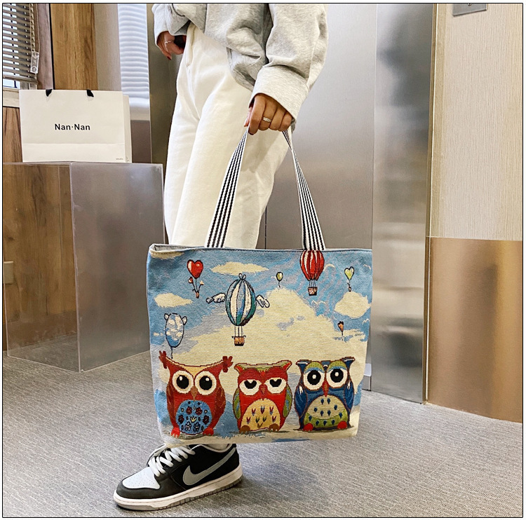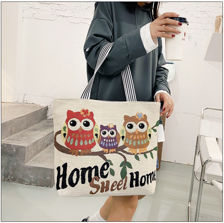국경을 넘는 새로운 만화 토끼 패션 여성 숄더백 엄마용 휴대용 자수 천 가방 대용량 숄더 쇼핑백