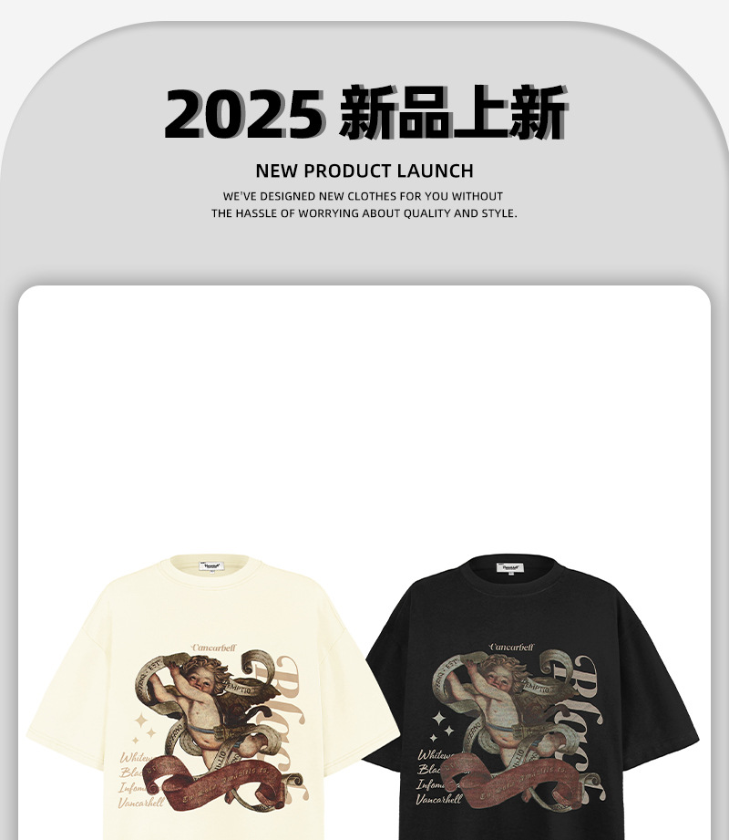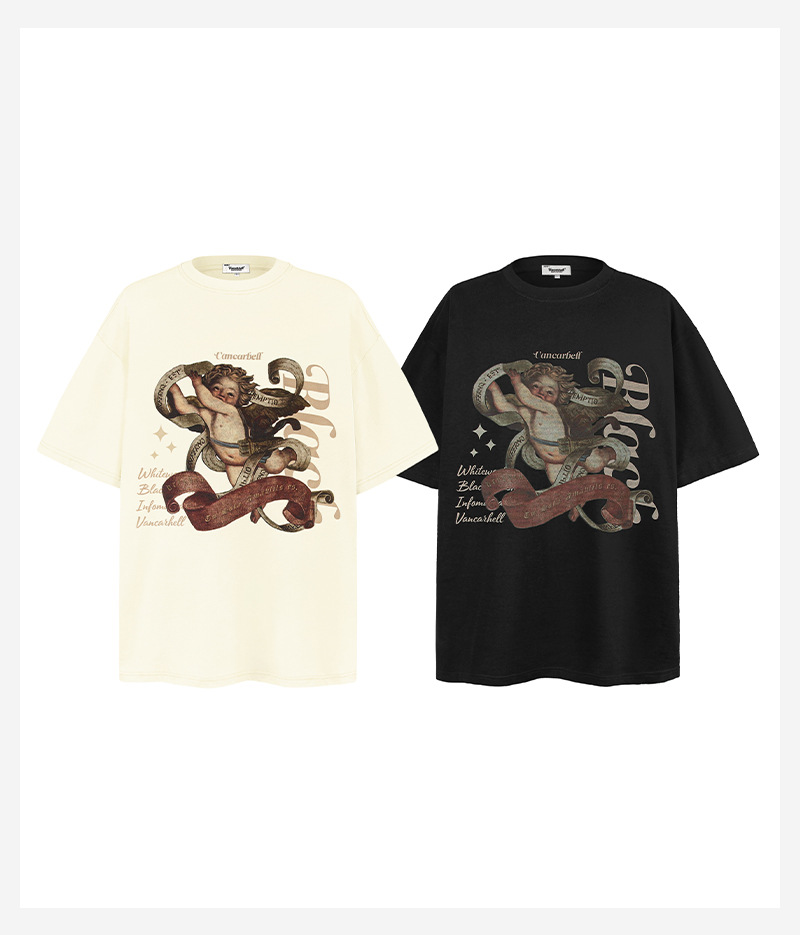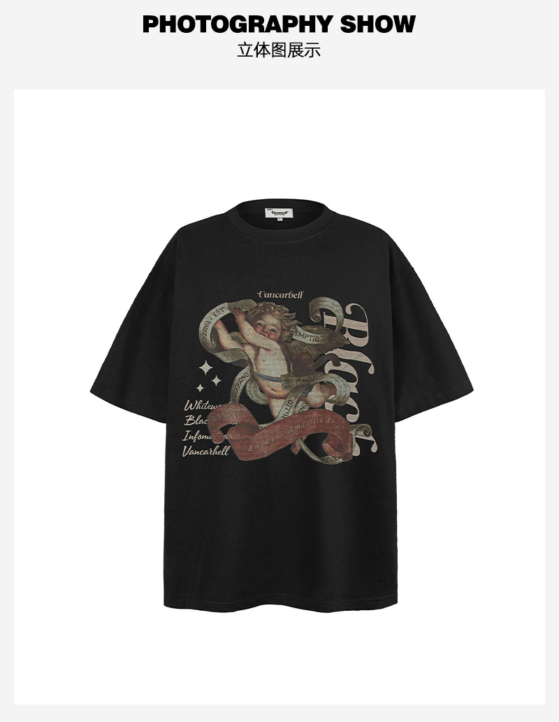 아메리칸 스타일 레트로 패션 브랜드 디자인 엔젤 프린트 반팔 티셔츠 남성 여름 새로운 느슨한 커플 캐주얼 반소매 셔츠스토어 가기