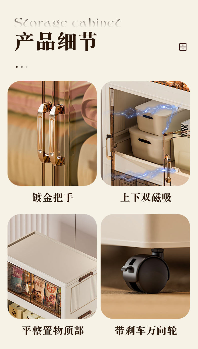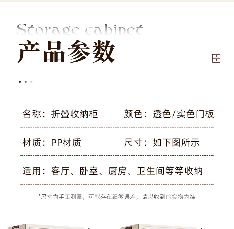 1:关于尺寸 因收纳柜非标准件,按行业标准商品外围尺寸标注,测量方式包含盖好盖子卡扣位置测量。