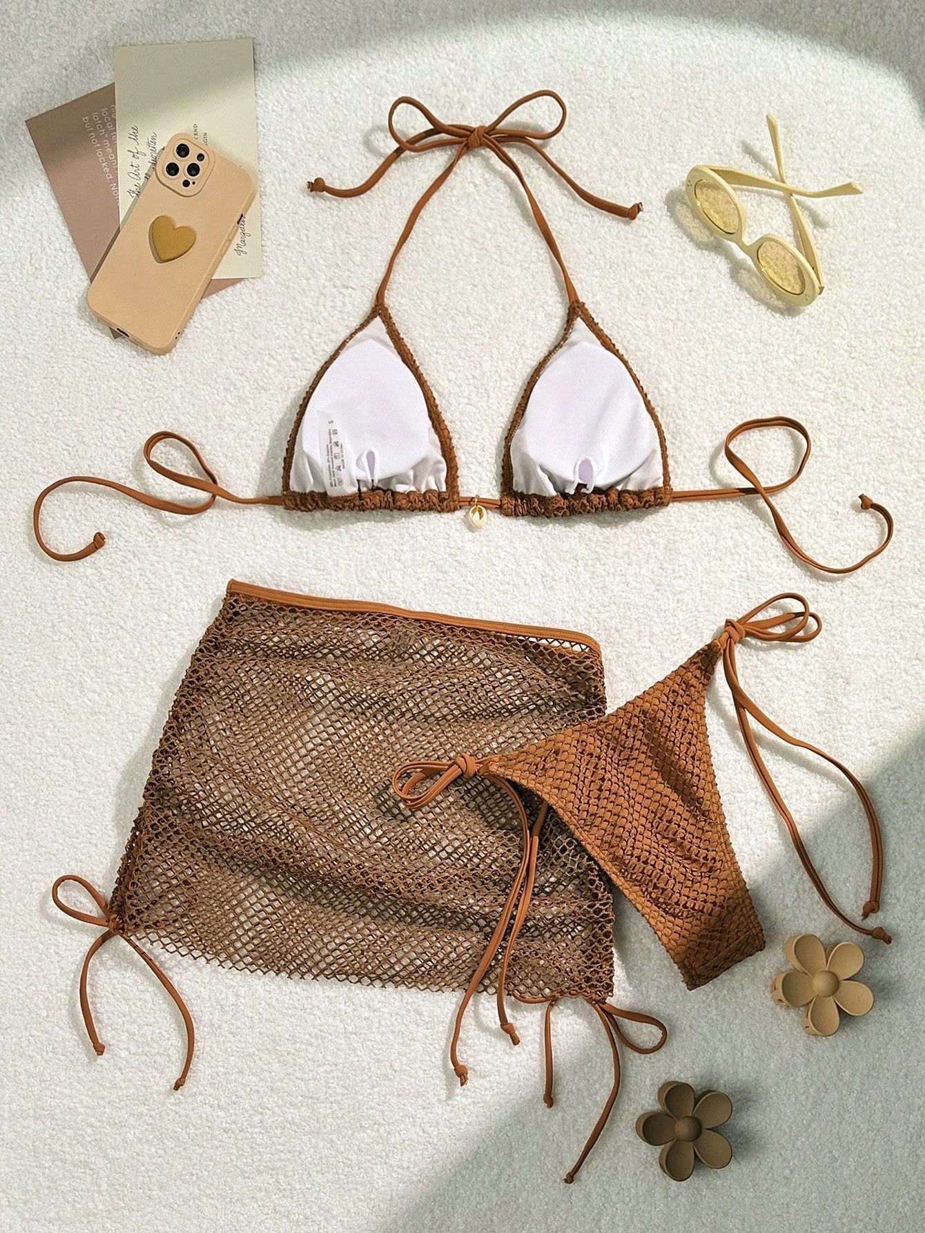 유럽과 미국의 국경 간 대외 무역 비키니 아마존 수영복 3피스 스플릿 비키니 2025 여성 수영복 도매