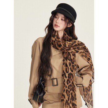 [치즈] 밀레니엄 스타일 레트로 레오파드 실크 스카프 여성의 얇은 인쇄 스파이스 소녀 스카프 분위기 홍콩 스타일 목도리스토어 가기