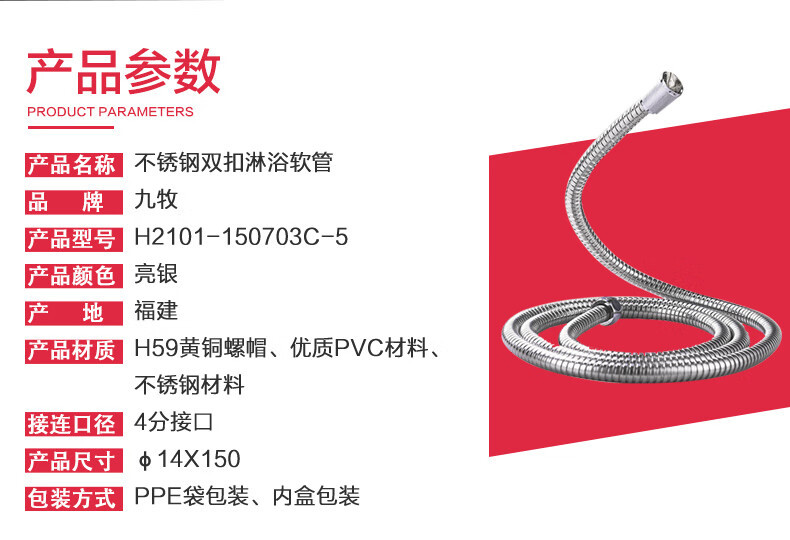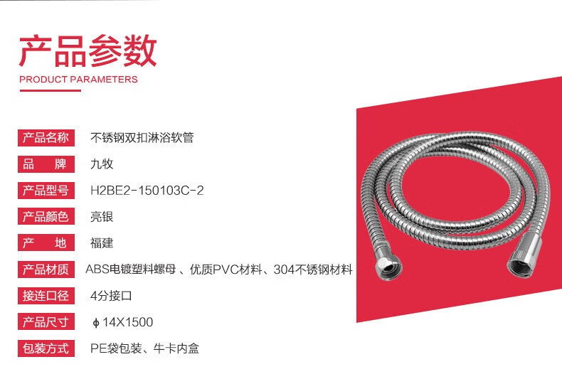 지우무 욕실 비 노즐 부드러운 스테인레스 스틸 폭발 방지 레이어드 더블 버클 물 입구 샤워 파이프 1.5 m H2BE2