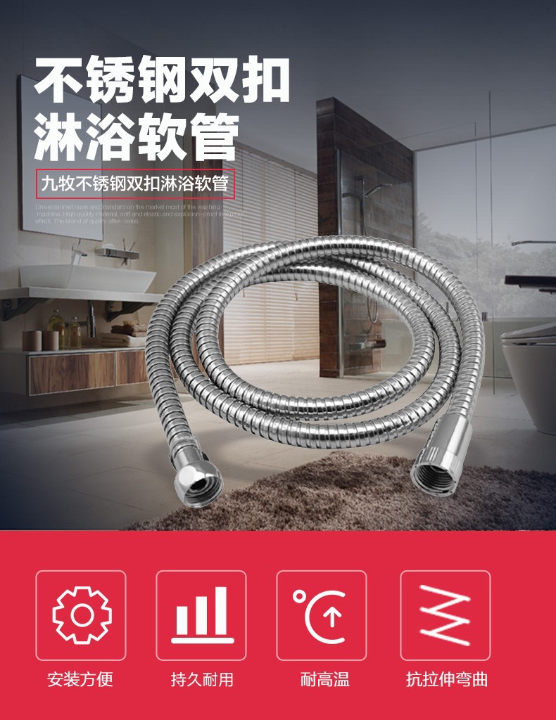 지우무 욕실 비 노즐 부드러운 스테인레스 스틸 폭발 방지 레이어드 더블 버클 물 입구 샤워 파이프 1.5 m H2BE2스토어 가기
