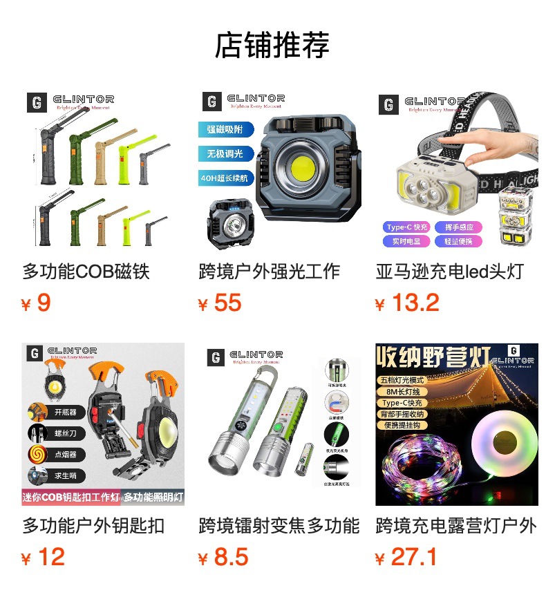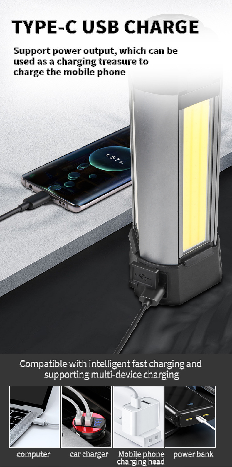 크로스-국경 새로운 COB 텔레스코픽 캠핑 램프 야외 다기능 접이식 회전 LED 강한 빛 작업 램프 자석