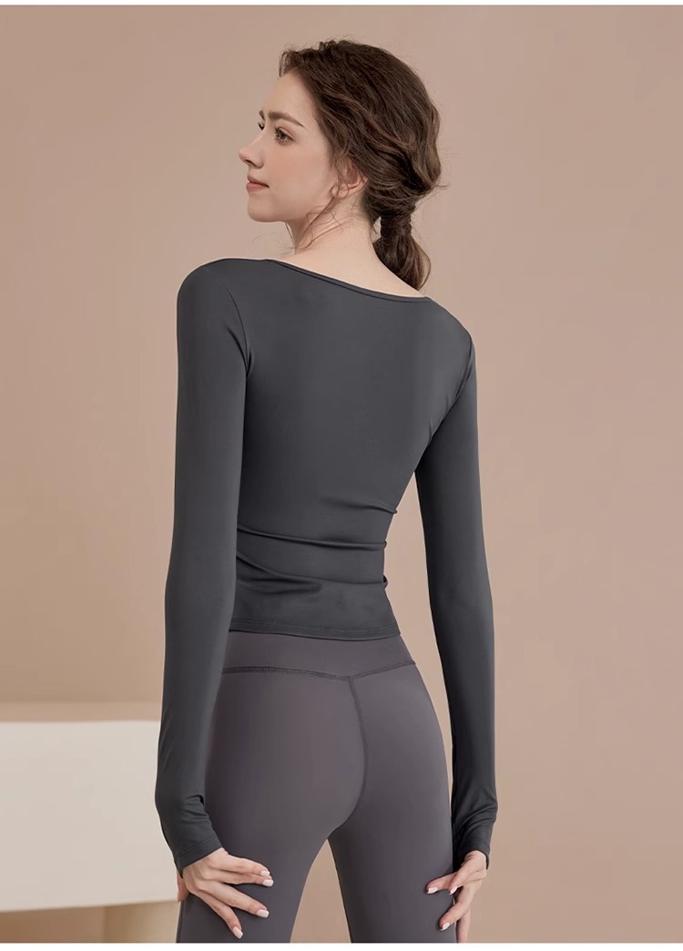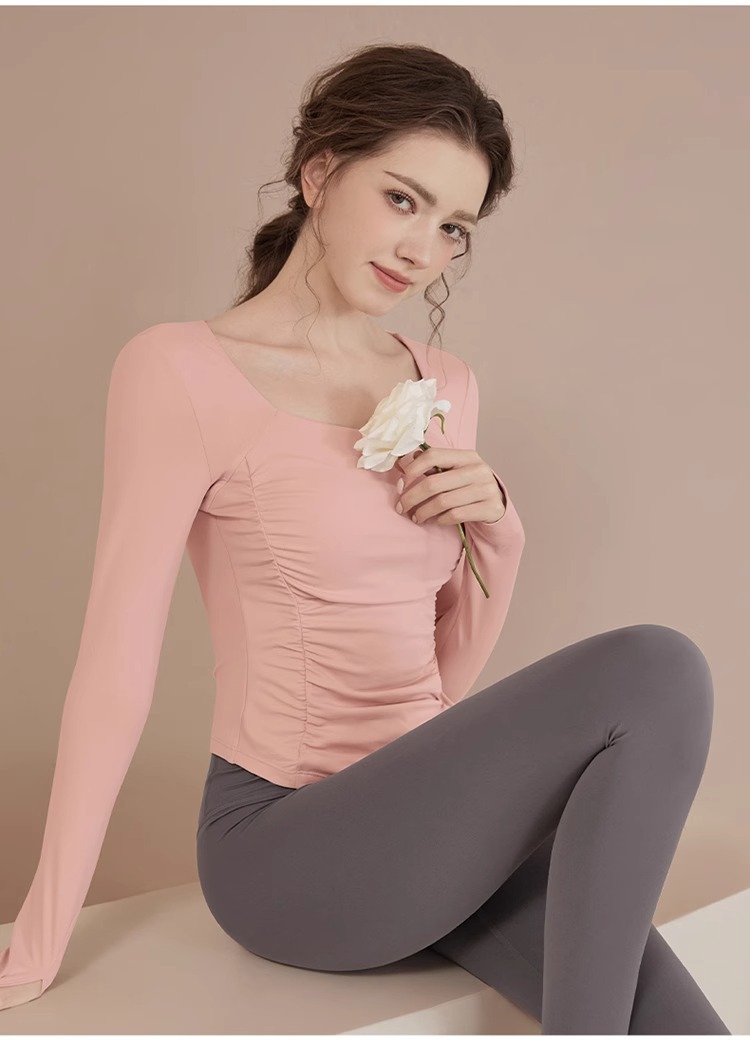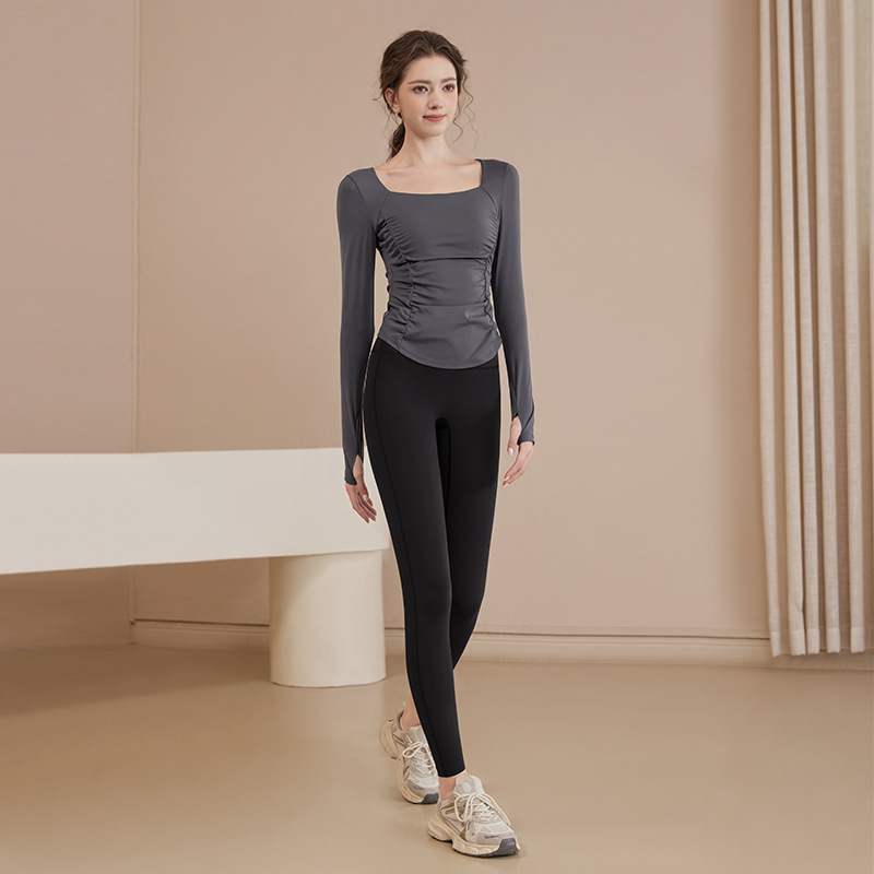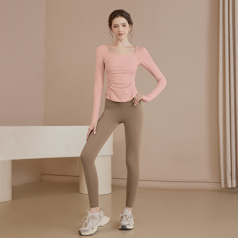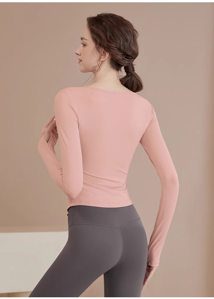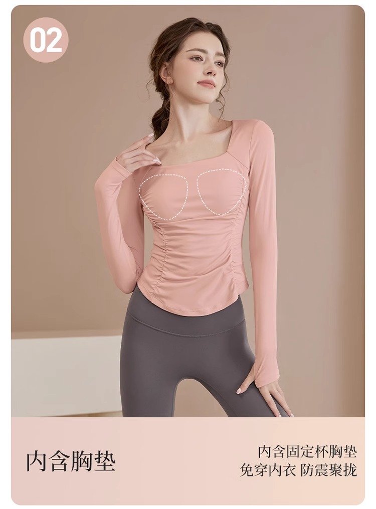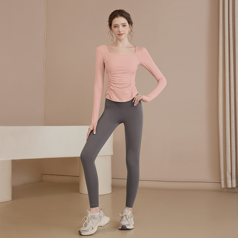 여성용 요가복 신상 봄 여름 필라테스 러닝 트레이닝 사이클링 스포츠 상의 가슴 패드가 있는 긴팔 세트