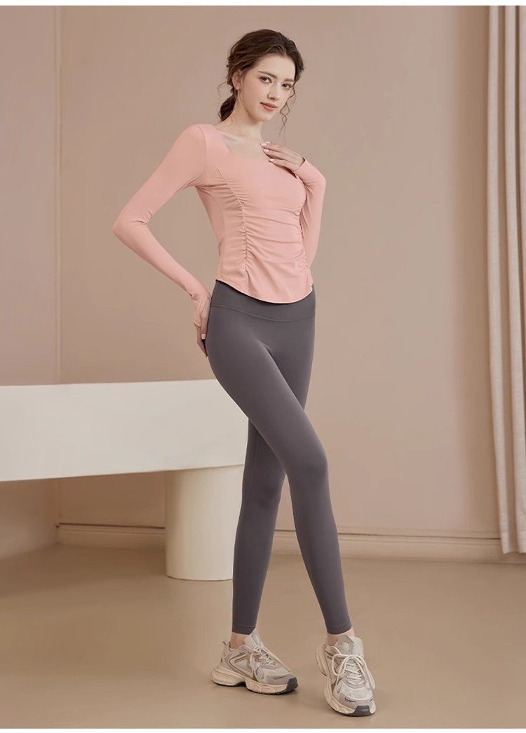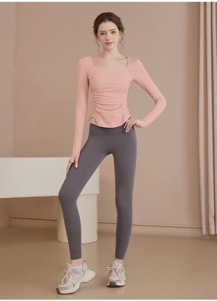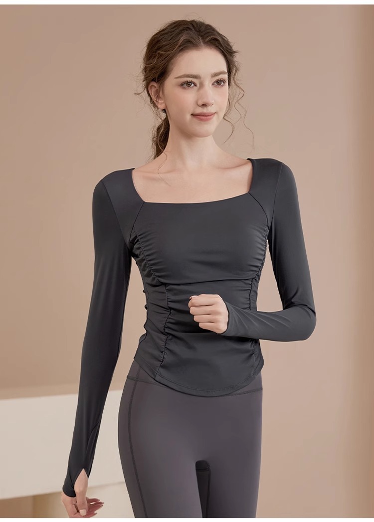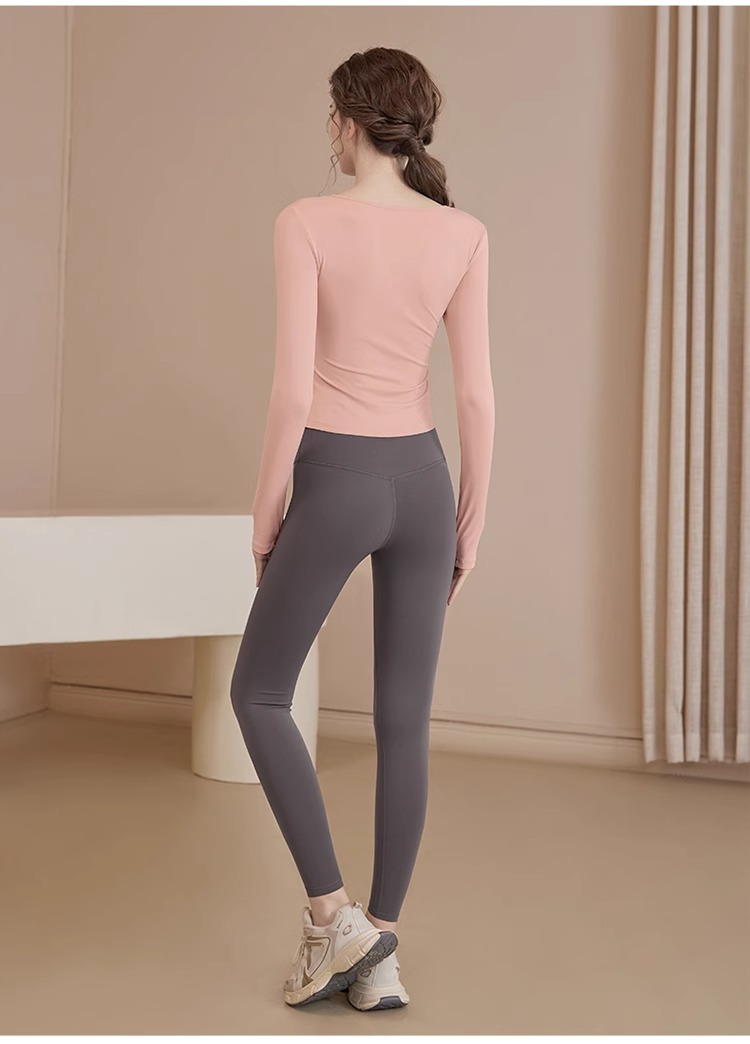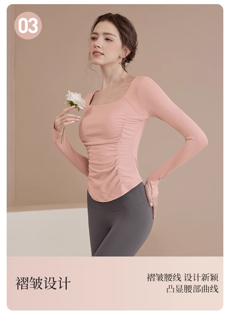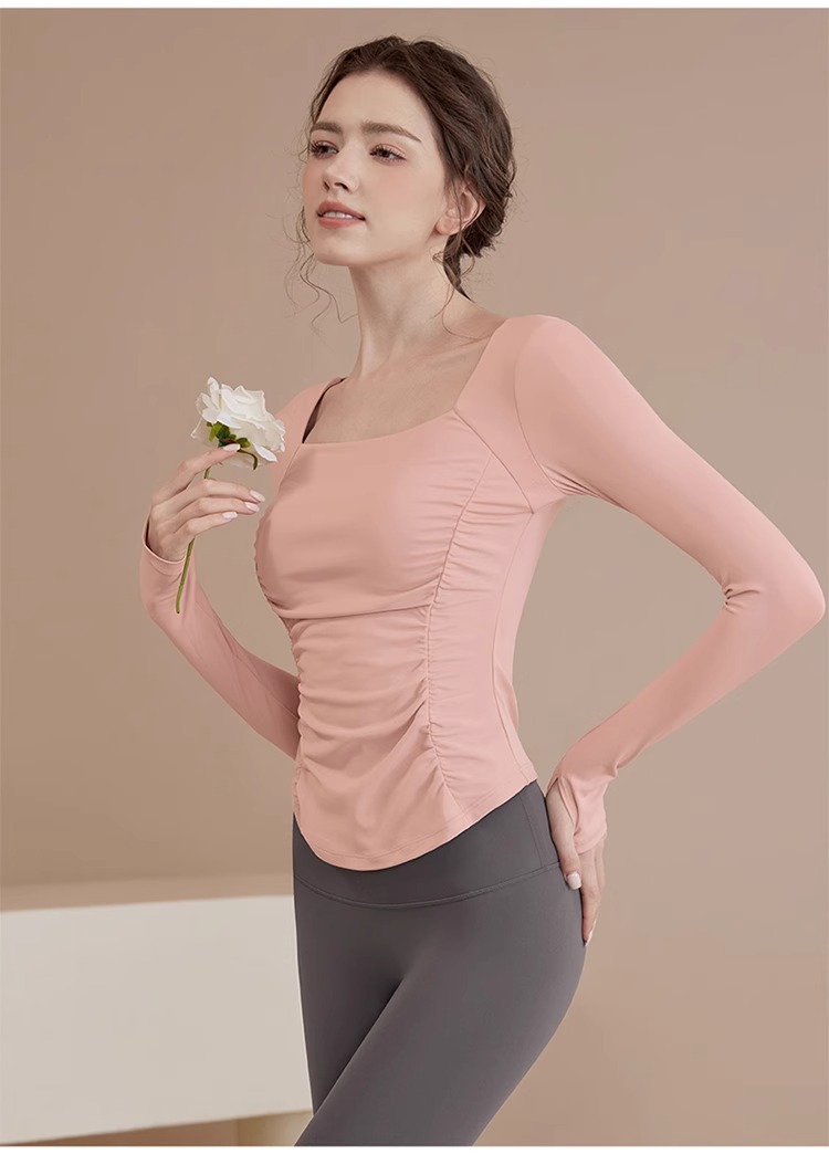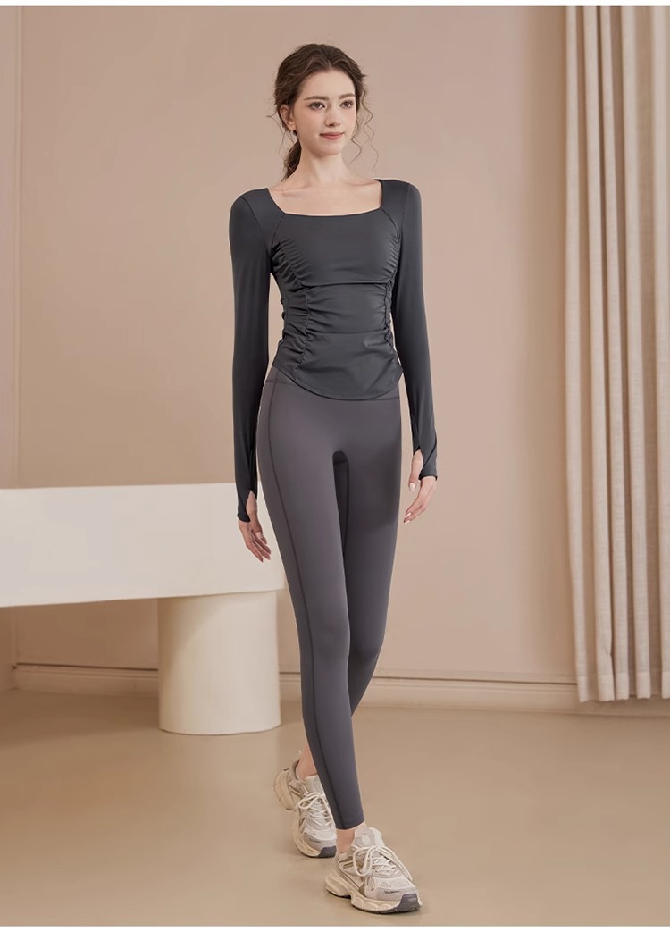 여성용 요가복 신상 봄 여름 필라테스 러닝 트레이닝 사이클링 스포츠 상의 가슴 패드가 있는 긴팔 세트