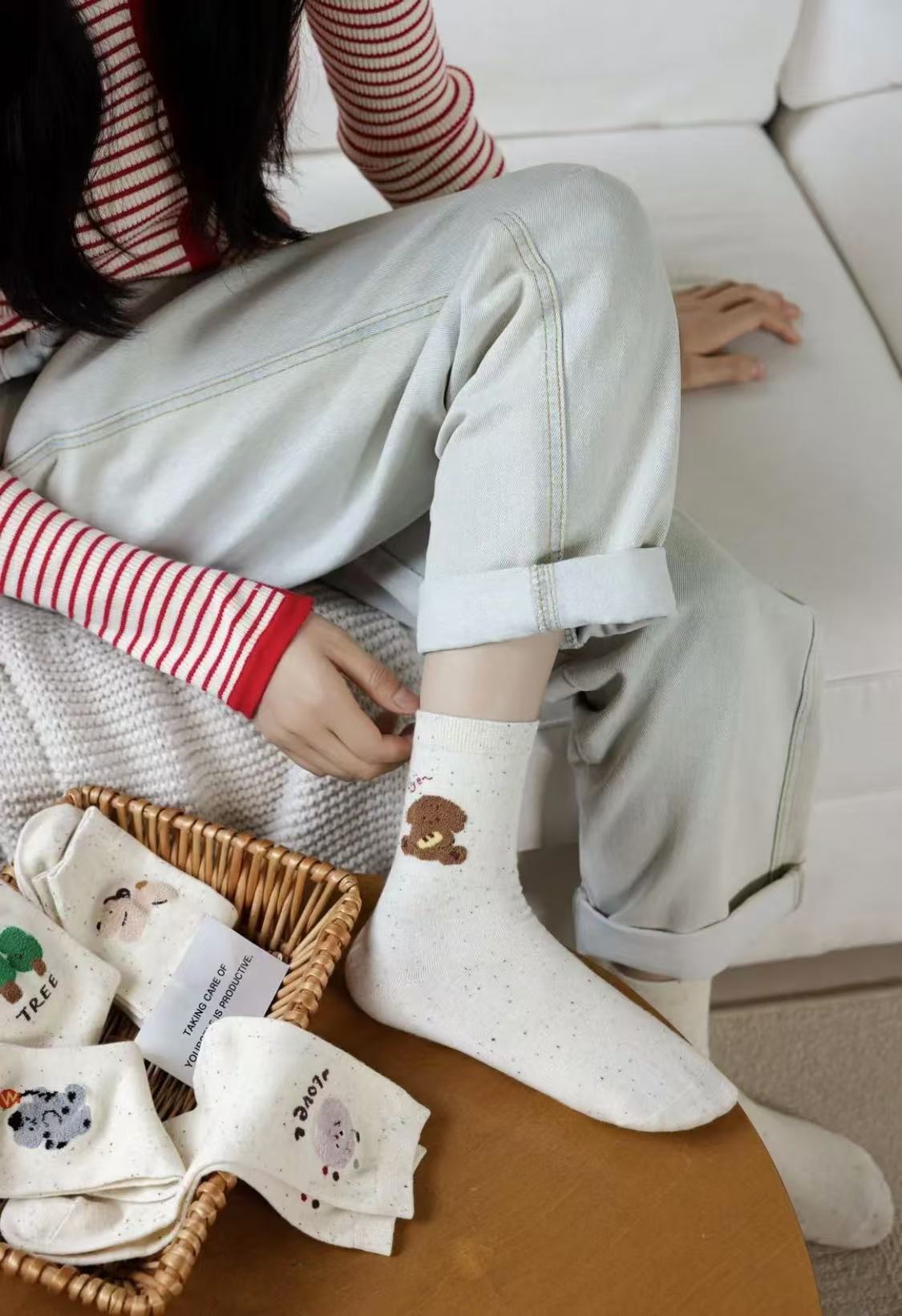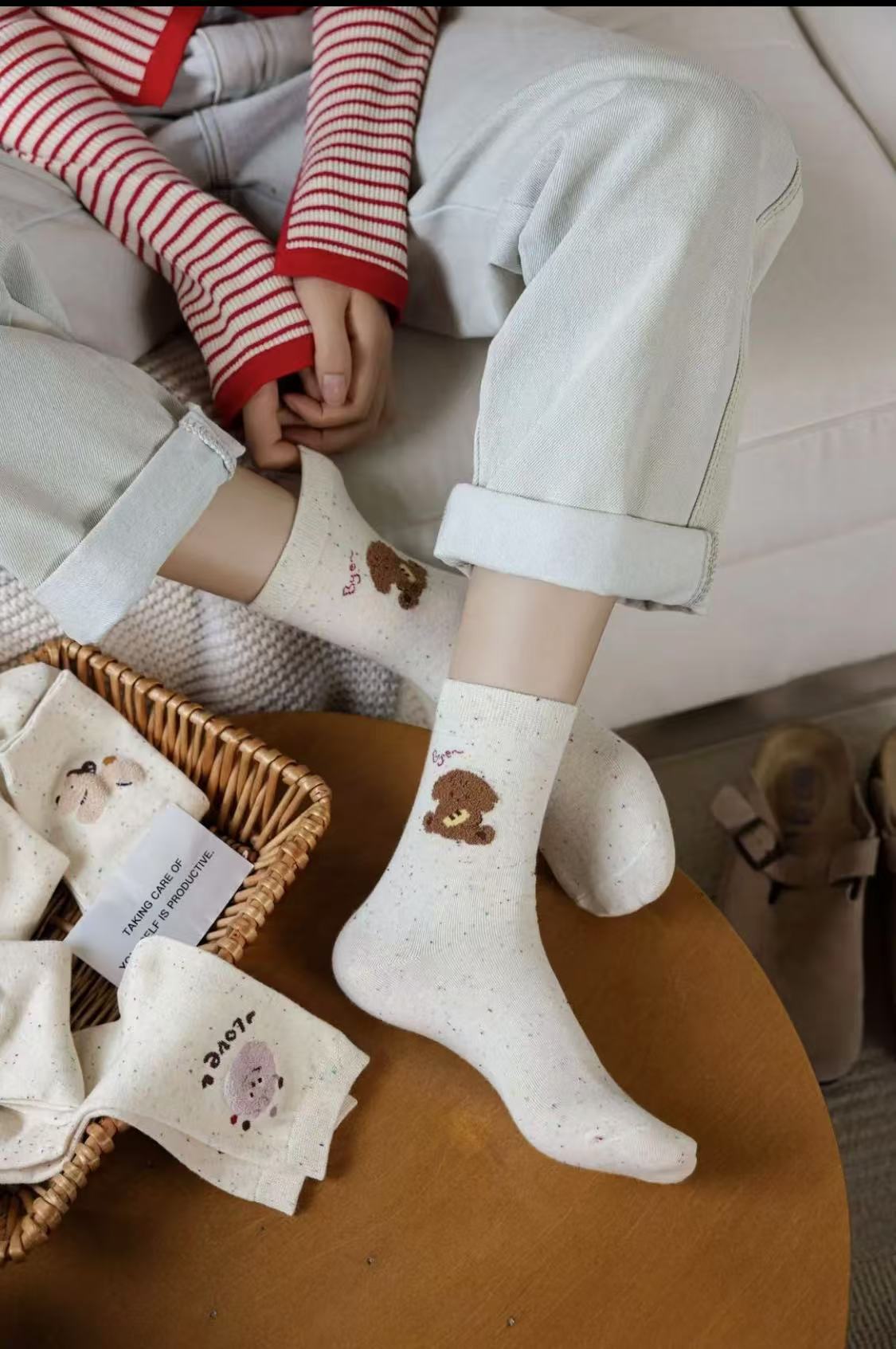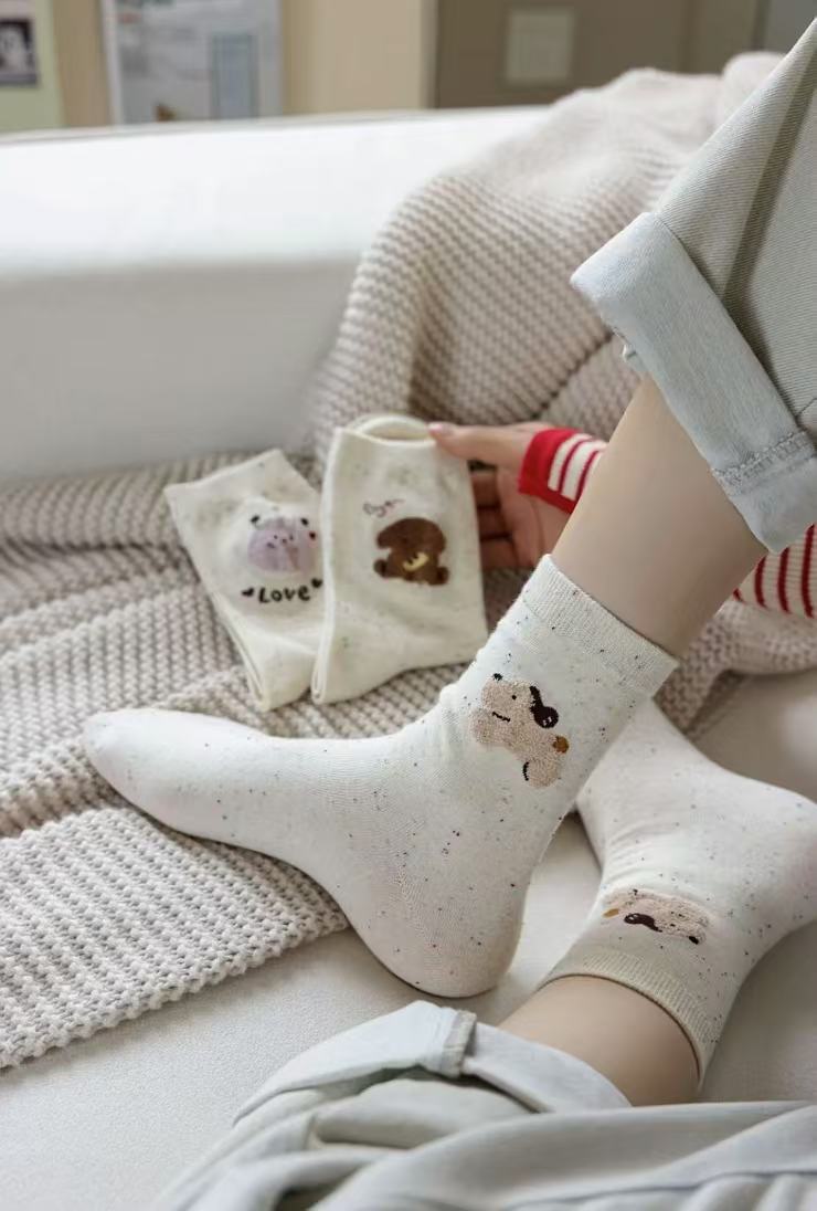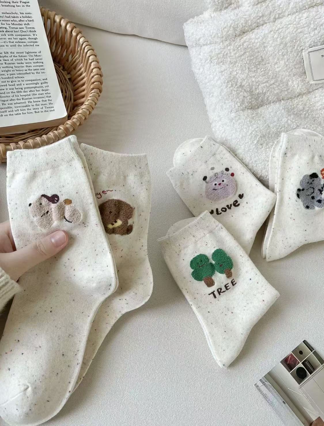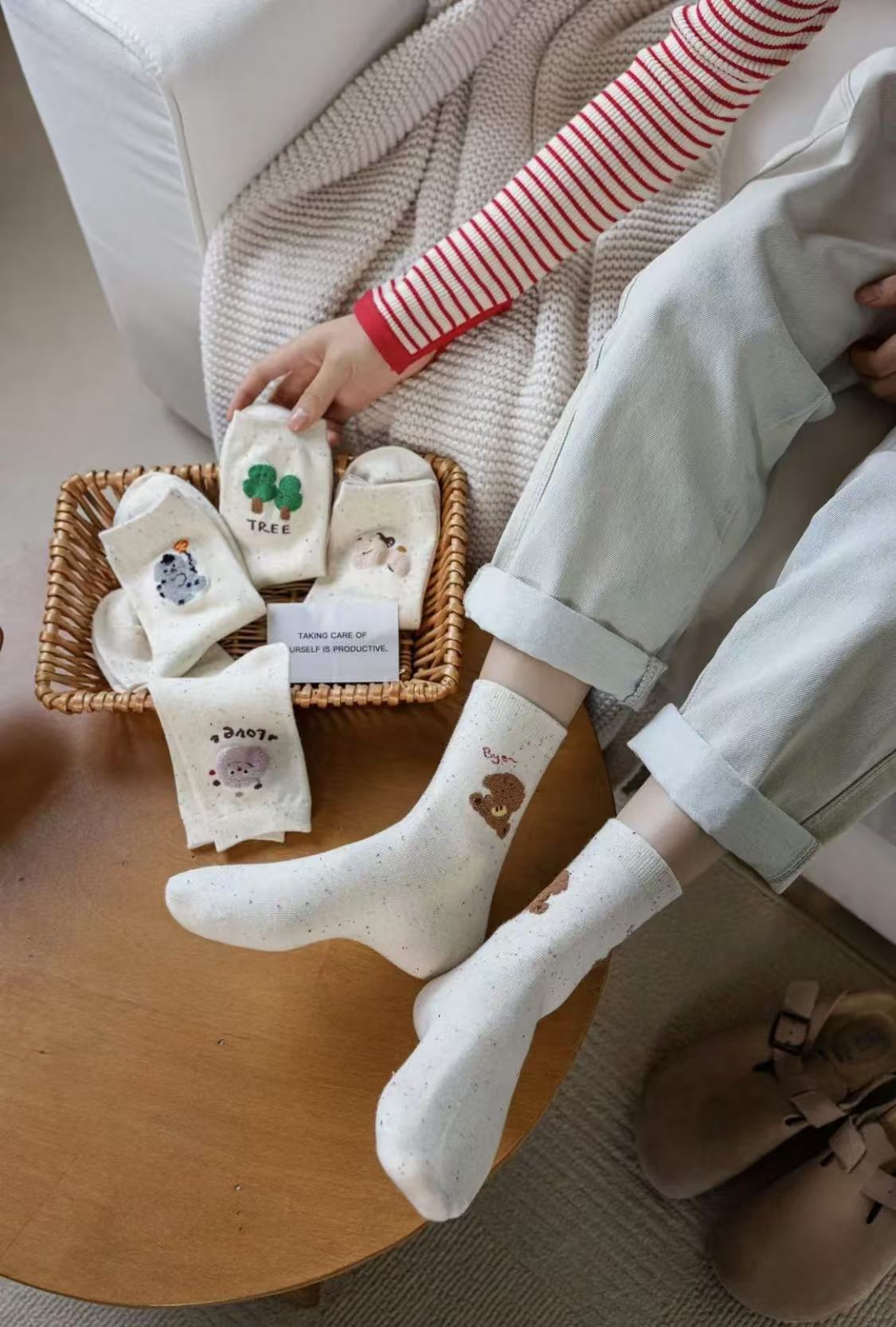 l [가을 겨울 신상품] 중간 길이 양말, 작은 동물 아이디어 원사, 귀여운 만화 학생 다용도 대학 스타일 통기성 양말스토어 가기
