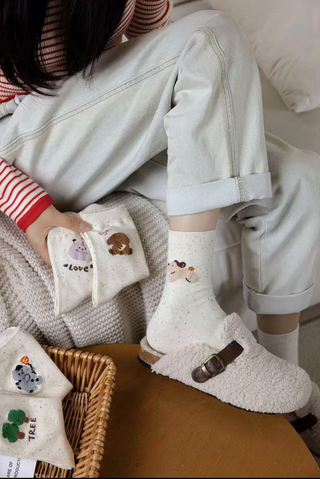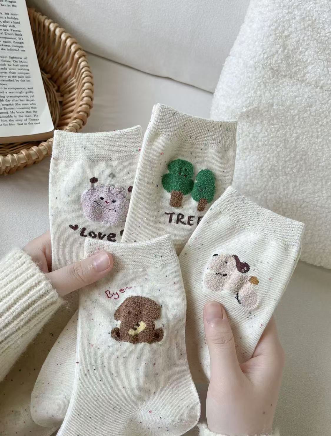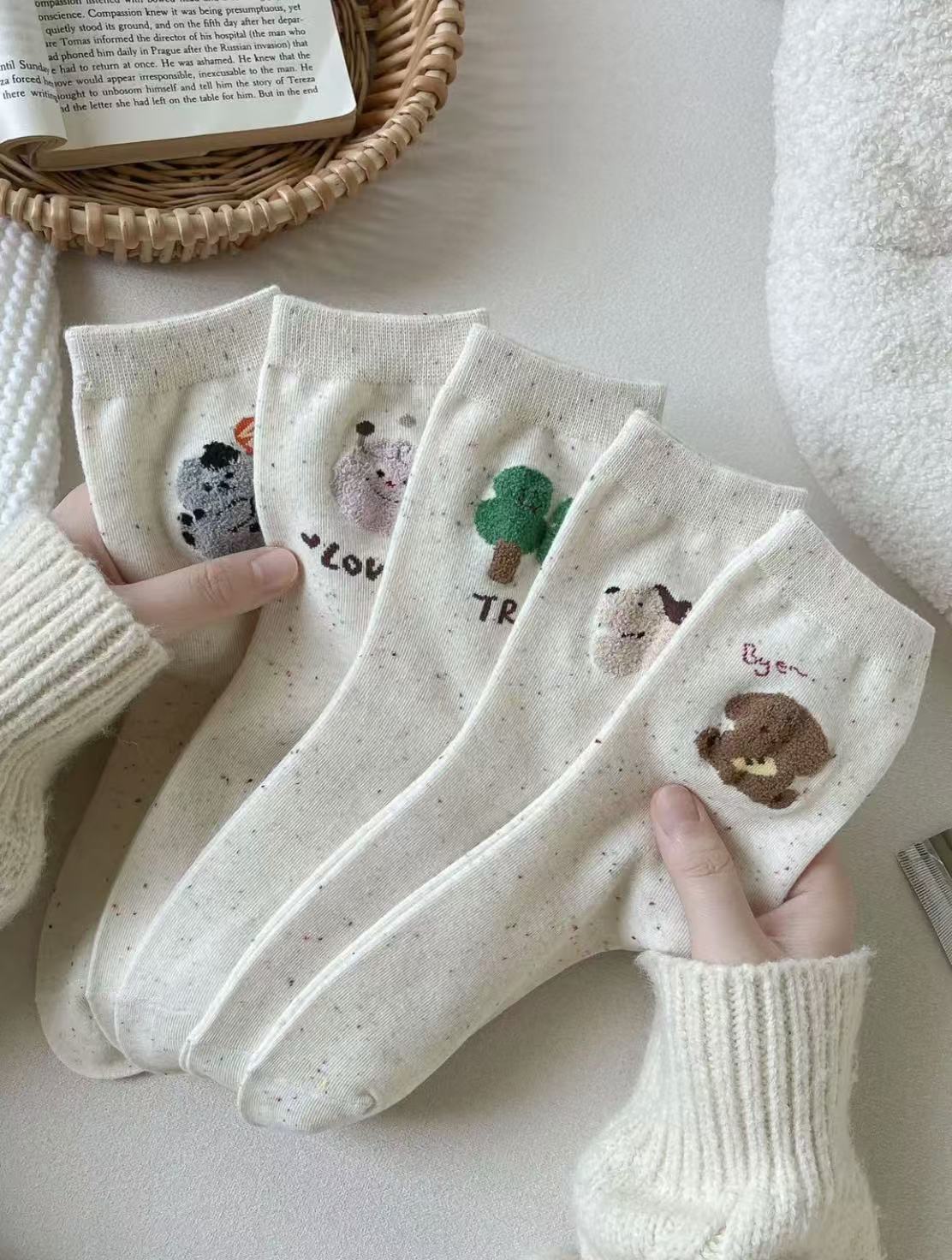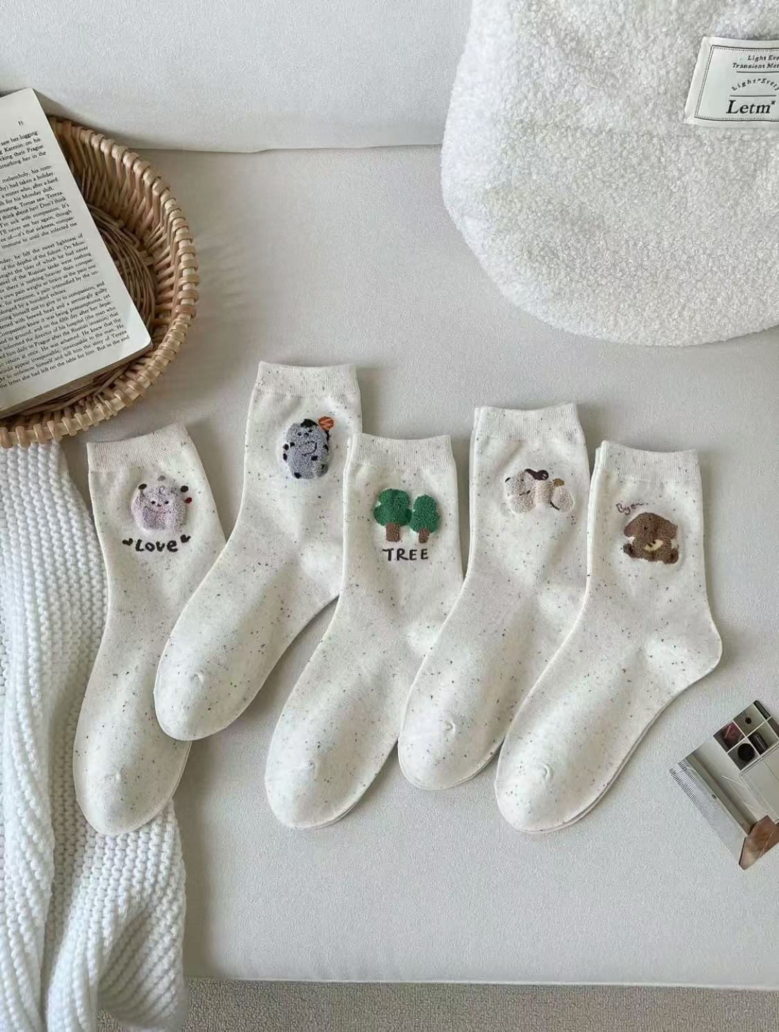 l [가을 겨울 신상품] 중간 길이 양말, 작은 동물 아이디어 원사, 귀여운 만화 학생 다용도 대학 스타일 통기성 양말스토어 가기