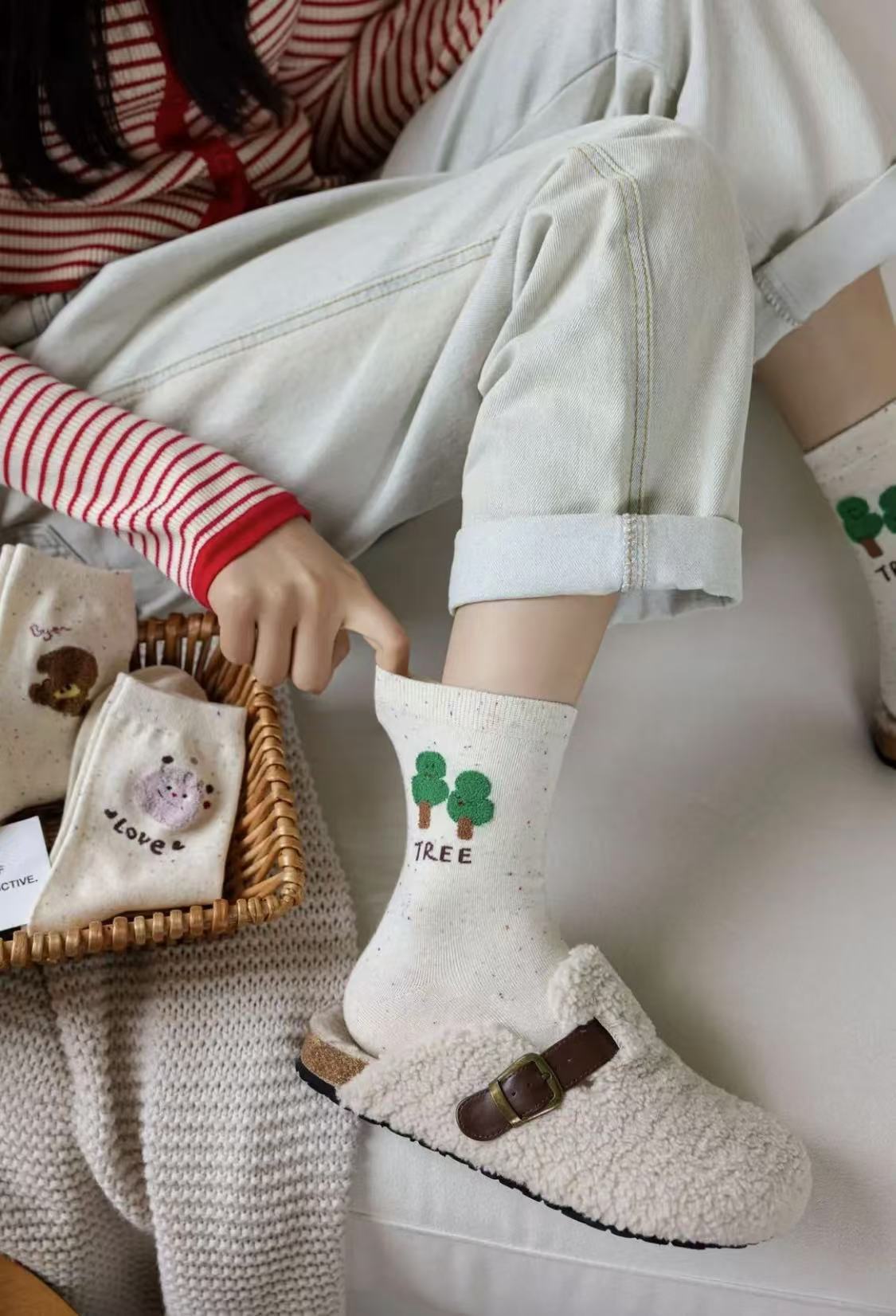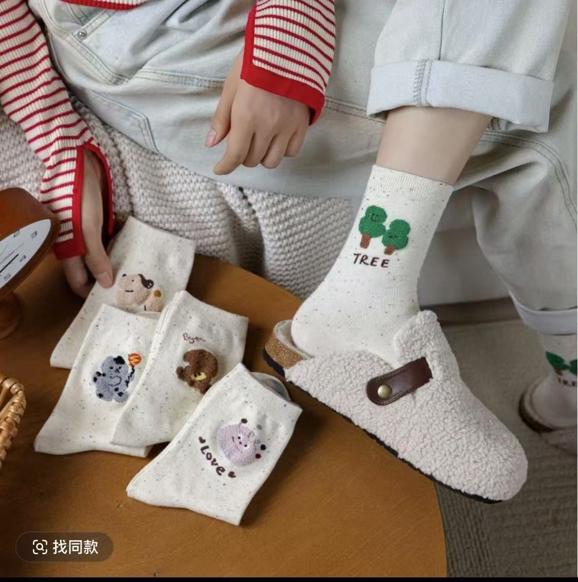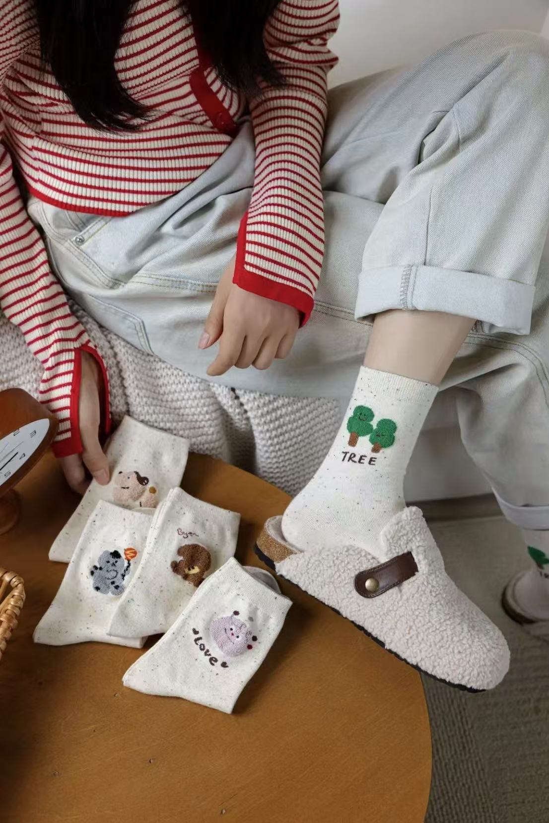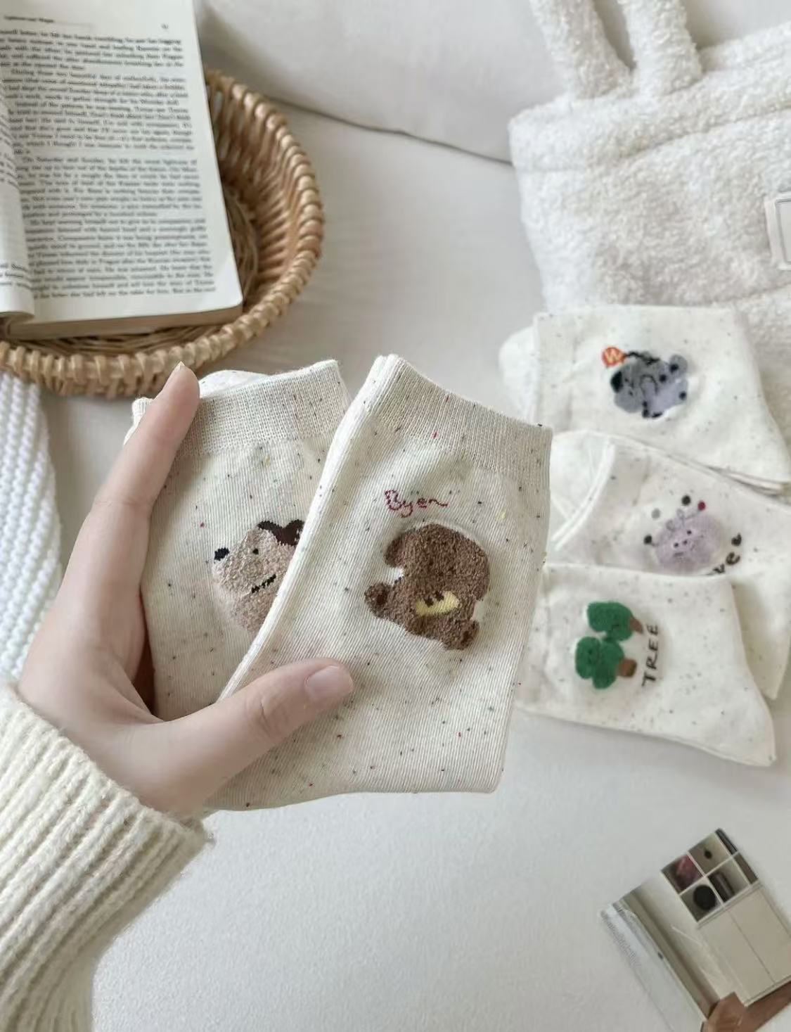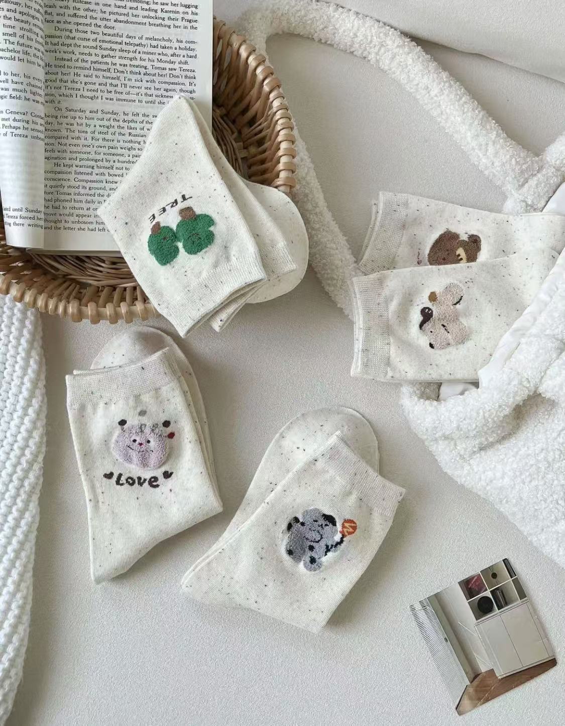 l [가을 겨울 신상품] 중간 길이 양말, 작은 동물 아이디어 원사, 귀여운 만화 학생 다용도 대학 스타일 통기성 양말스토어 가기