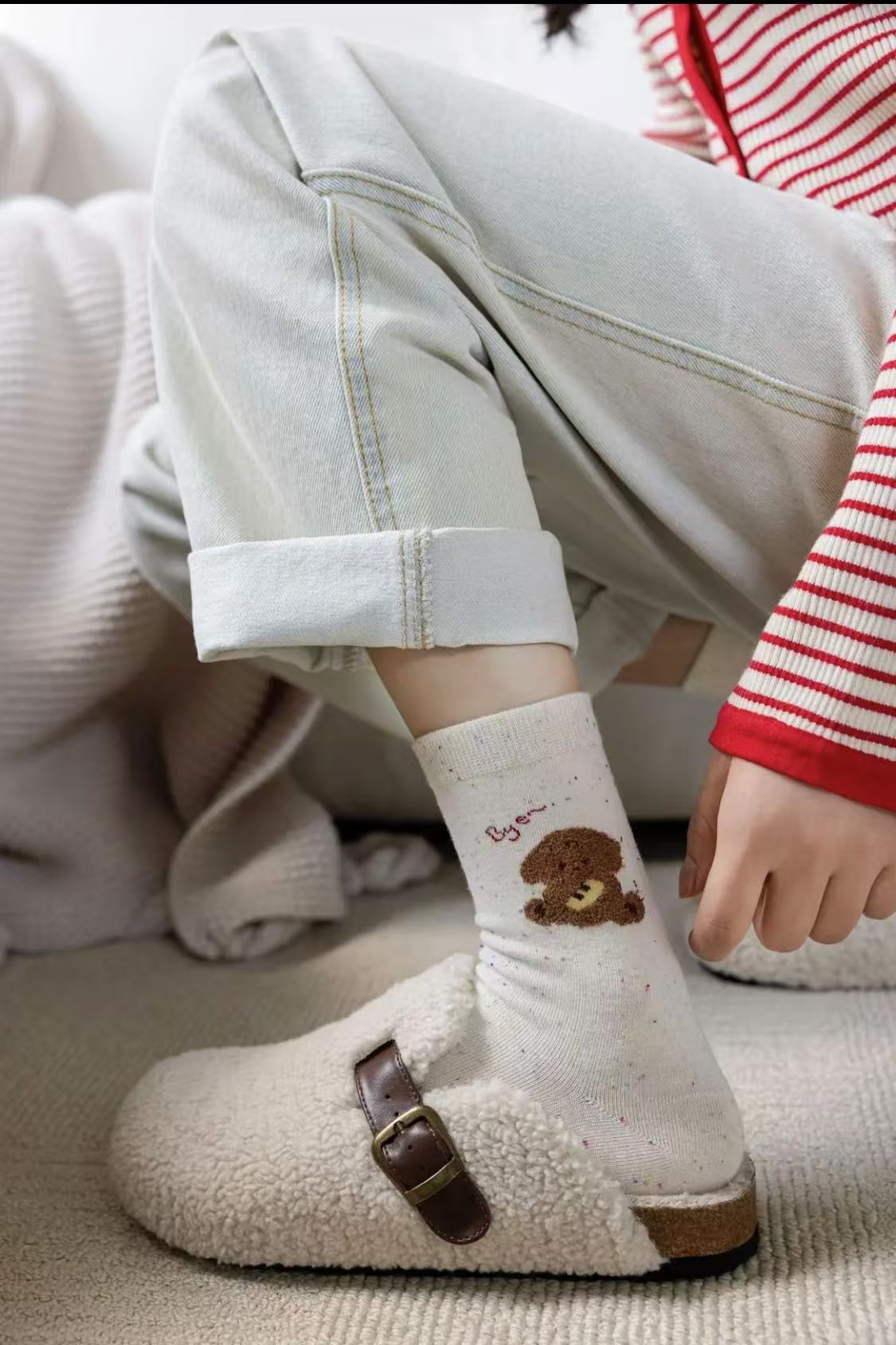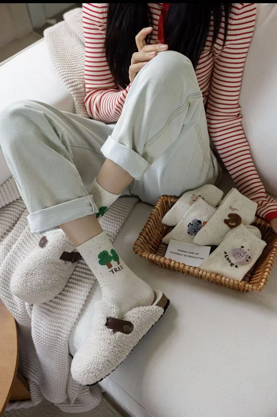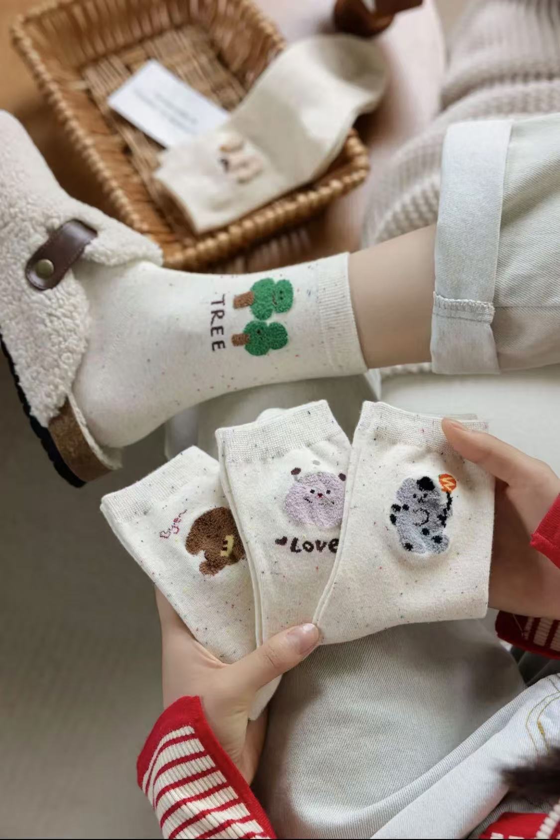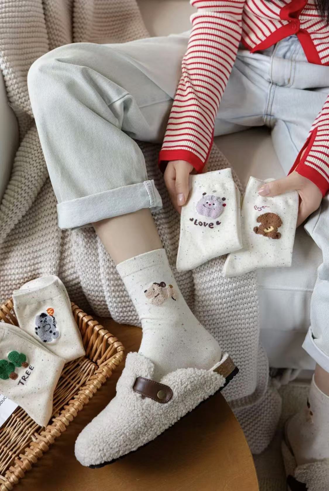 l [가을 겨울 신상품] 중간 길이 양말, 작은 동물 아이디어 원사, 귀여운 만화 학생 다용도 대학 스타일 통기성 양말스토어 가기