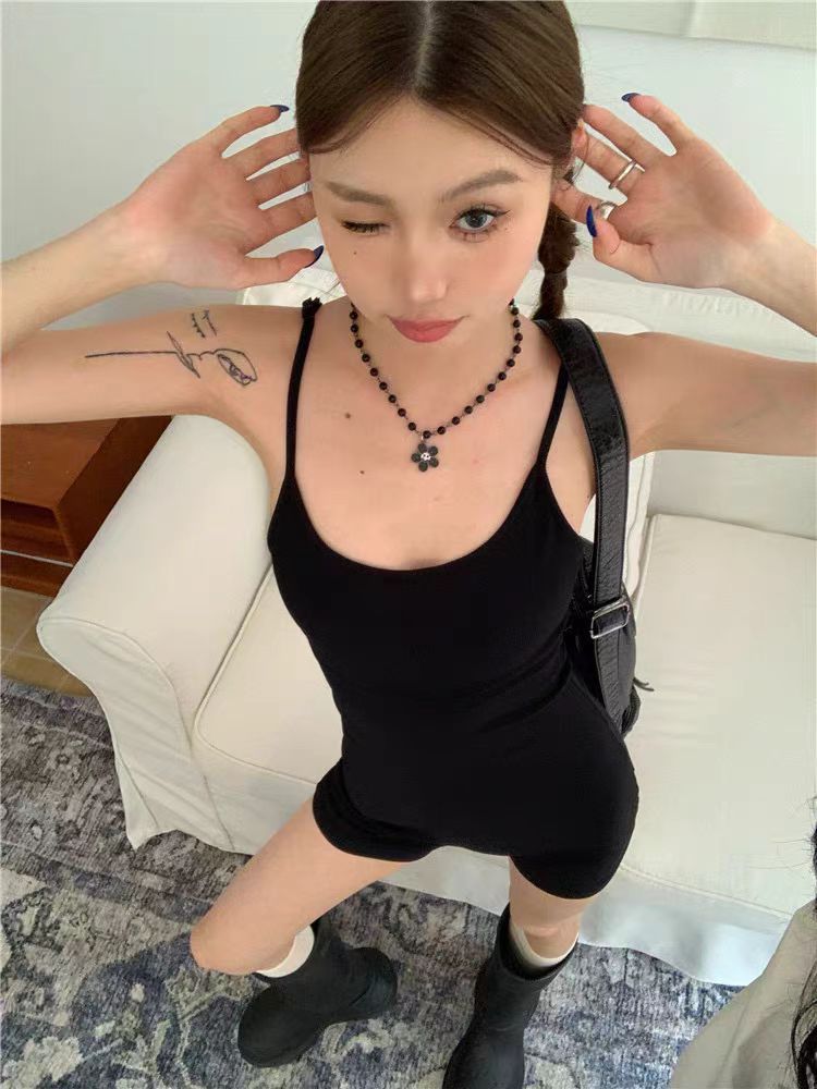뜨거운 소녀 슬링 점프 수트 여성 수영복 여름 바지 반바지 검은 엉덩이 바지 스포츠 피트니스 캐주얼 점프 수트