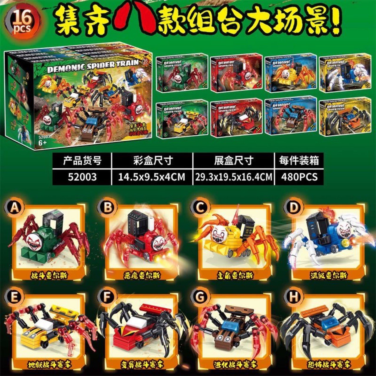 지지싱 52003 찰스 리틀 트레인 헬 게임 8종 변형 스파이더카 조립 블록 장난감 교육용
