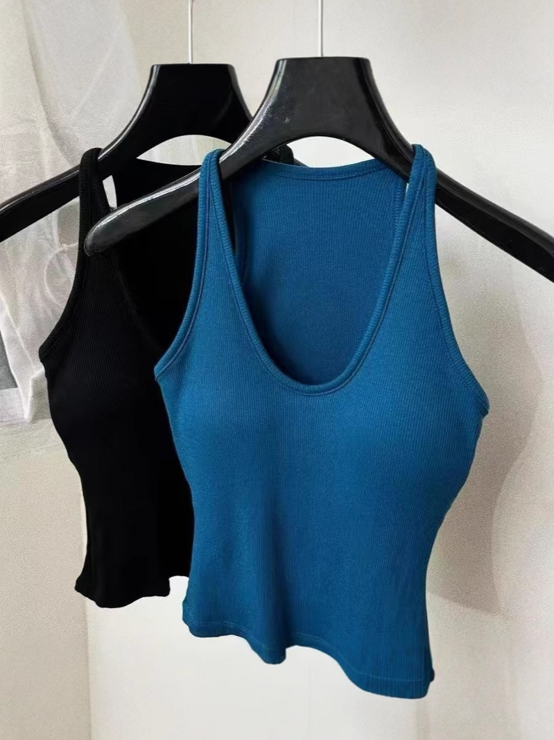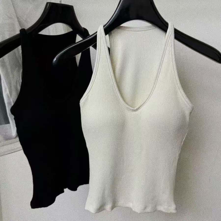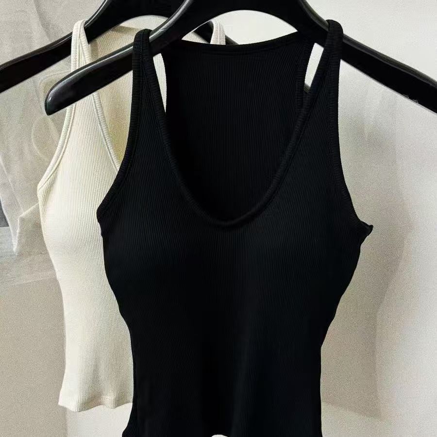 가슴 패드 카미 솔 여성의 2024 새로운 스타일 내부와 아름다운 유방 커버 아름다운 등 슬림 핏 슬림 핏 넥 탑