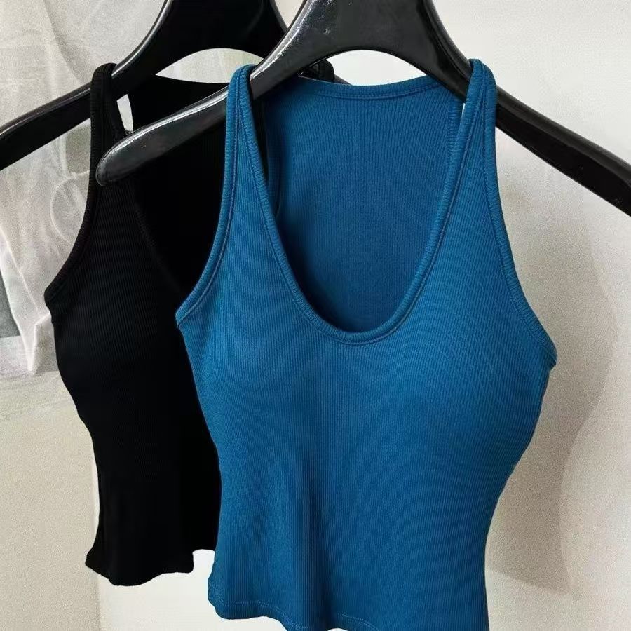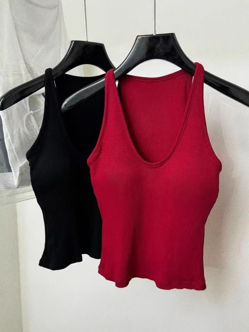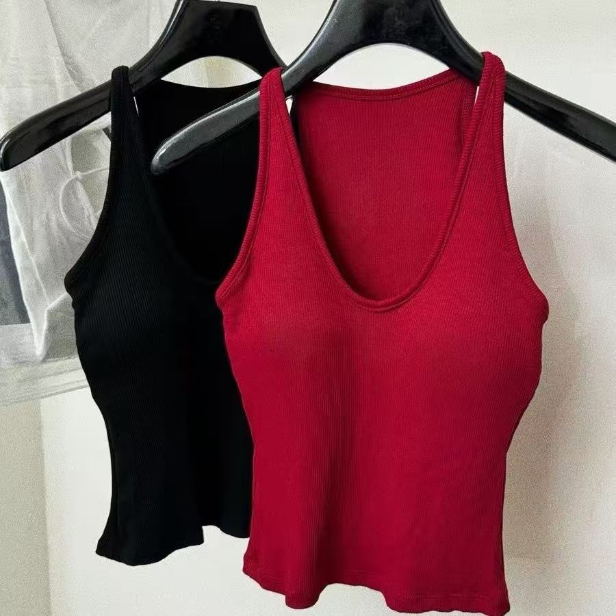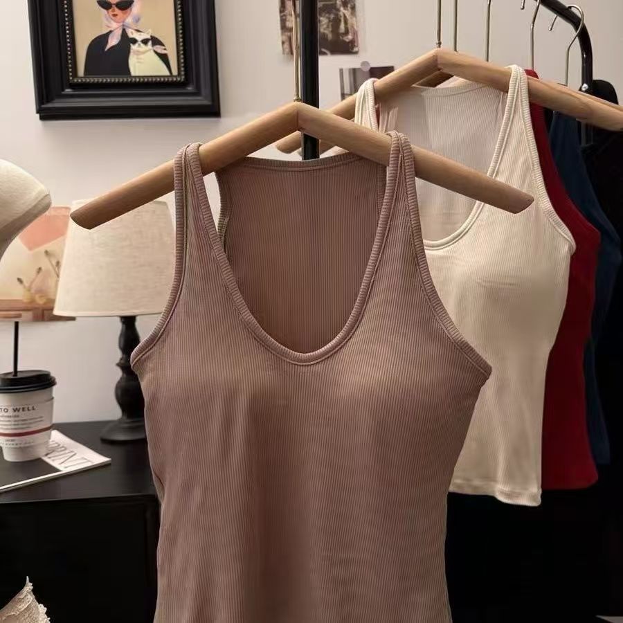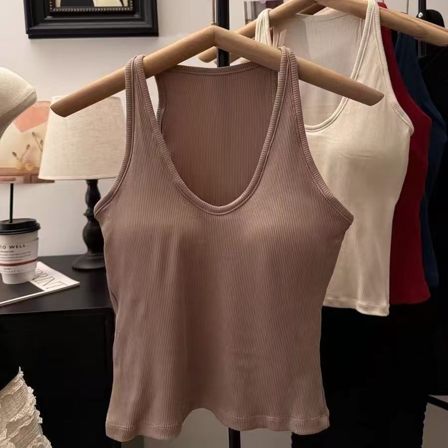 가슴 패드 카미 솔 여성의 2024 새로운 스타일 내부와 아름다운 유방 커버 아름다운 등 슬림 핏 슬림 핏 넥 탑스토어 가기