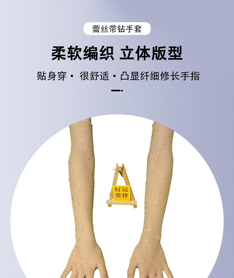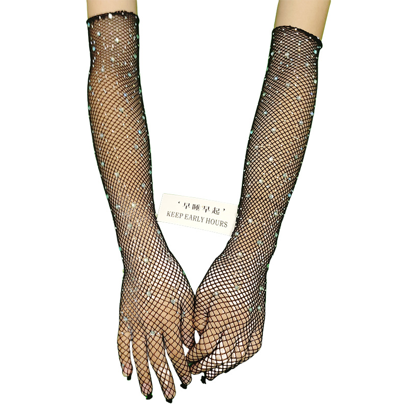긴 튜브 팔 슬리브 낚시 그물 뜨거운 다이아몬드 대외 무역 장갑 국경 높은 탄성 국경 멀티 컬러 레이스 유럽과 미국의 춤 뜨거운 판매 장갑스토어 가기