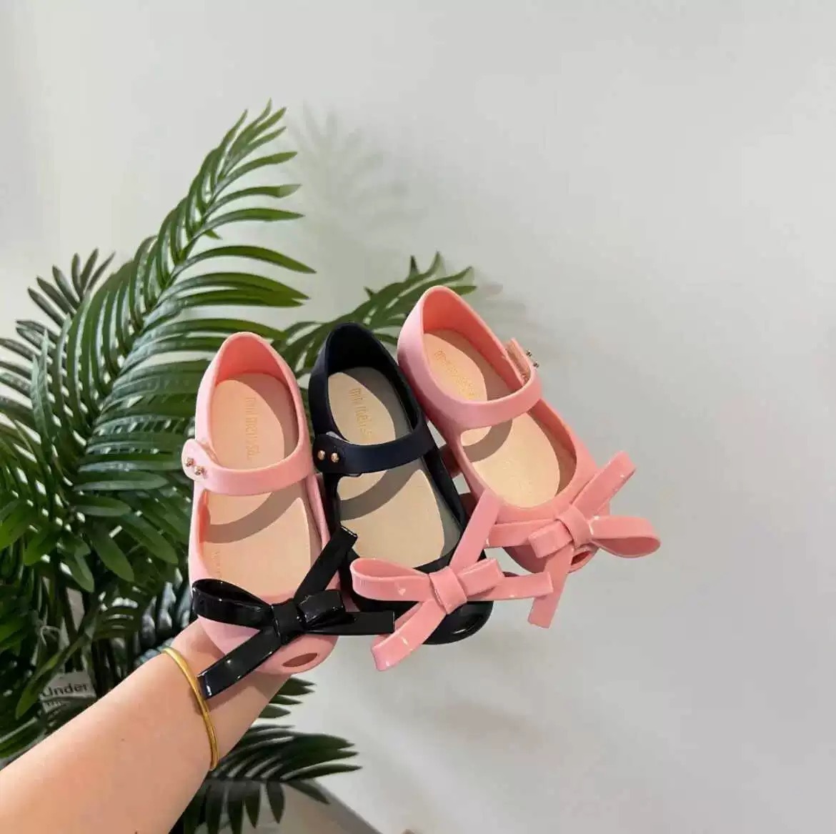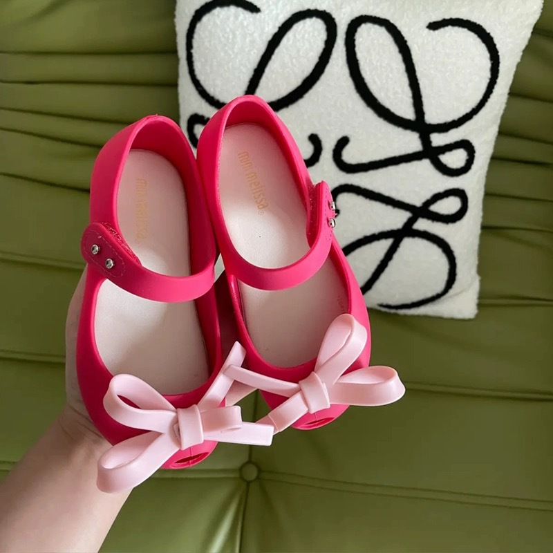 2026년 여름 신상품 멜리사와 같은 스타일의 아동용 피쉬마우스 비치 샌들, 리본 장식의 달콤한 플랫솔 부모-자녀 샌들