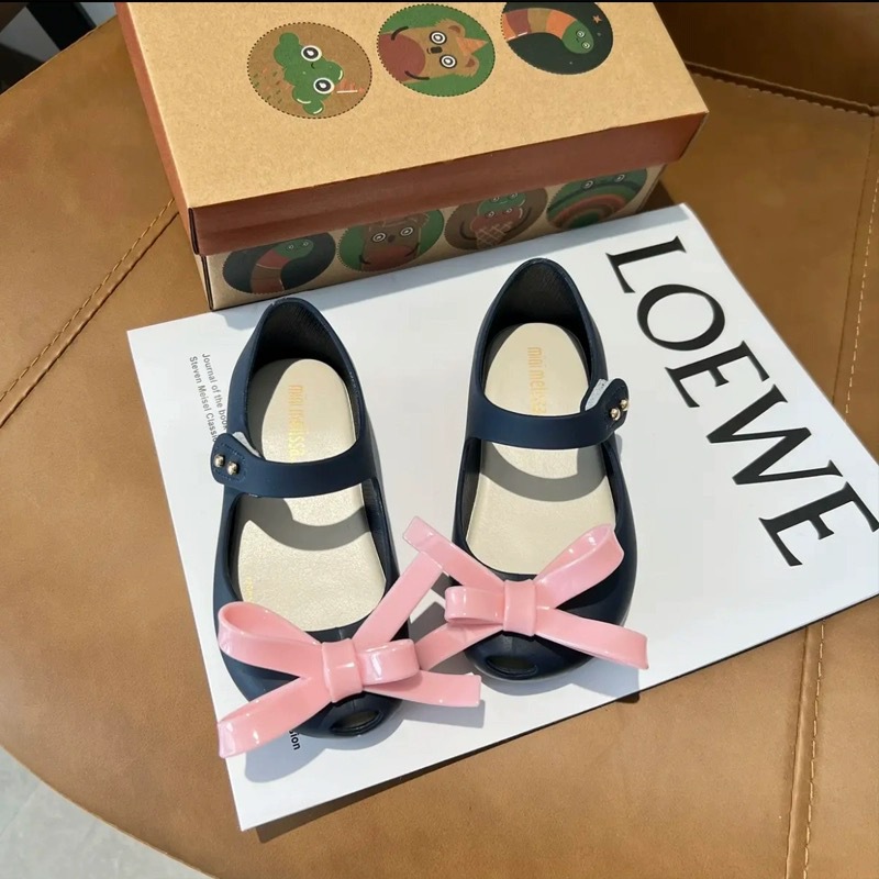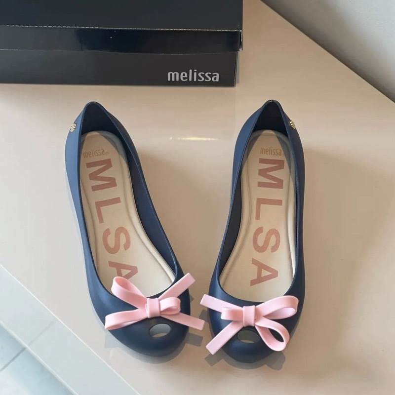 2026년 여름 신상품 멜리사와 같은 스타일의 아동용 피쉬마우스 비치 샌들, 리본 장식의 달콤한 플랫솔 부모-자녀 샌들스토어 가기