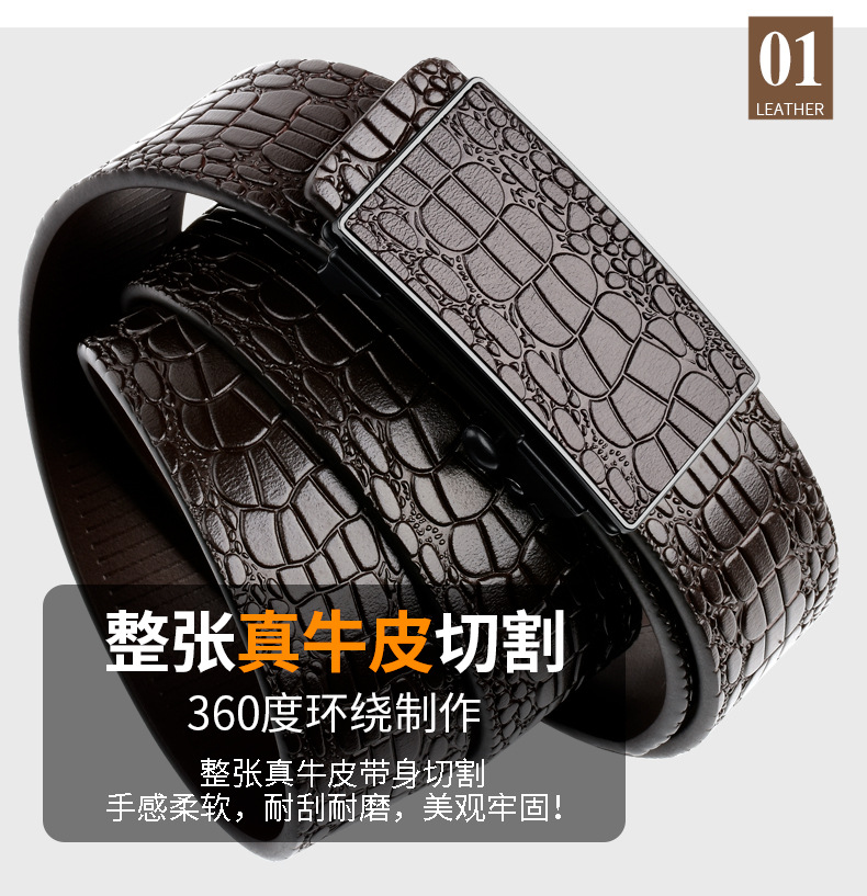 2024 새로운 벨트 남자의 이빨없는 자동 버클 벨트 순수한 Cowhide 내부 버클 캐주얼 간단한 벨트 공장 아울렛