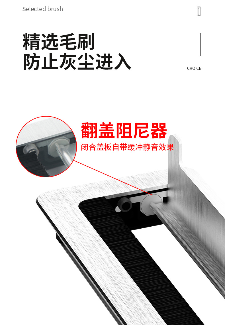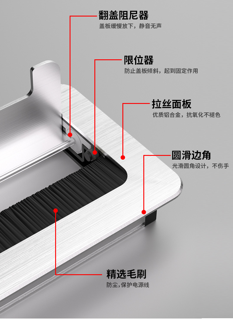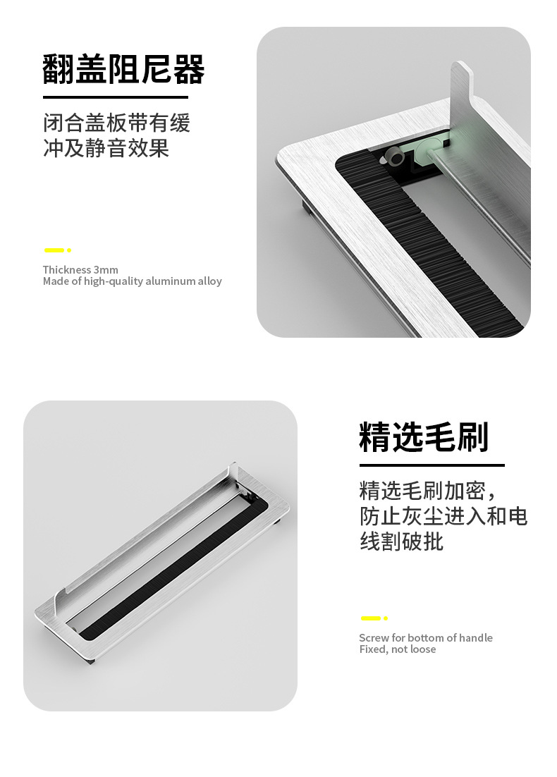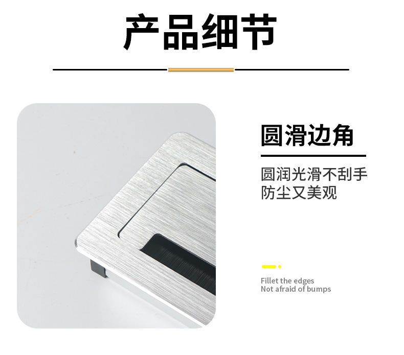 컴퓨터 책상 스레딩 홀 커버 댐핑 버퍼 스퀘어 와이어 슬롯 홀 댐핑 와이어 박스 알루미늄 합금 스레딩 박스