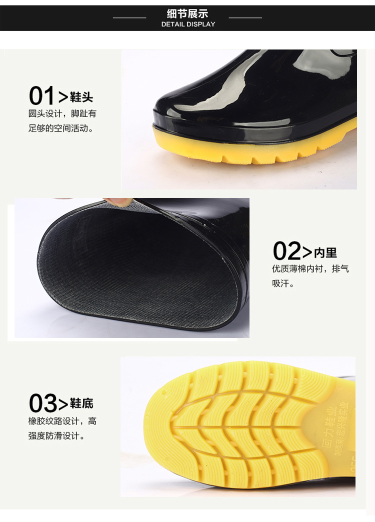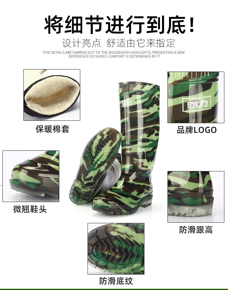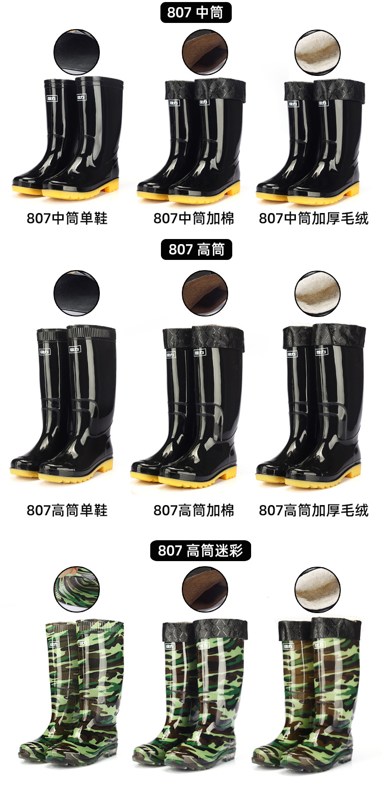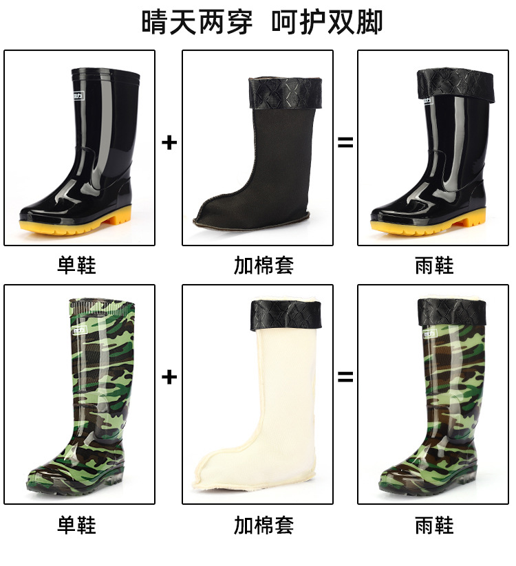 남성과 여성을위한 Huili 장화 방수 미끄럼 방지 노동 보호 장화 기모 두꺼운 Ox-tendon 하단 물 신발 야외 고무 신발