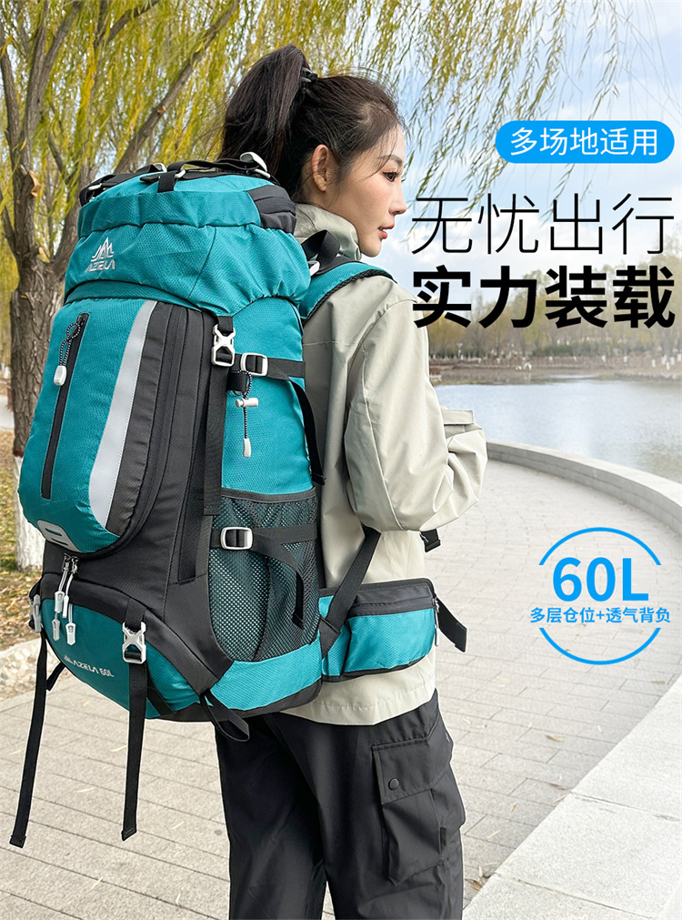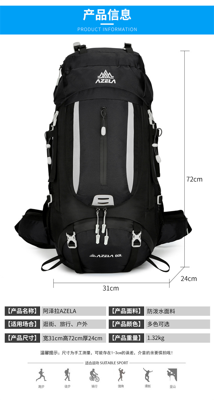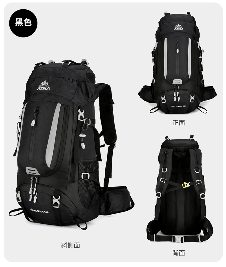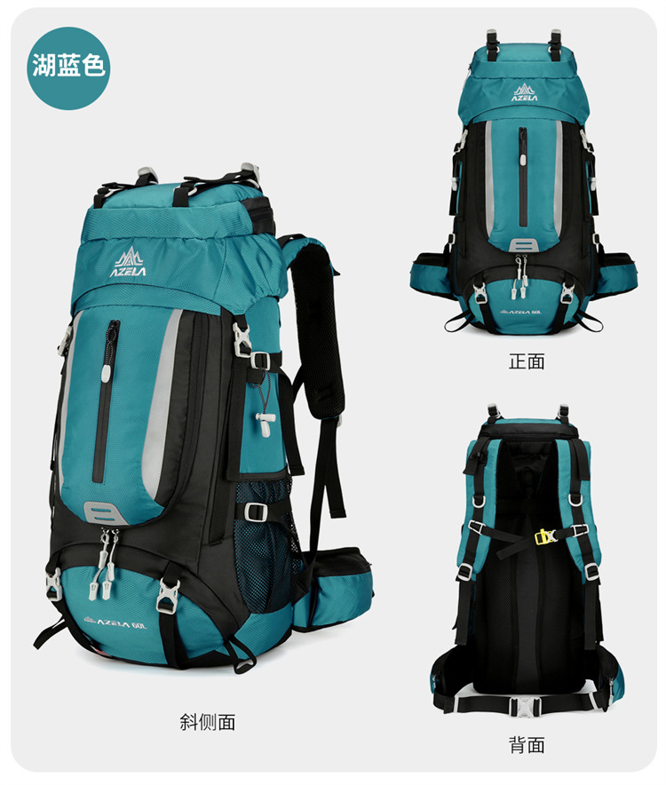 Azera 국경 새로운 대용량 스포츠 등산 가방 발수 야외 60L 남녀 하이킹 배낭