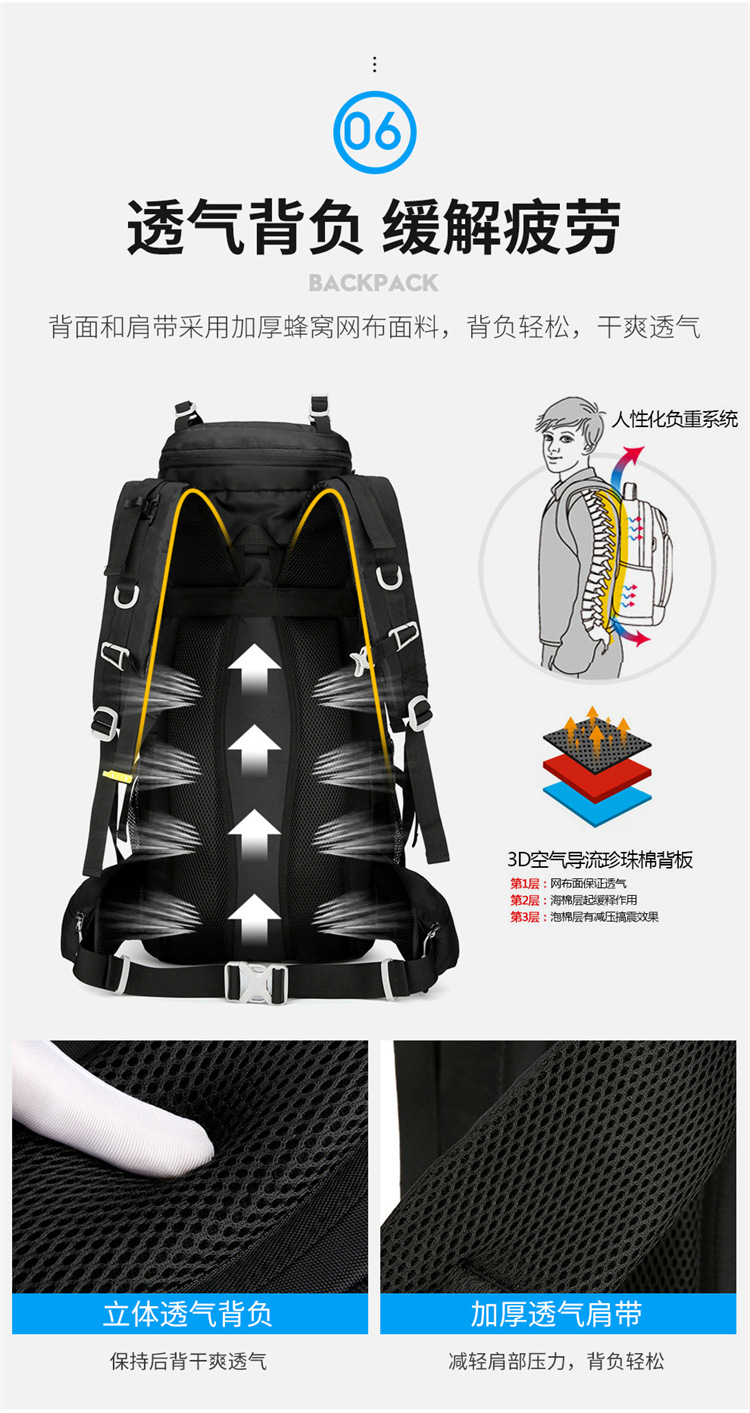 Azera 국경 새로운 대용량 스포츠 등산 가방 발수 야외 60L 남녀 하이킹 배낭스토어 가기