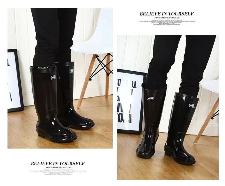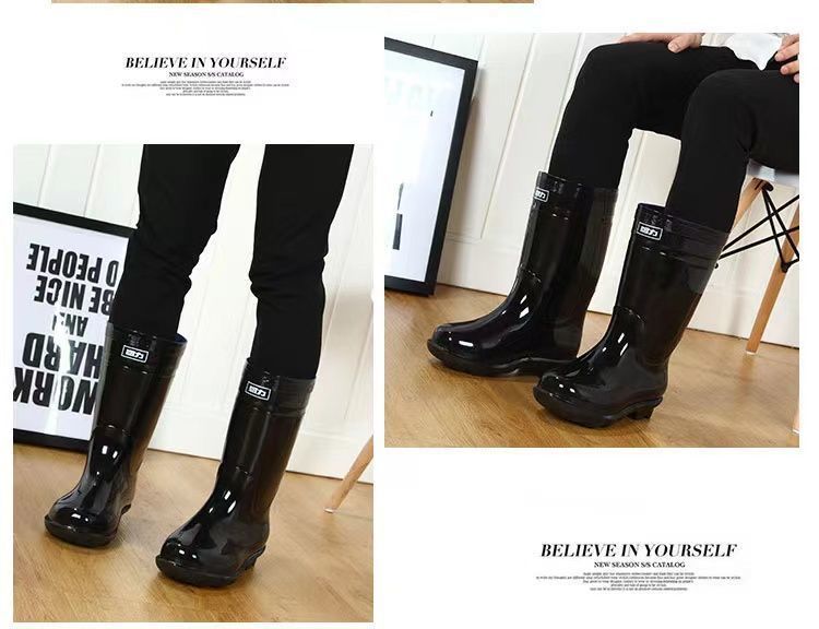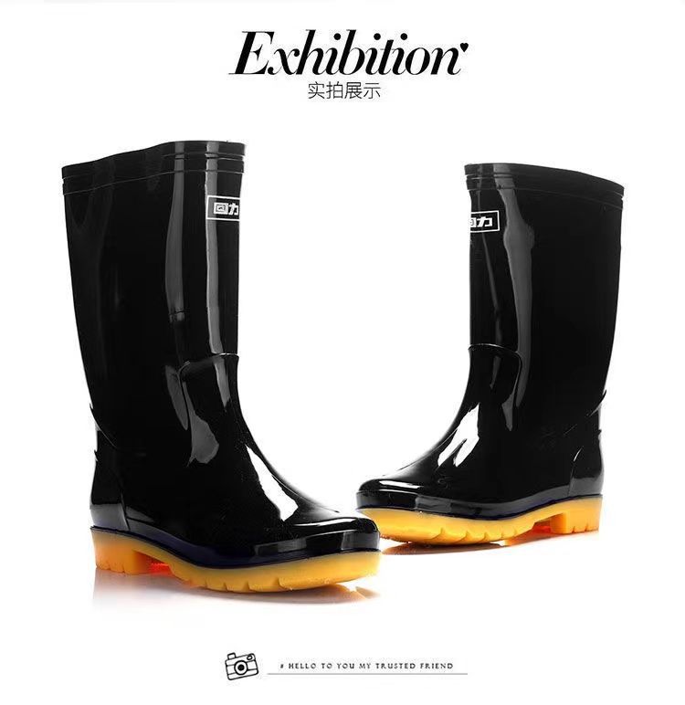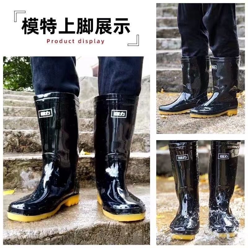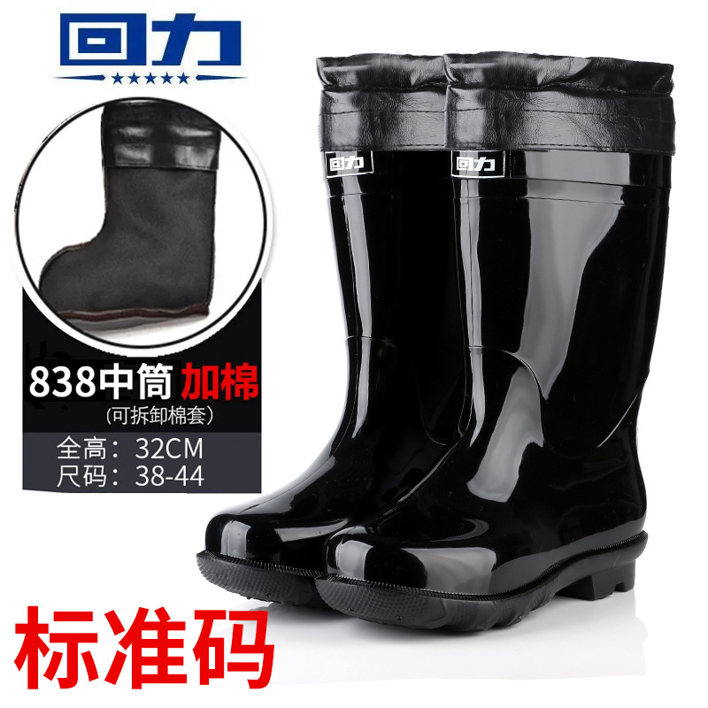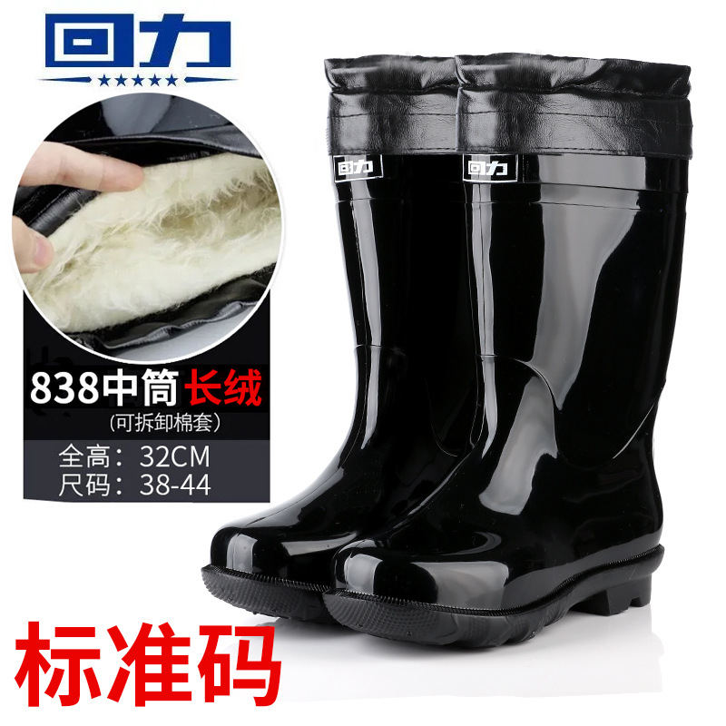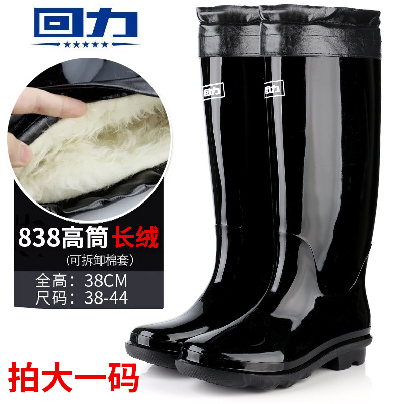Huili 정품 장화 남성용 기모 두껍게 분리 할 수있는 미끄럼 방지 하이 배럴 편안한 마모 방지 워터 부츠 (쇠고기 바닥 비 부츠)
