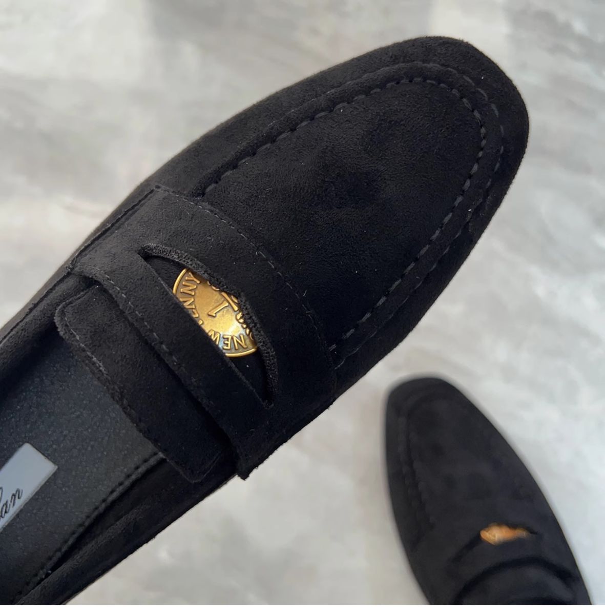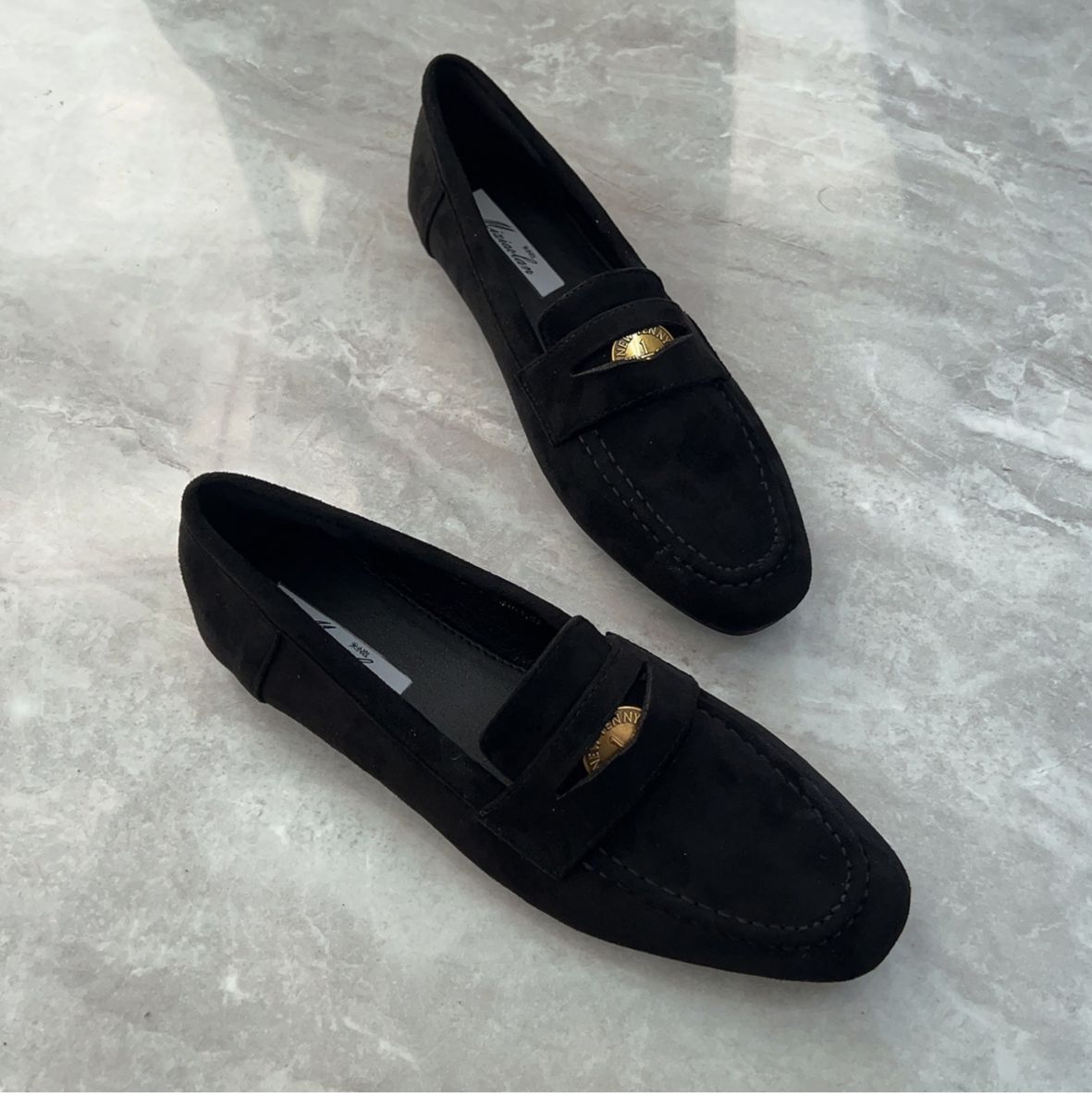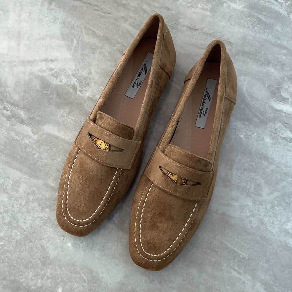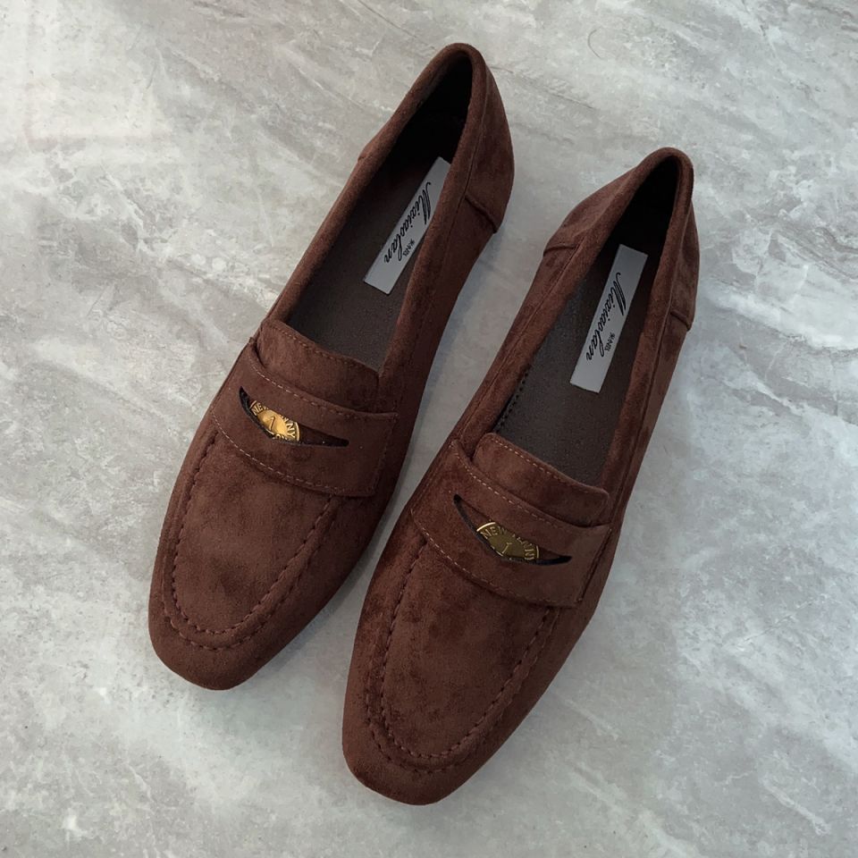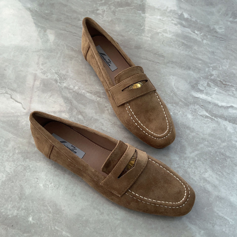 여성을위한 금화 로퍼 2025 새로운 가을, 겨울 슬립 온 여성 신발 블랙 스웨이드 가죽 신발 플랫 신발 비니 신발스토어 가기