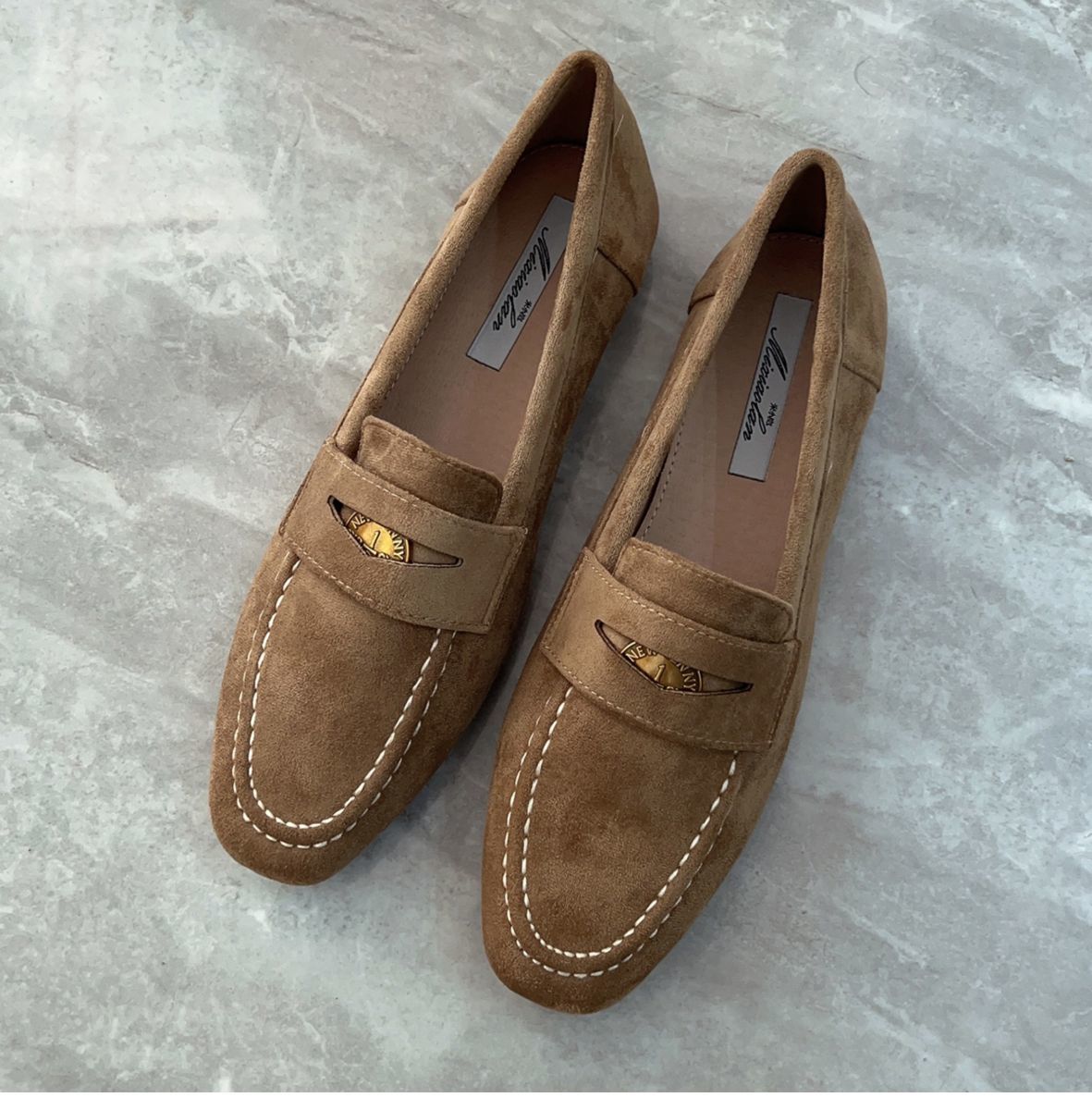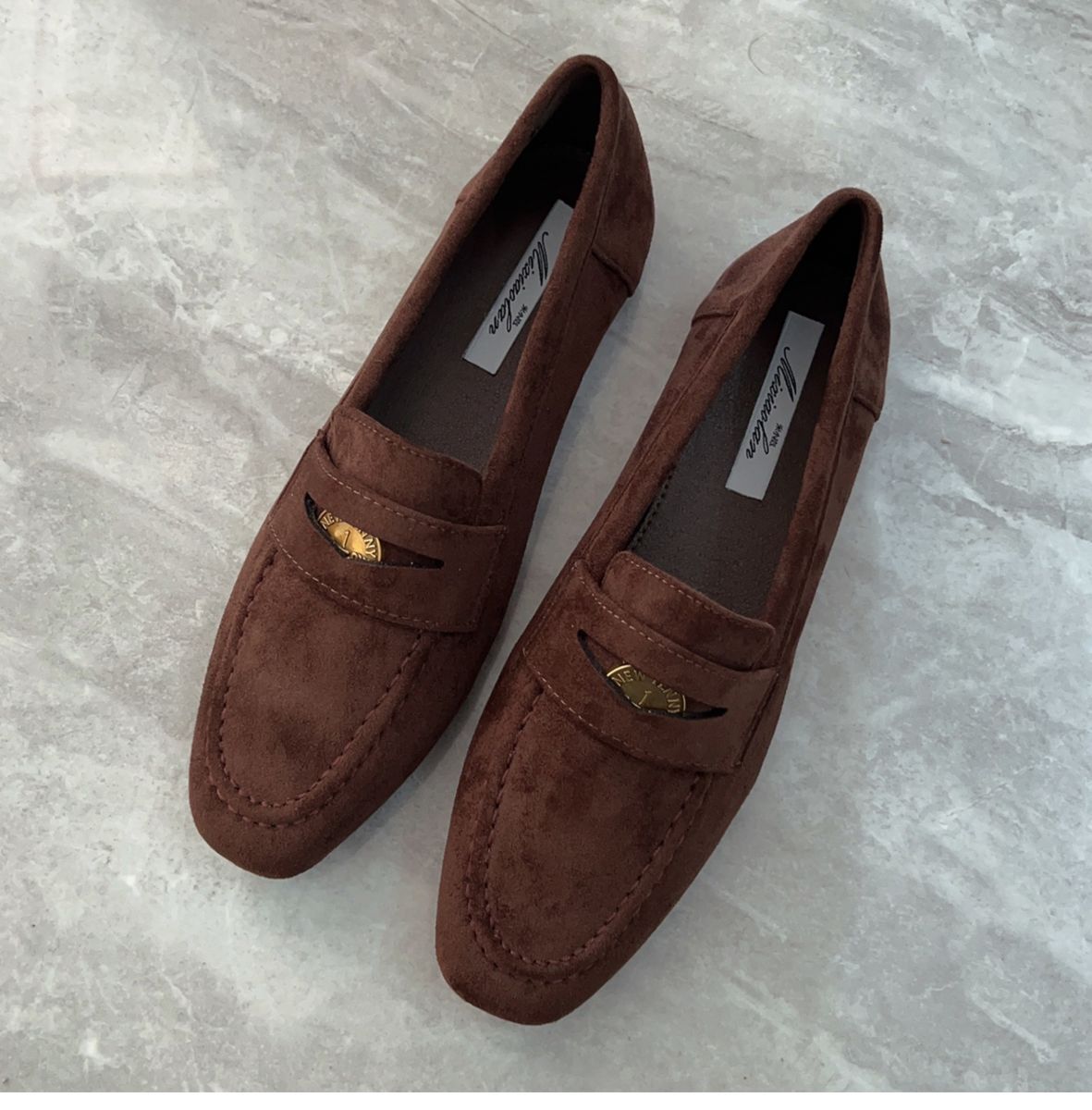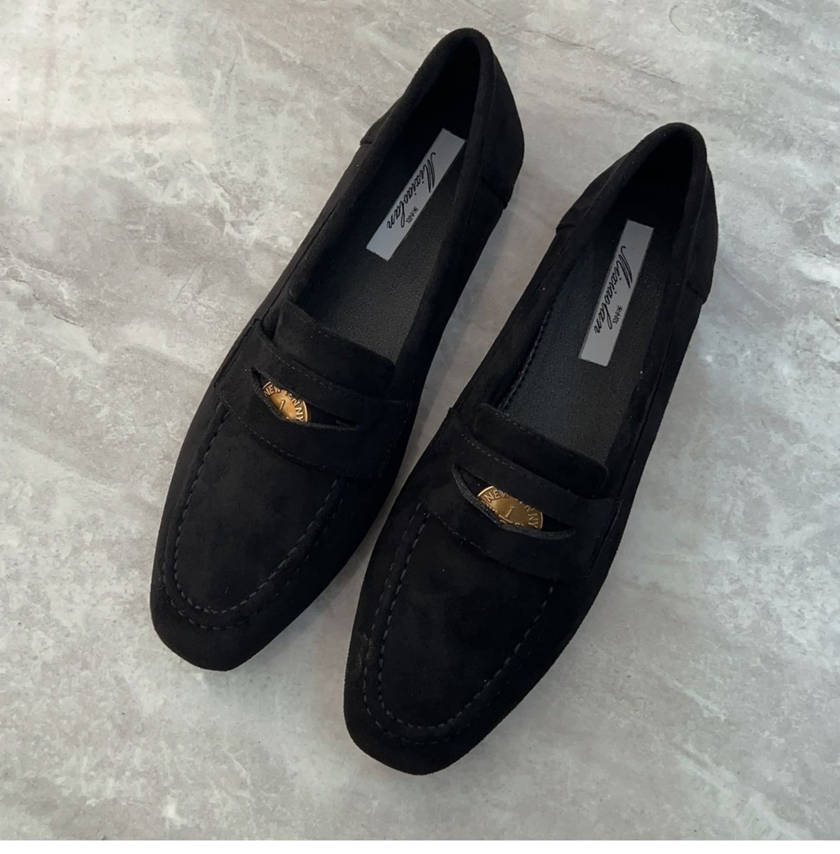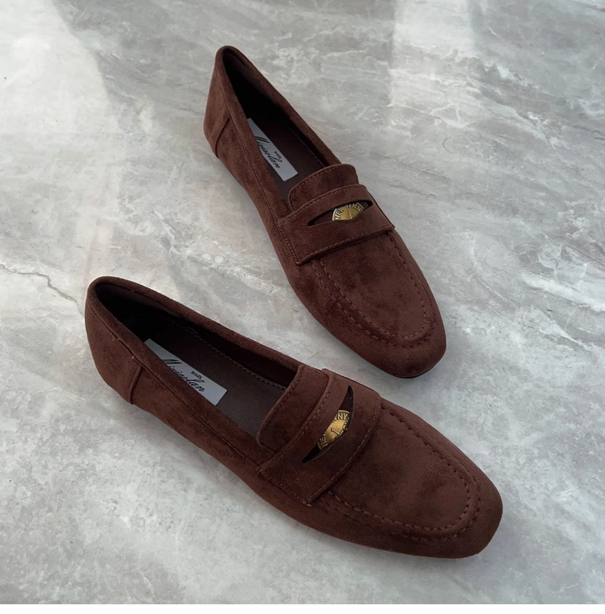 여성을위한 금화 로퍼 2025 새로운 가을, 겨울 슬립 온 여성 신발 블랙 스웨이드 가죽 신발 플랫 신발 비니 신발스토어 가기