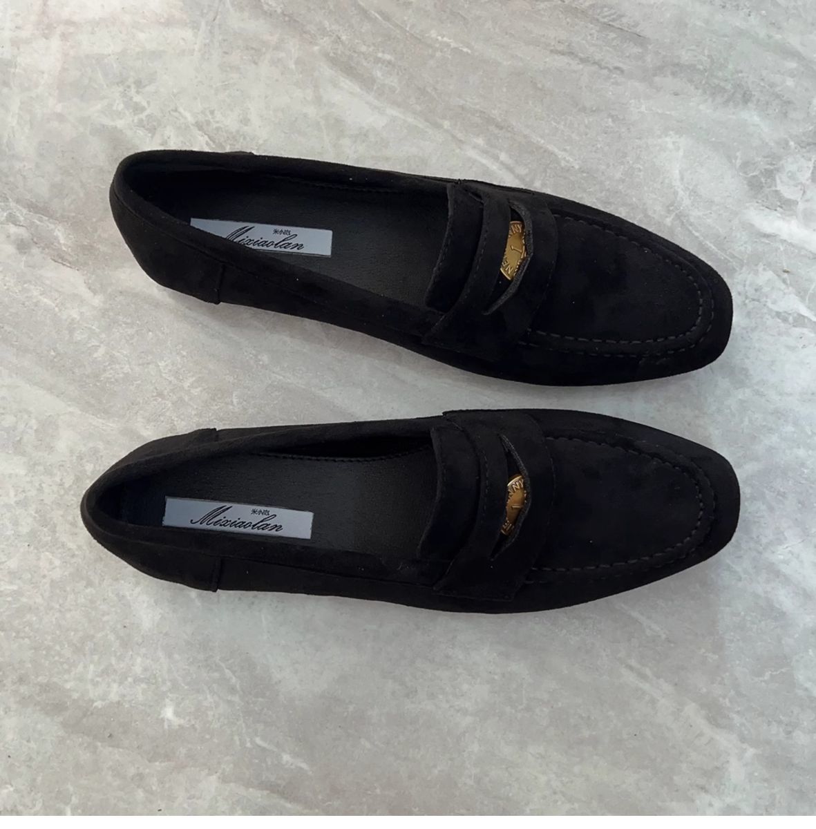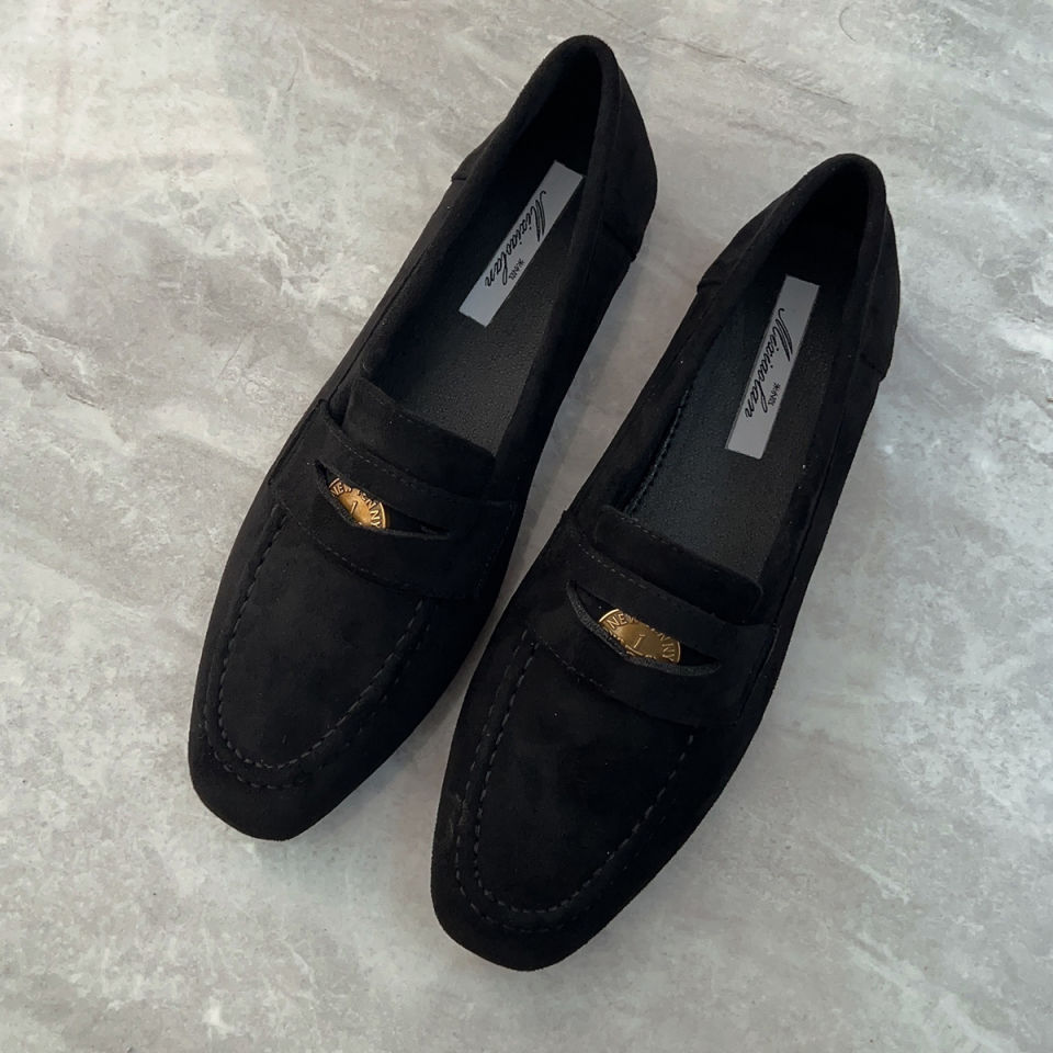 여성을위한 금화 로퍼 2025 새로운 가을, 겨울 슬립 온 여성 신발 블랙 스웨이드 가죽 신발 플랫 신발 비니 신발