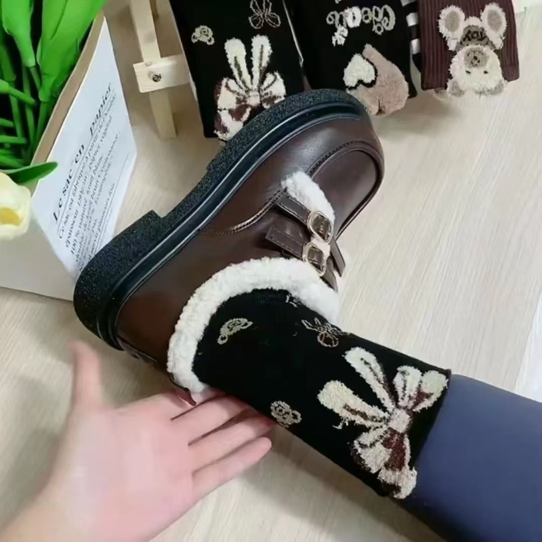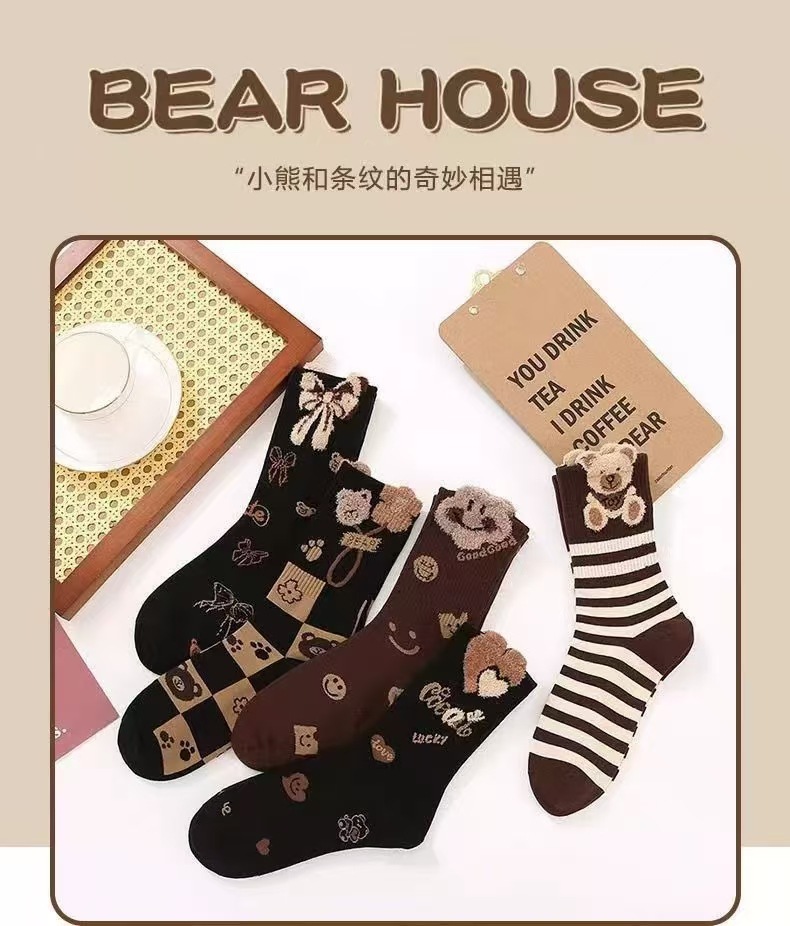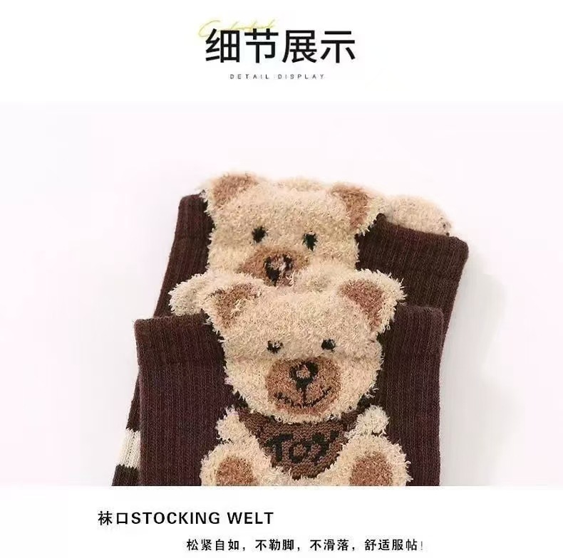 가을과 겨울 새 곰 양말 여성 다크 브라운 다크 브라운 깃털 원사 스테레오 중간 통기성 양말 Ins 사이버 연예인 같은 스타일 스타킹