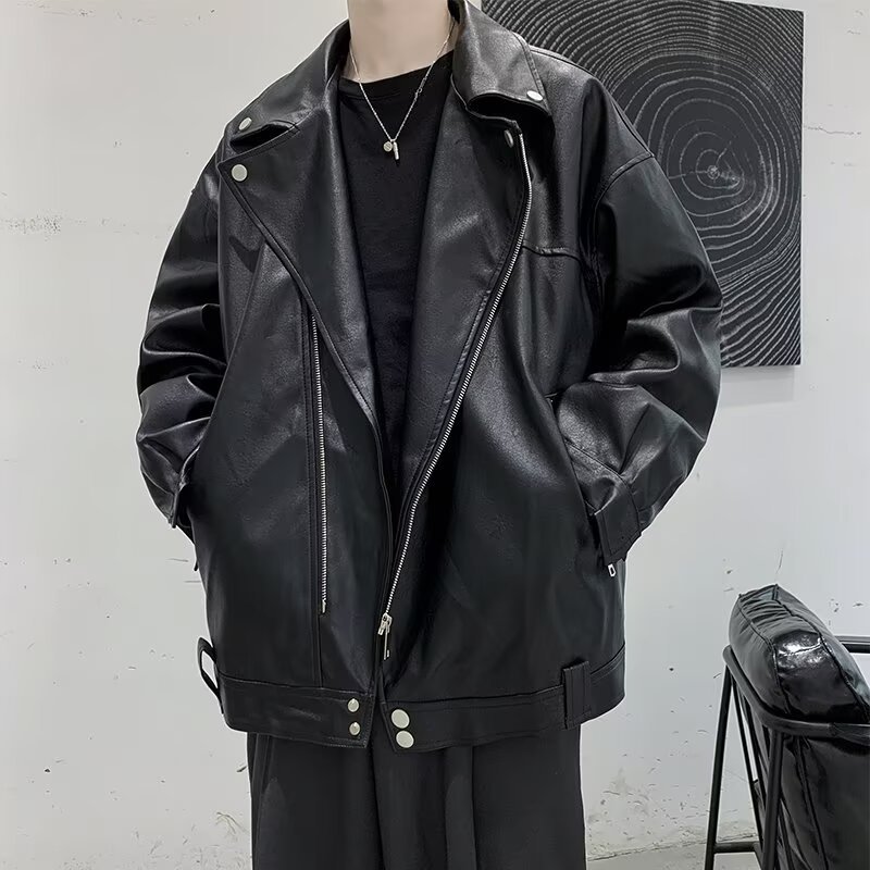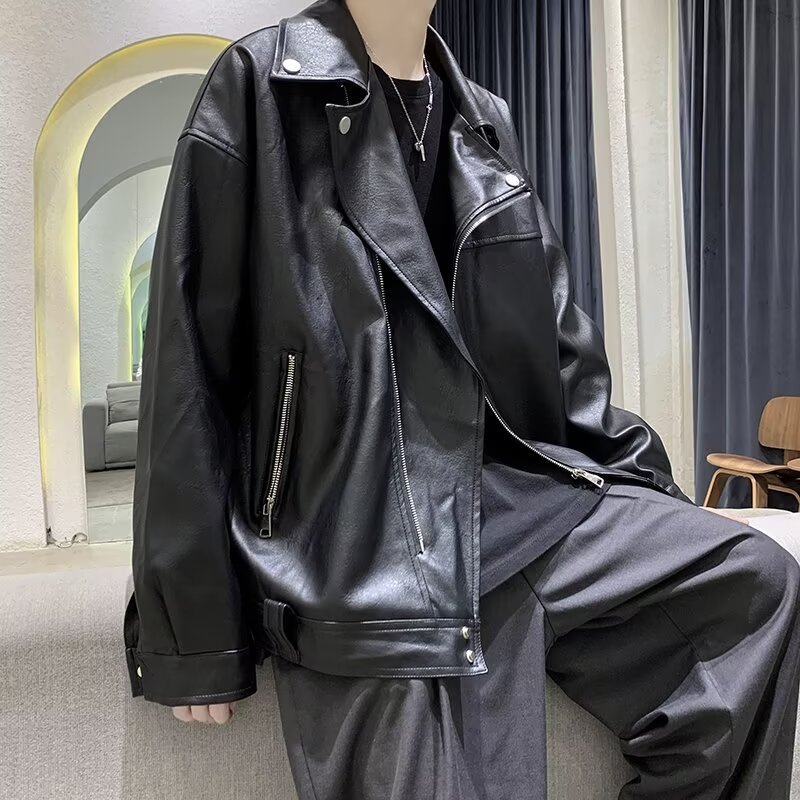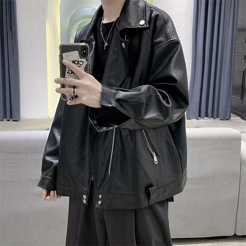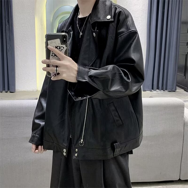 검은 가죽 자켓 남자 2024 새로운 미국 스타일 소년 Duffian 잘 생긴 가죽 옷 가을과 겨울 오토바이 남자 자켓스토어 가기