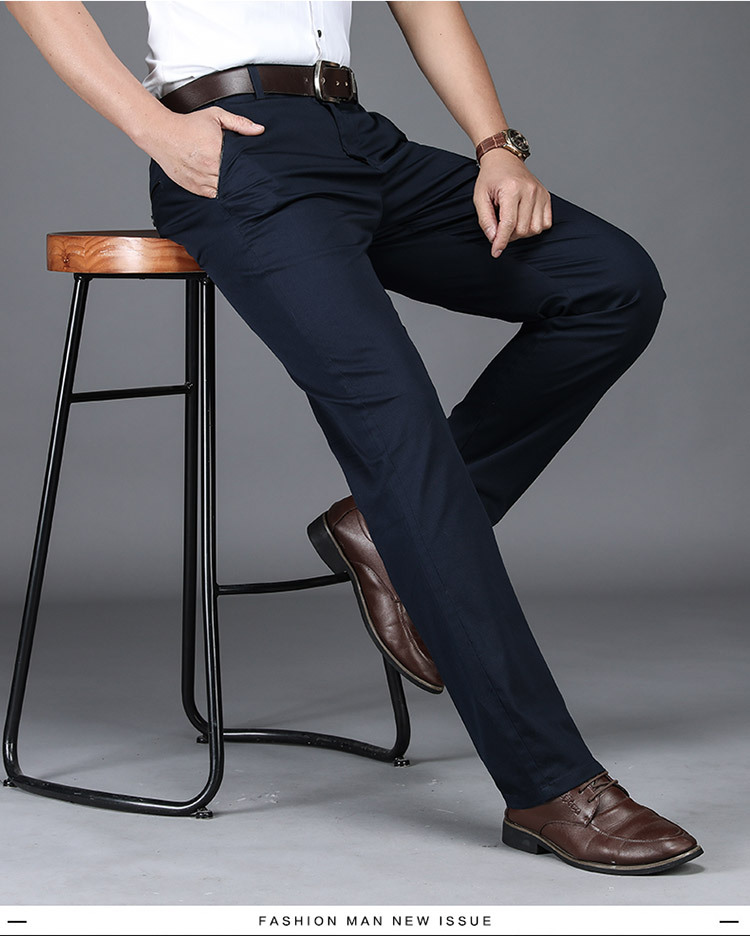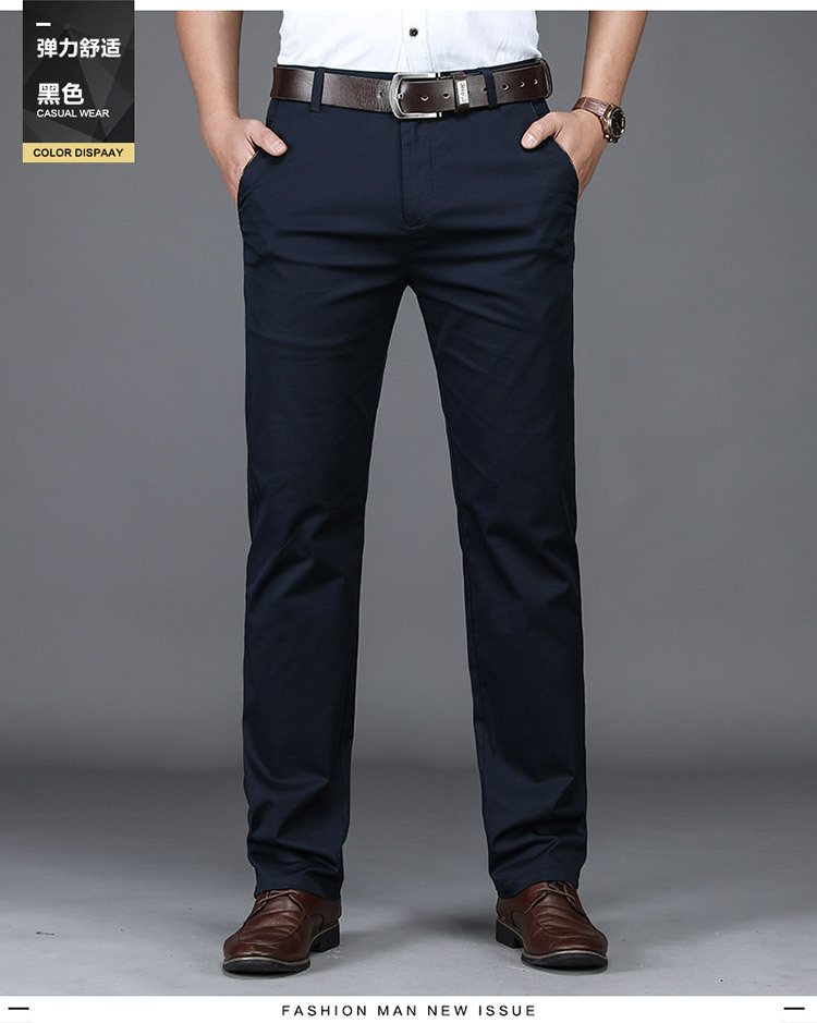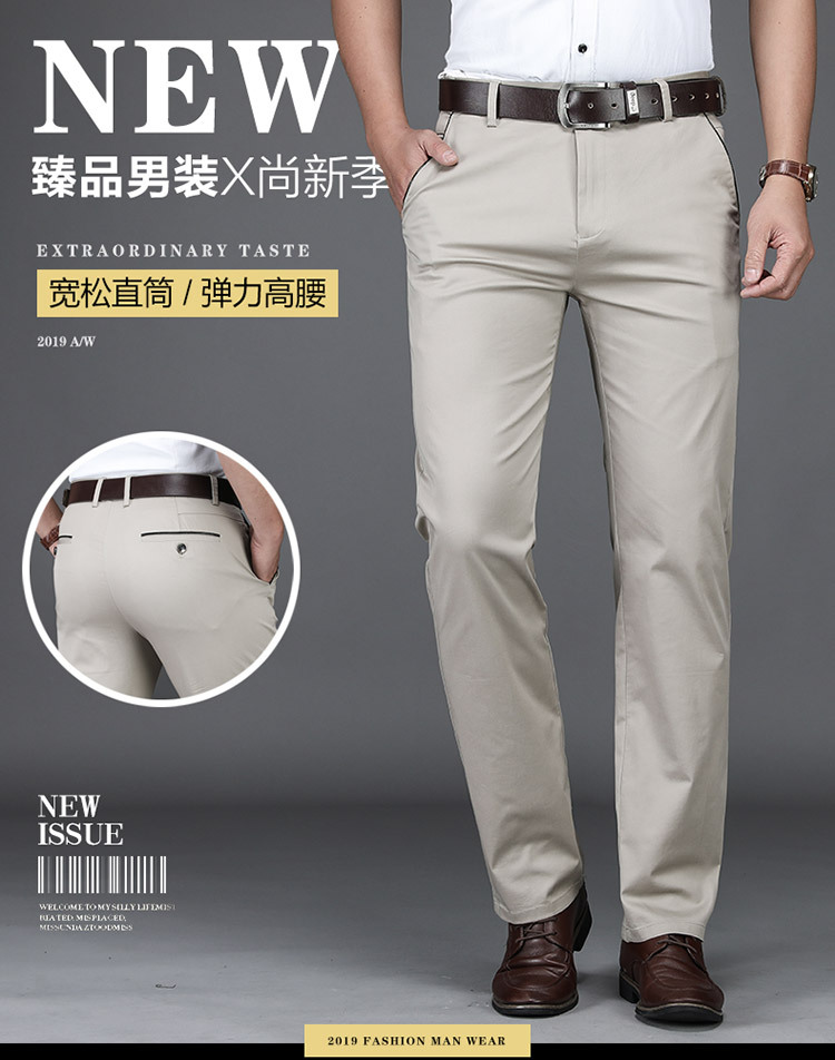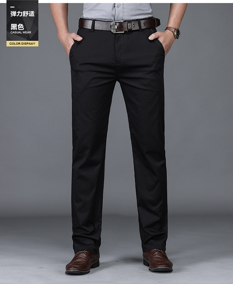 브랜드 퓨어 코튼 캐주얼 바지 남자의 가을 겨울 사업 느슨한 스트레이트 스트레치 비 다림질 바지 남자의 높은 허리 검은 바지 두꺼운스토어 가기