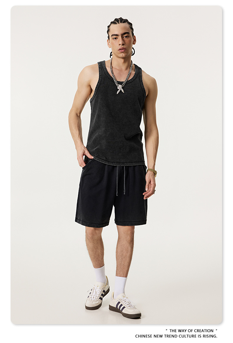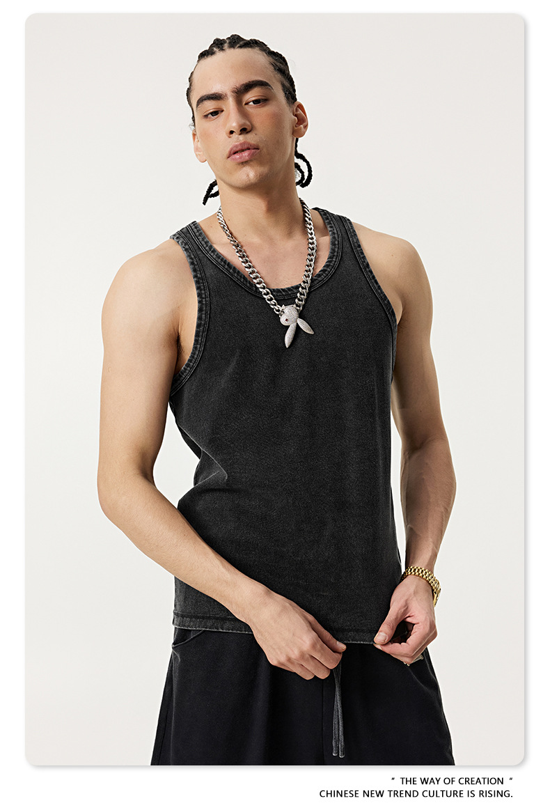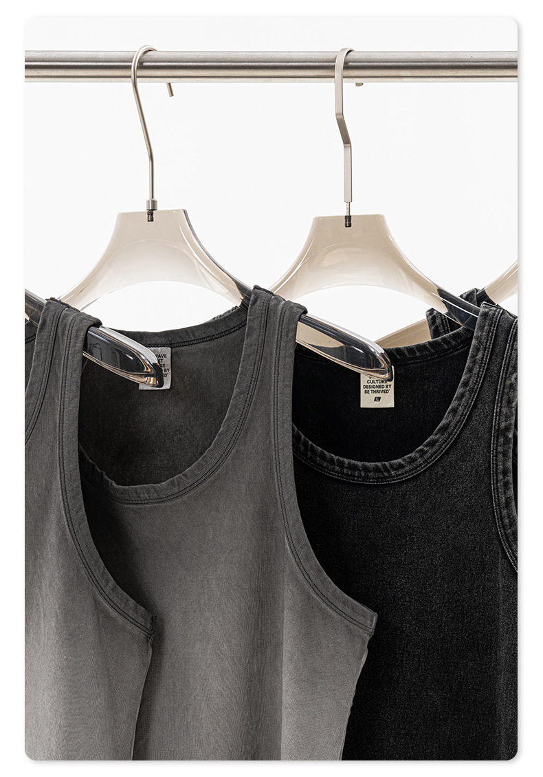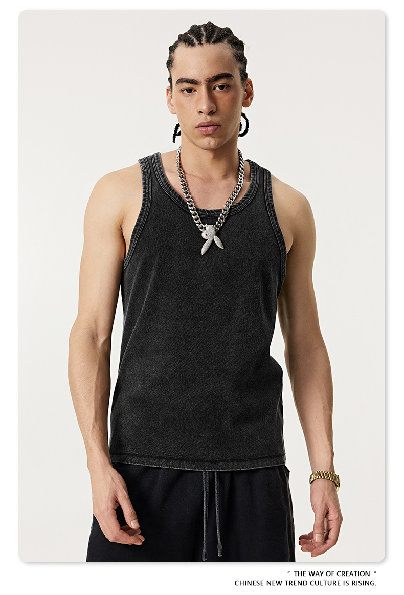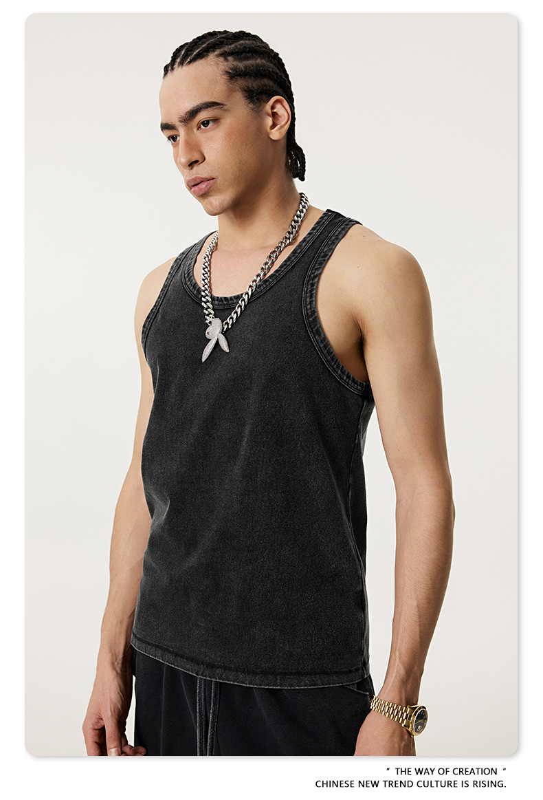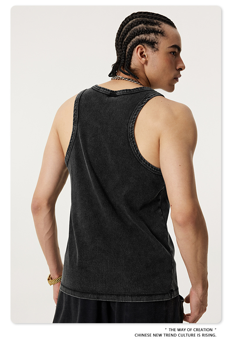 BE Men's | 2025 여름 레트로 헤비 프라이드 컬러 세탁 스포츠 민소매 탑 루즈 I 자형 조끼 남자 타이드스토어 가기