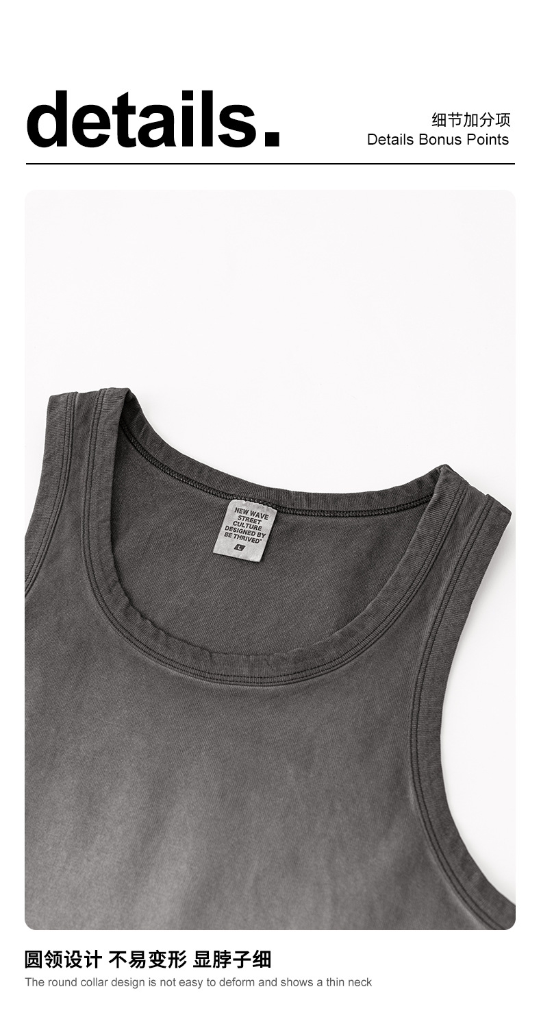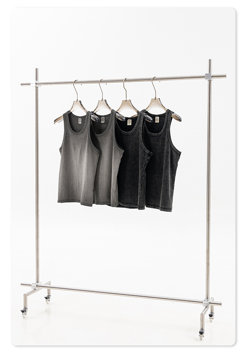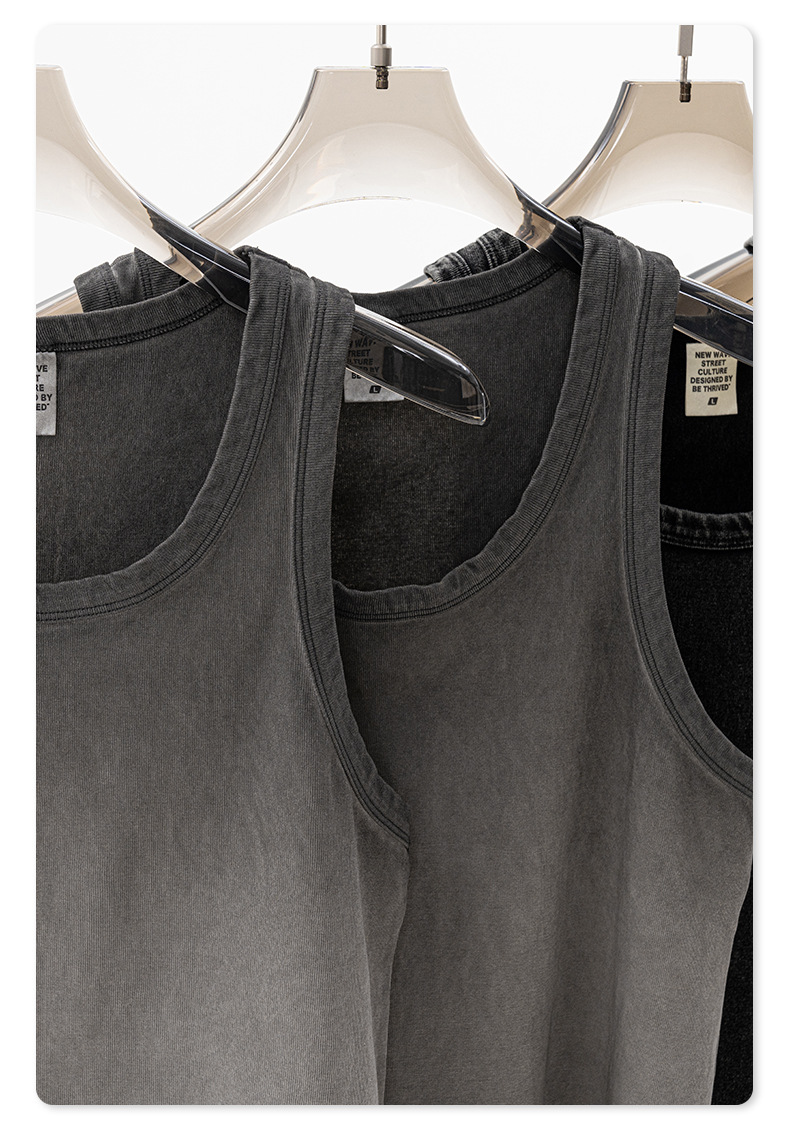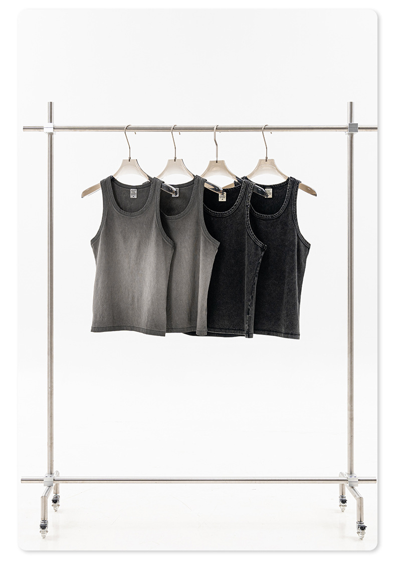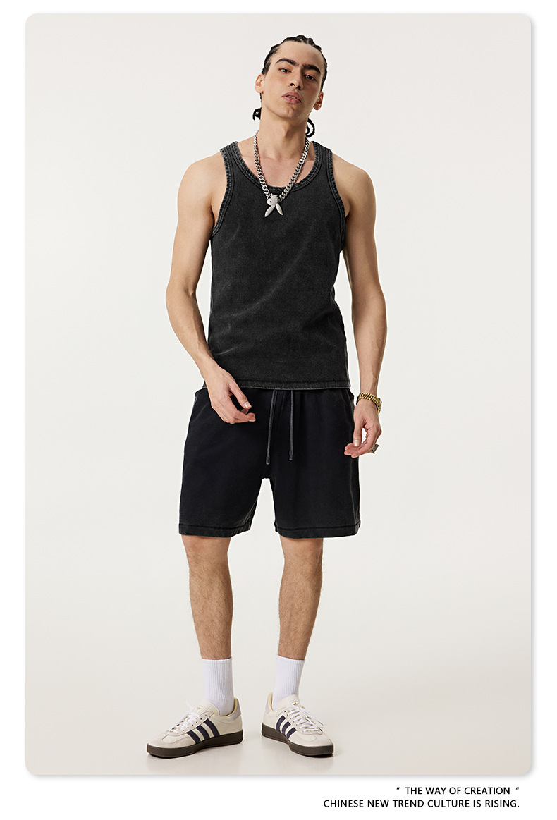 BE Men's | 2025 여름 레트로 헤비 프라이드 컬러 세탁 스포츠 민소매 탑 루즈 I 자형 조끼 남자 타이드스토어 가기
